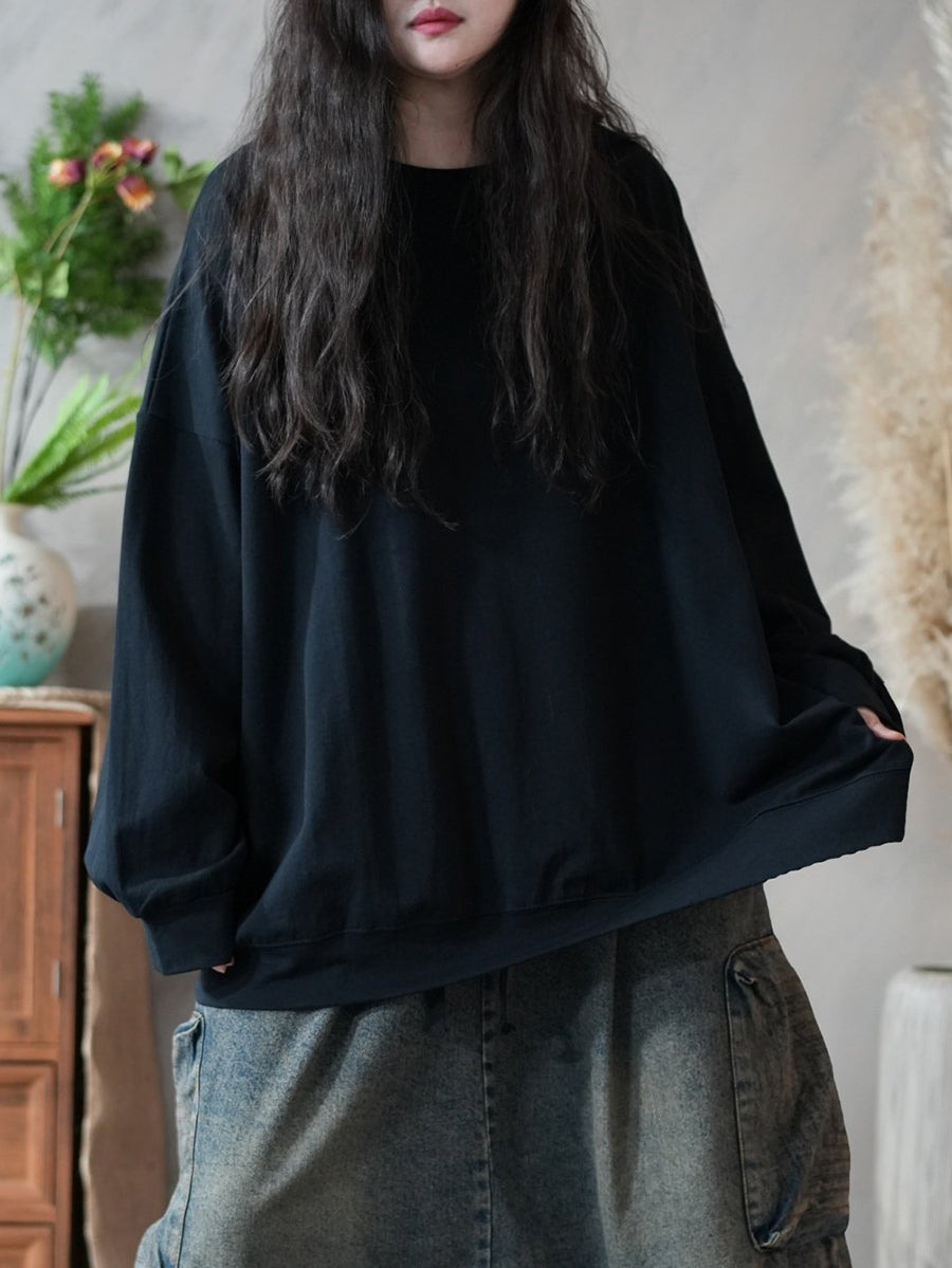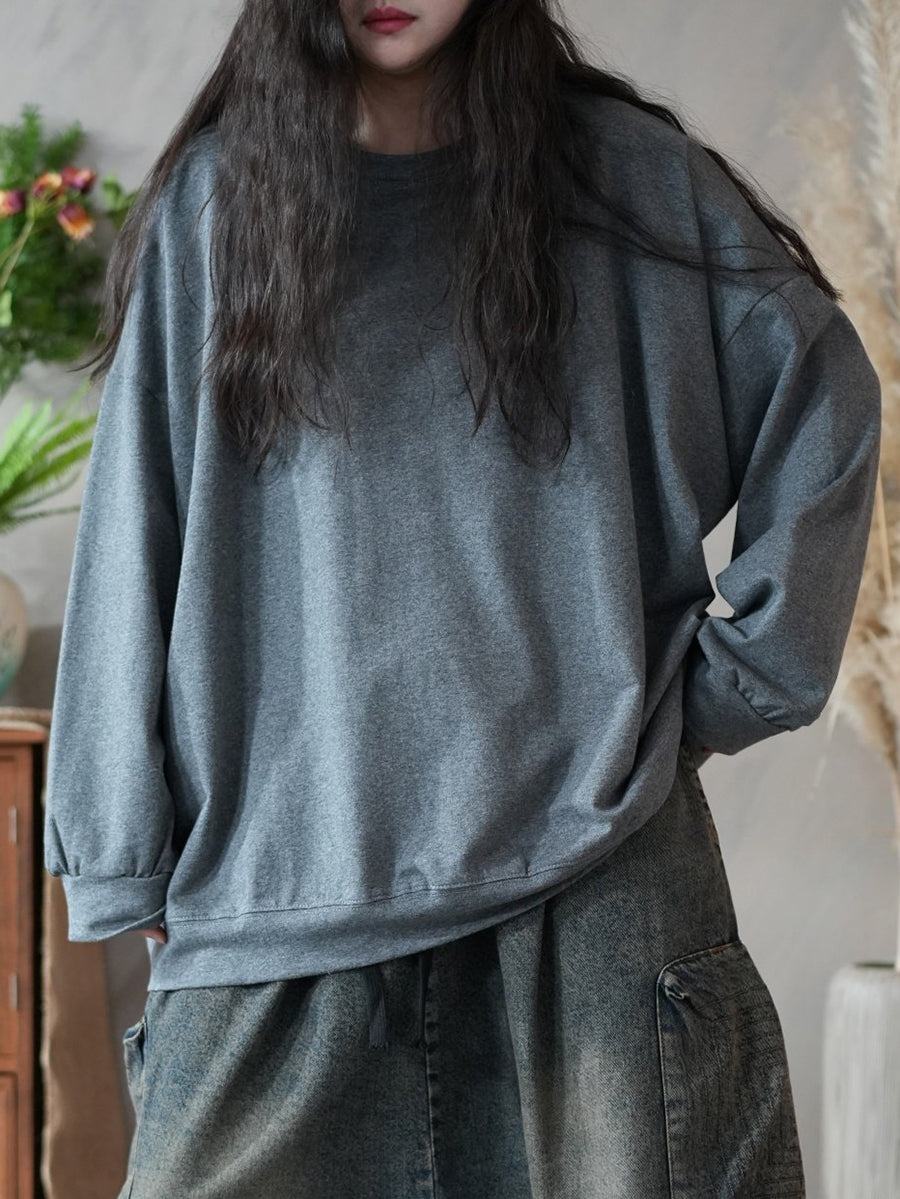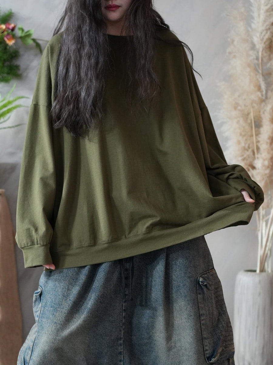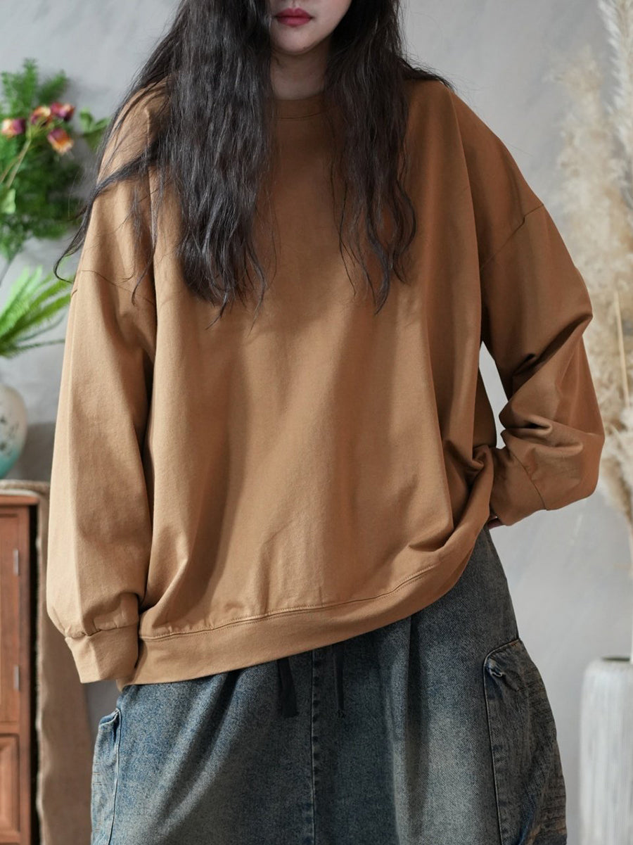 Blusa de cuello redondo 100 % algodón de color puro y estilo artístico para mujer