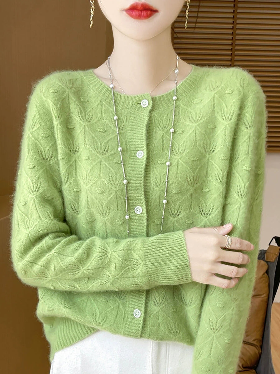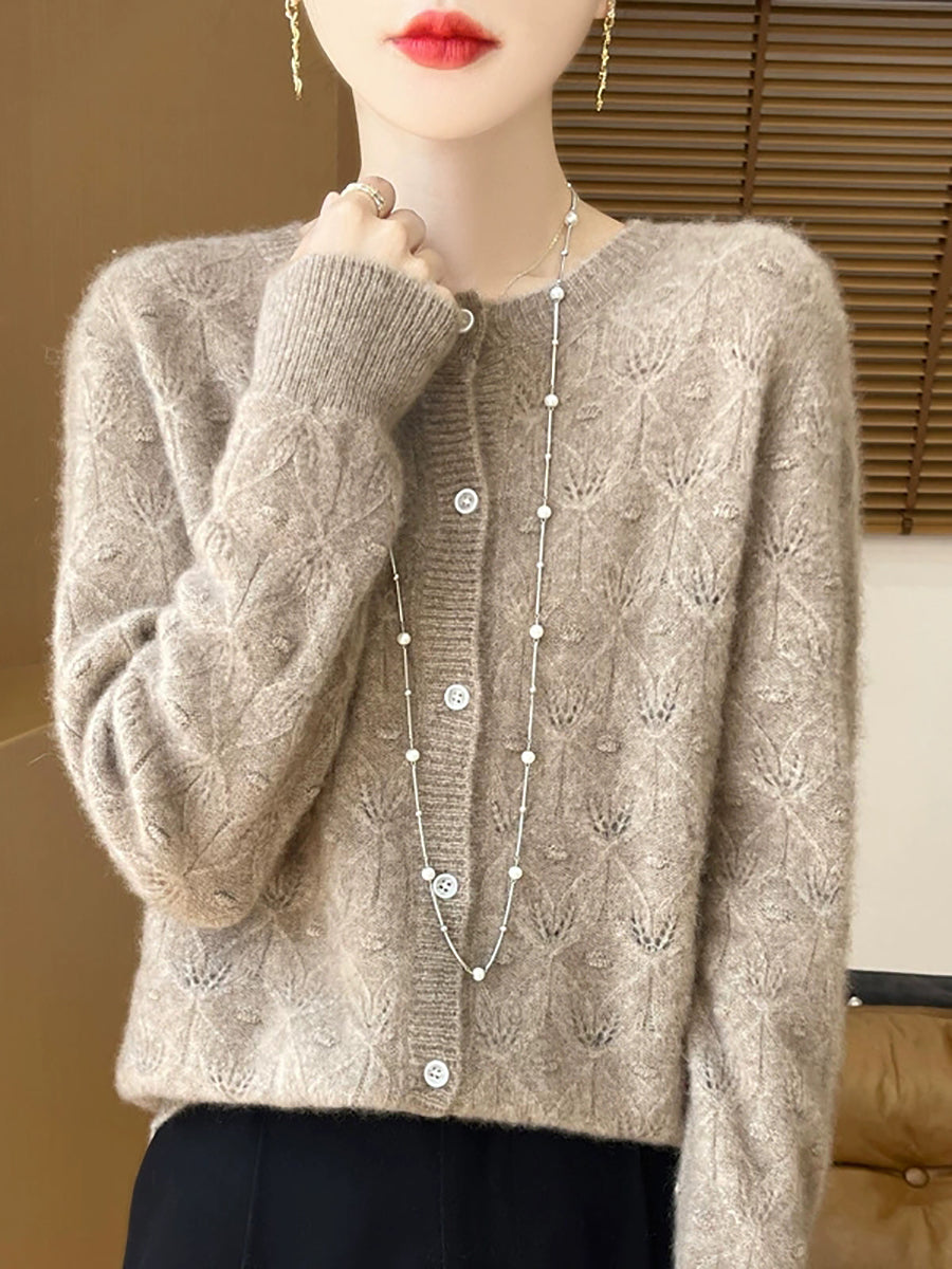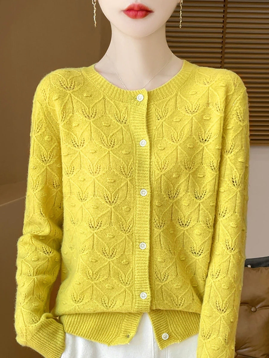 Suéter tipo cárdigan de lana con cuello redondo y colores puros de estilo artístico para mujer, primavera
