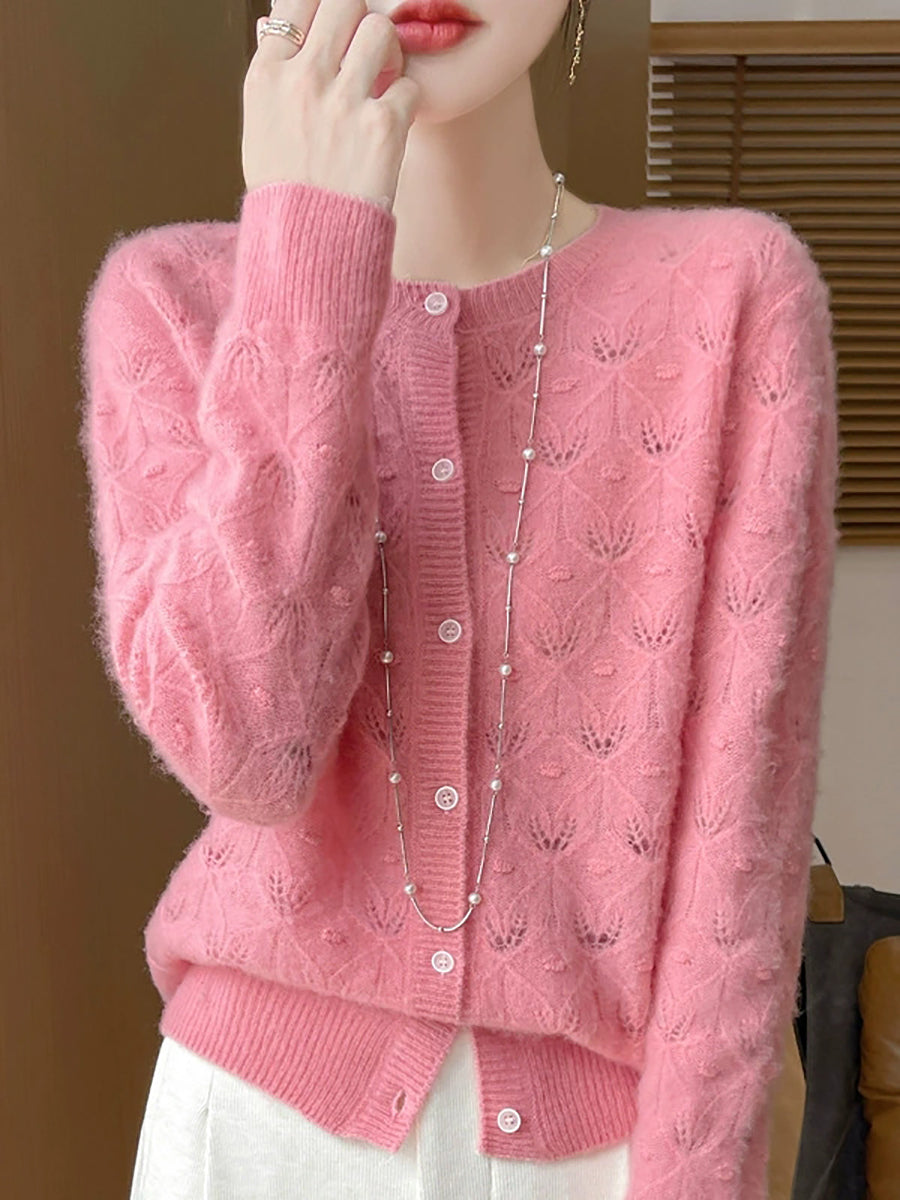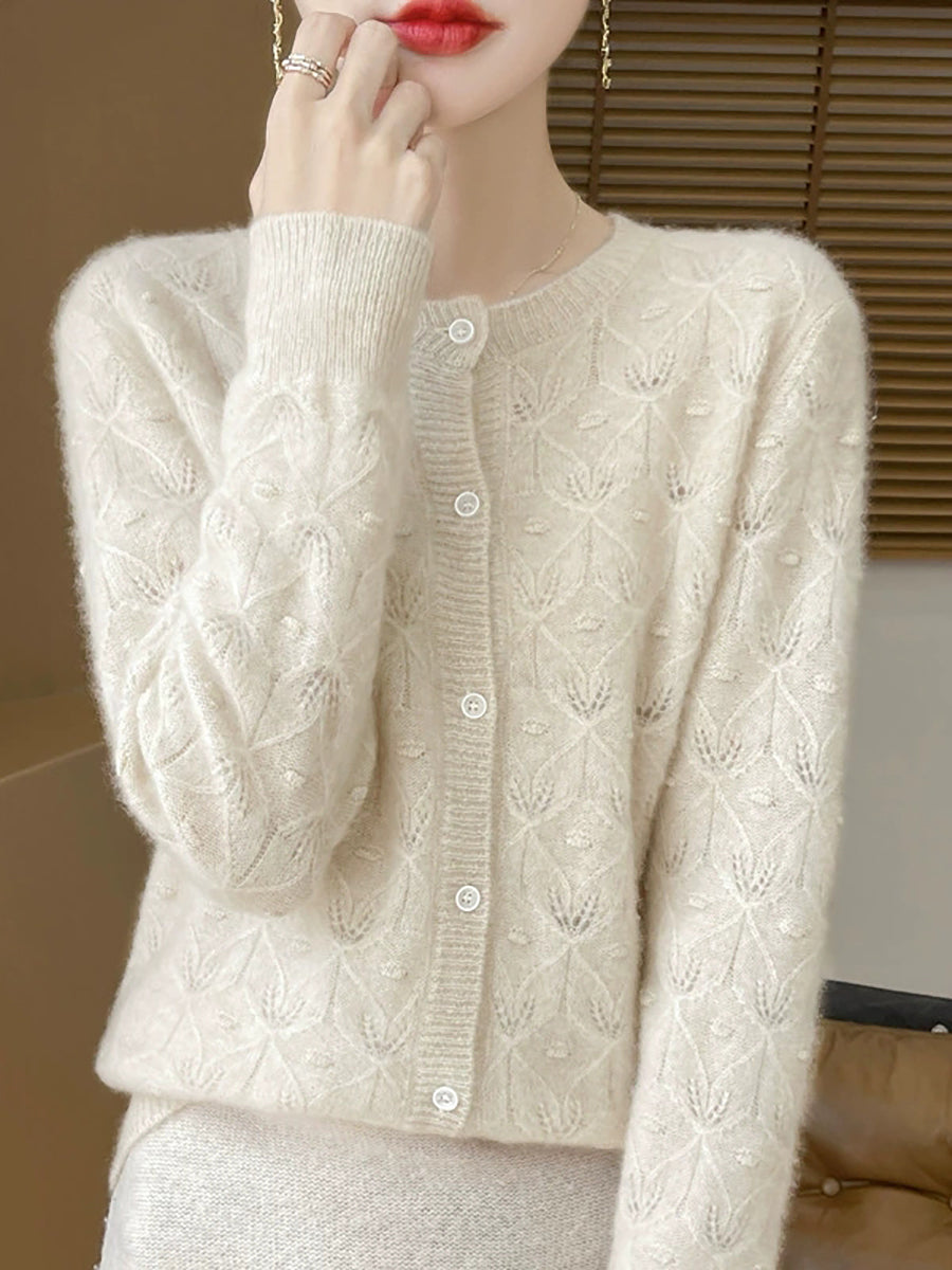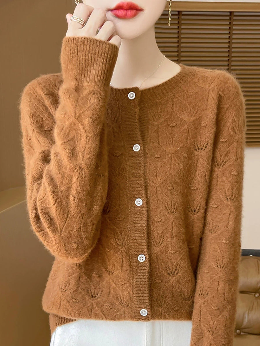 Suéter tipo cárdigan de lana con cuello redondo y colores puros de estilo artístico para mujer, primavera