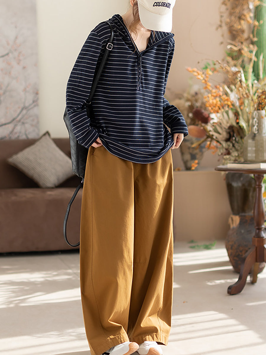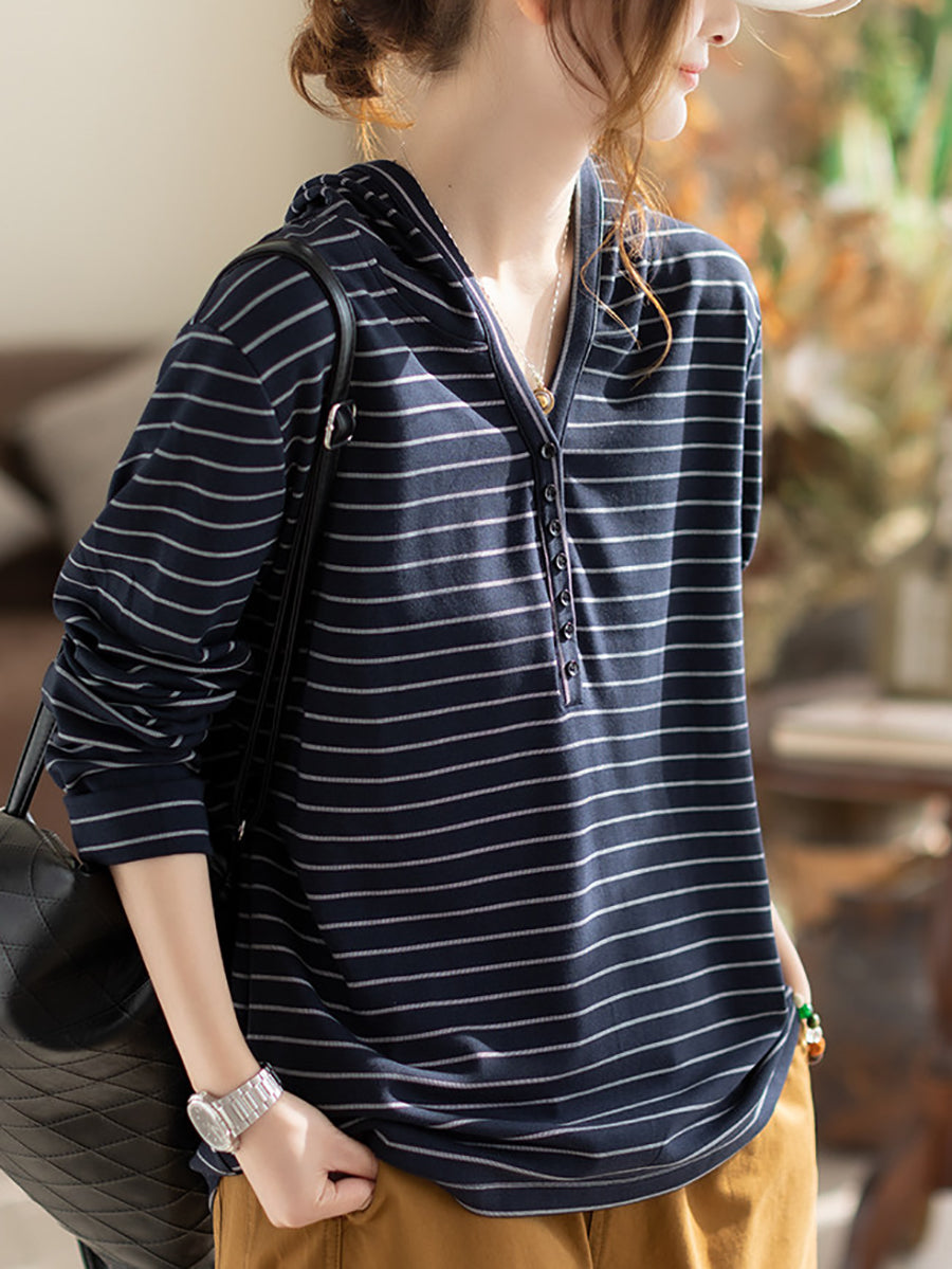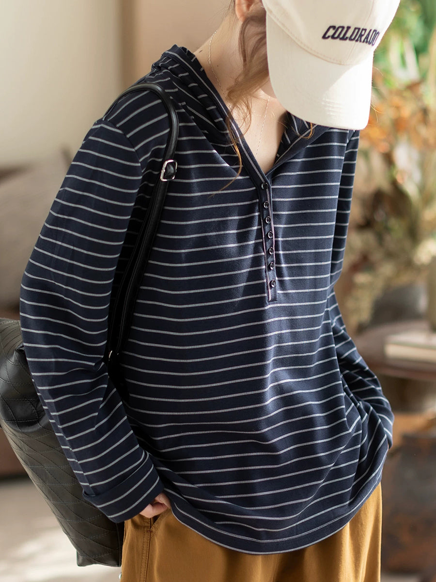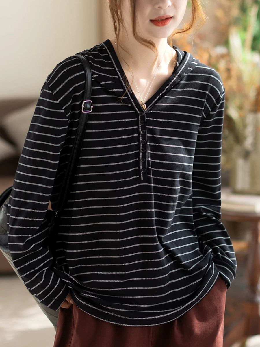 Blusa con capucha de algodón con rayas artísticas de primavera para mujer