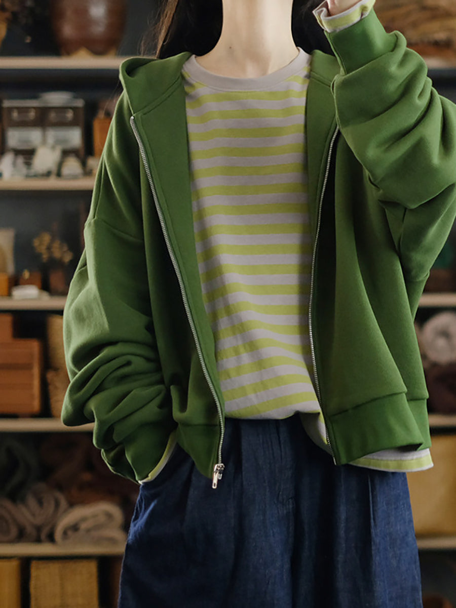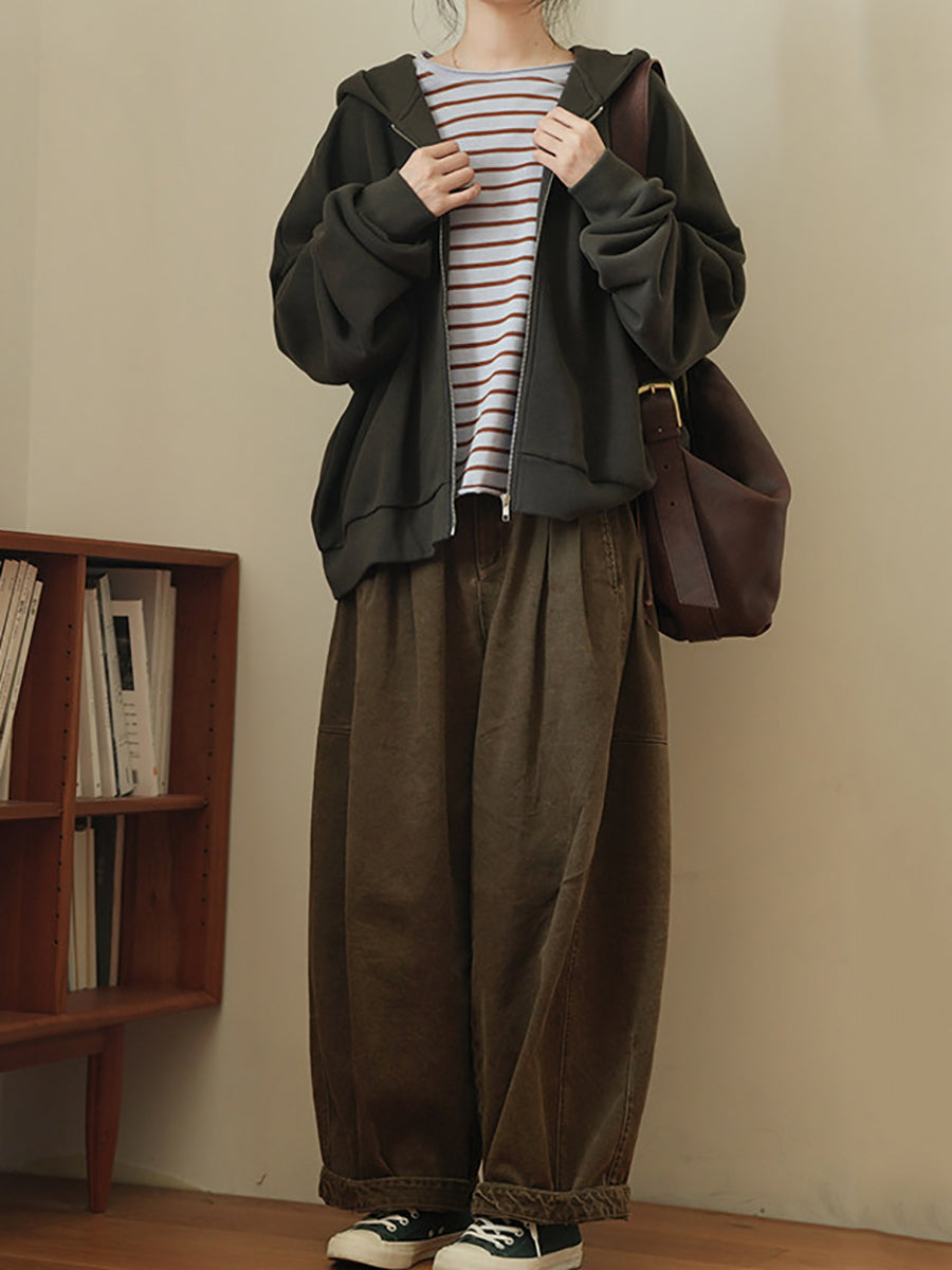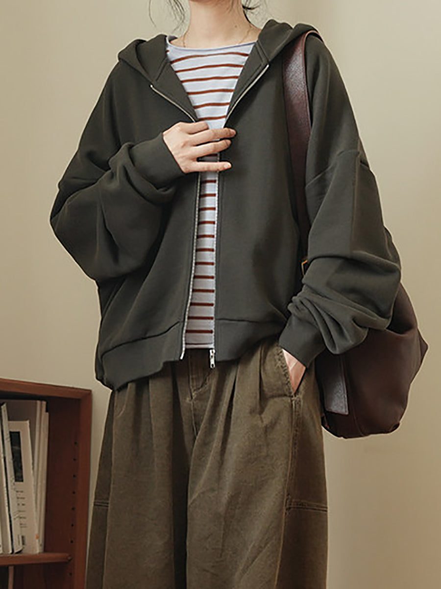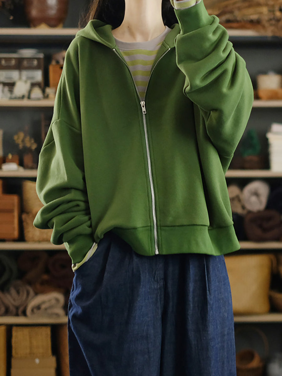 Abrigo con capucha de algodón de color puro informal de primavera para mujer
