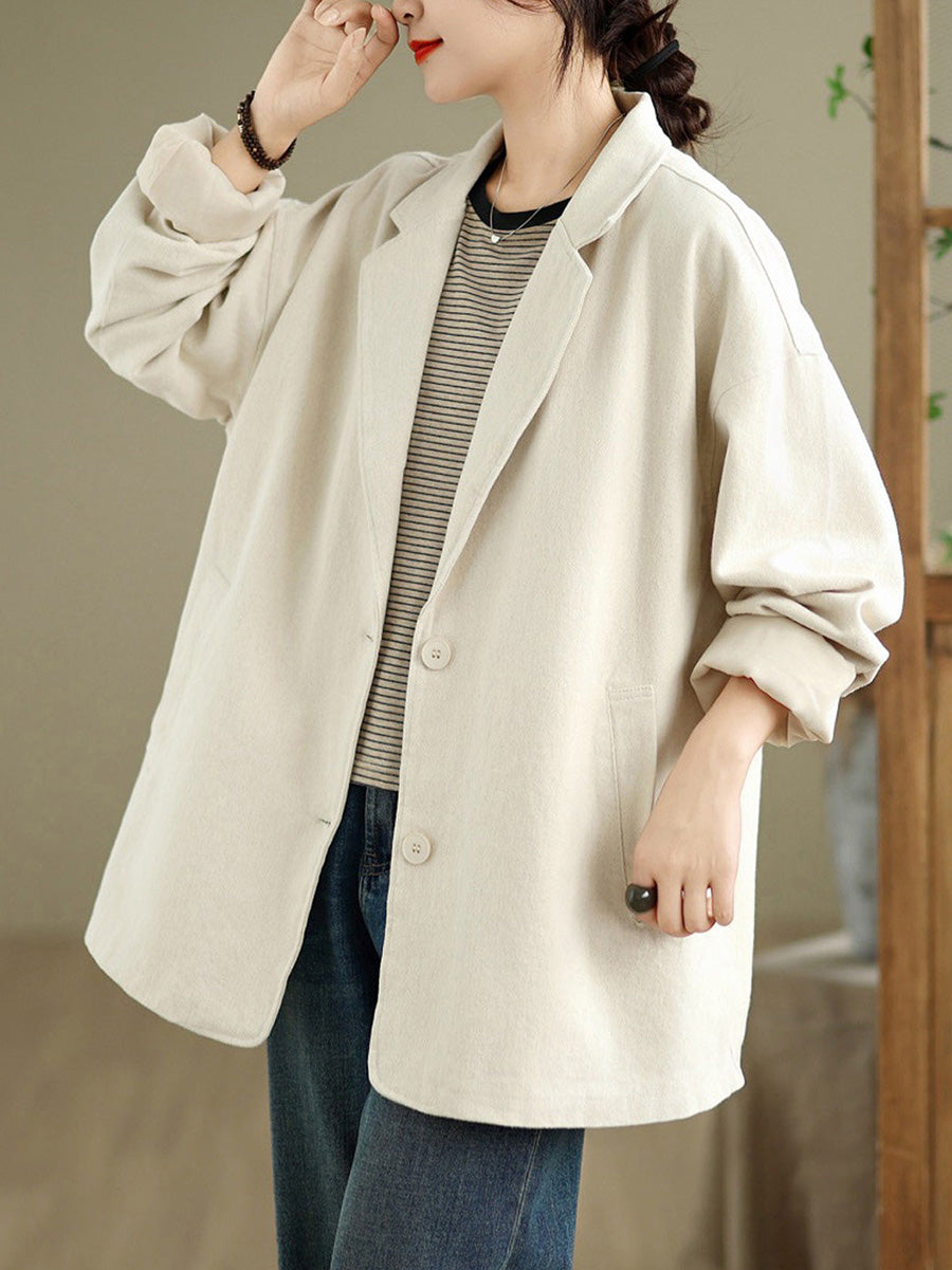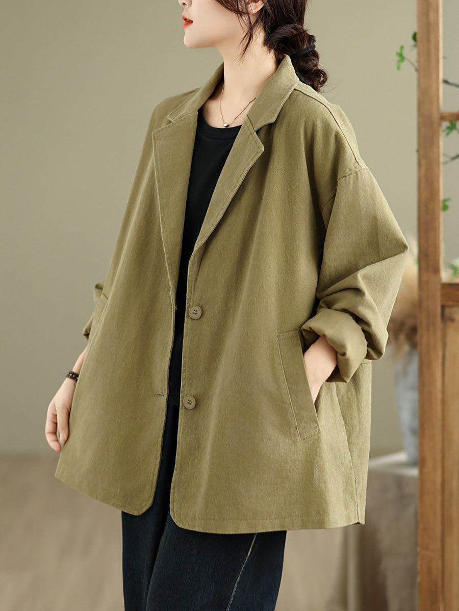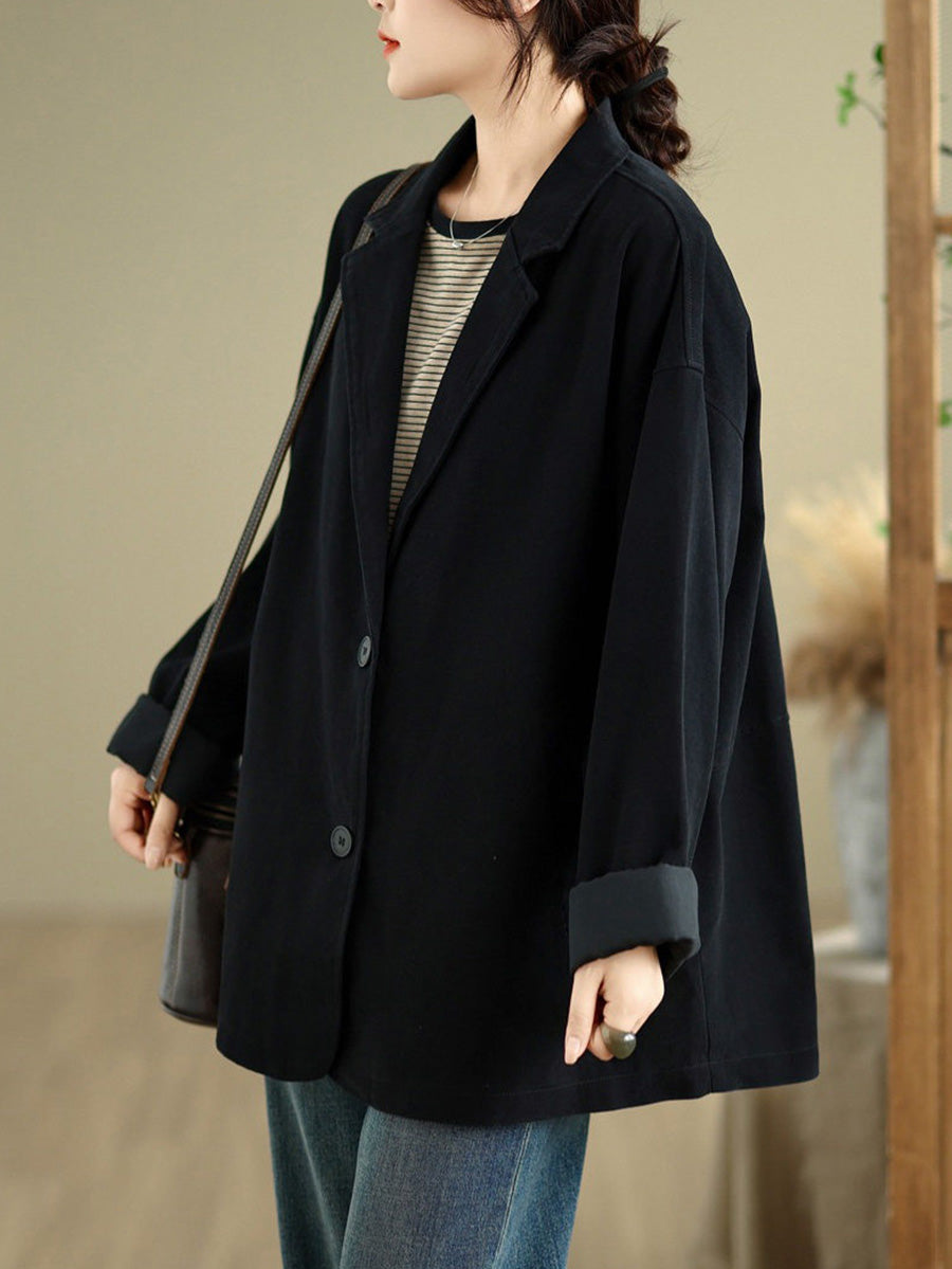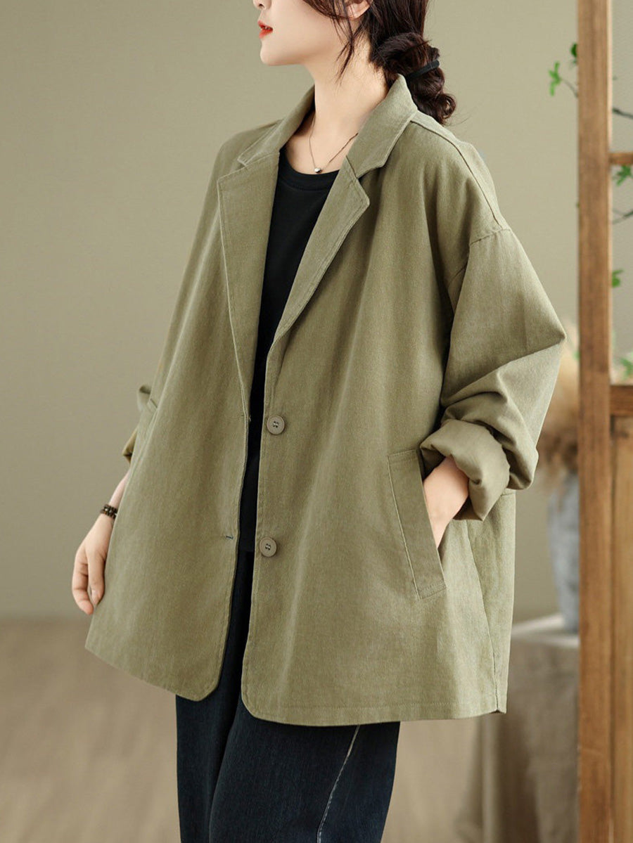 Chaqueta informal de primavera para mujer, color puro, con cuello vuelto