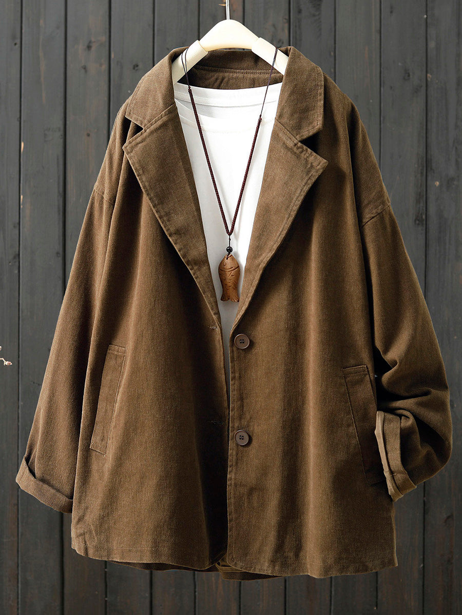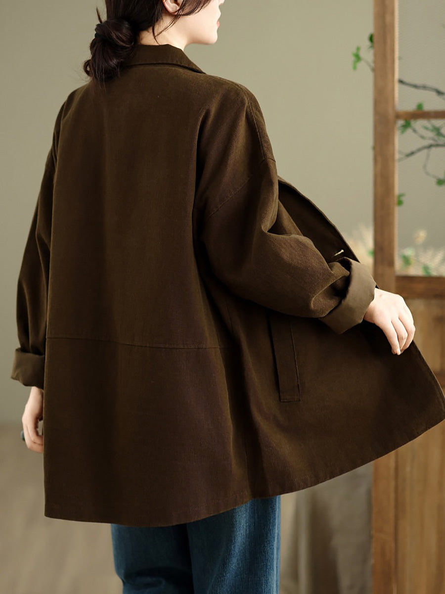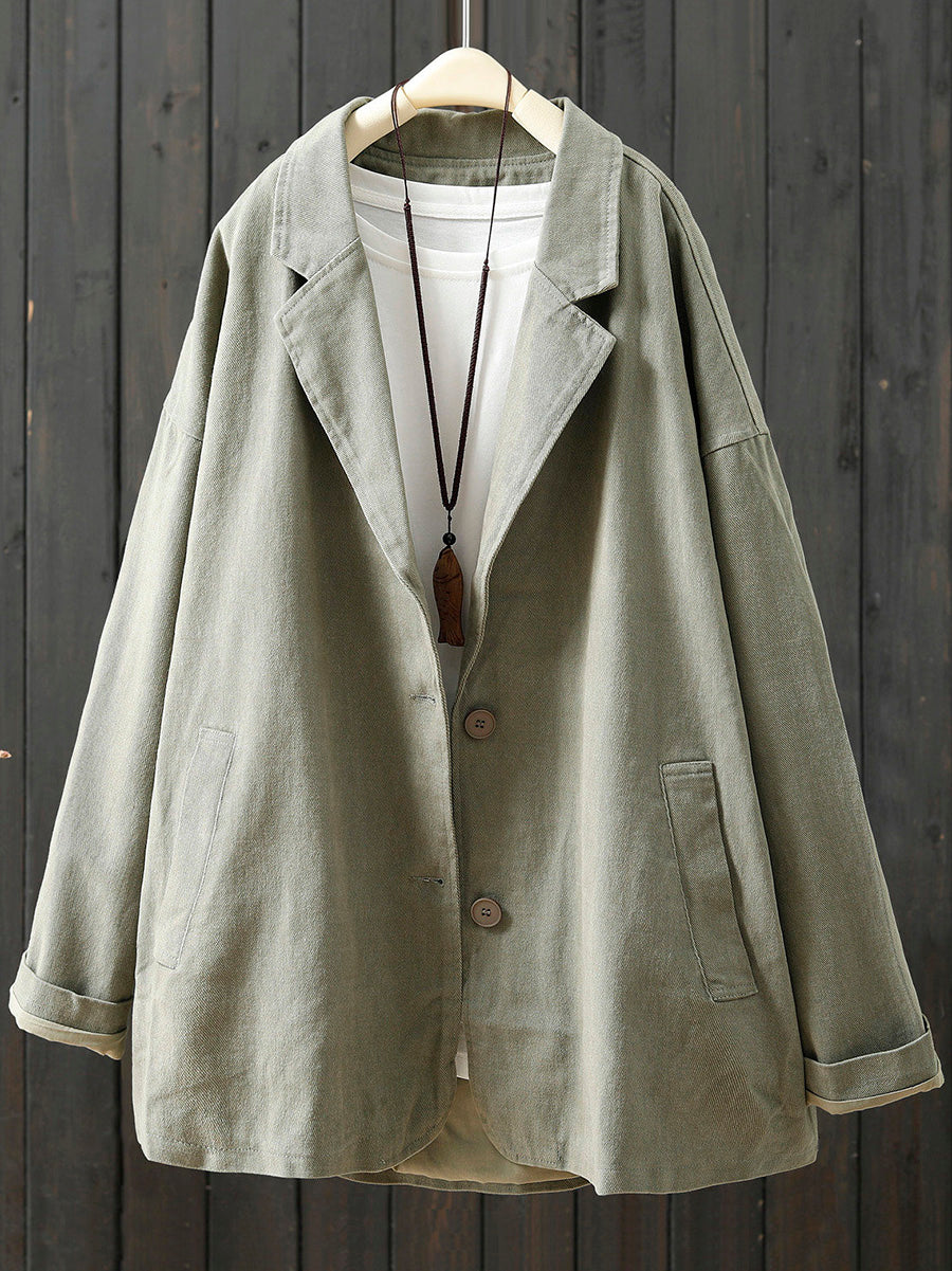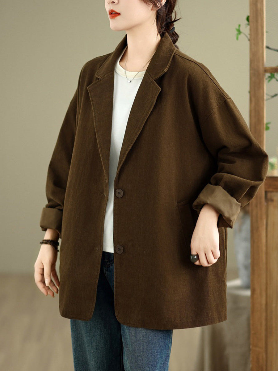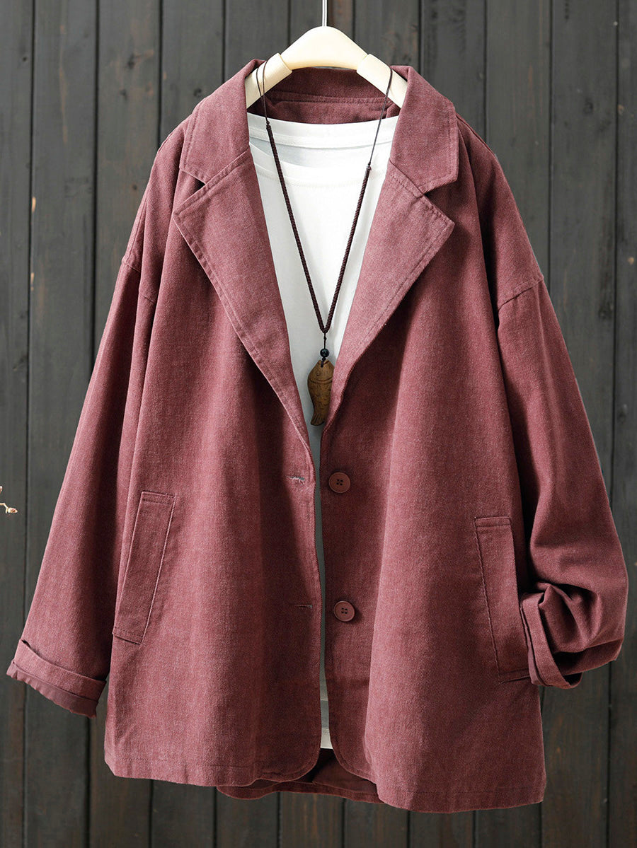 Chaqueta informal de primavera para mujer, color puro, con cuello vuelto