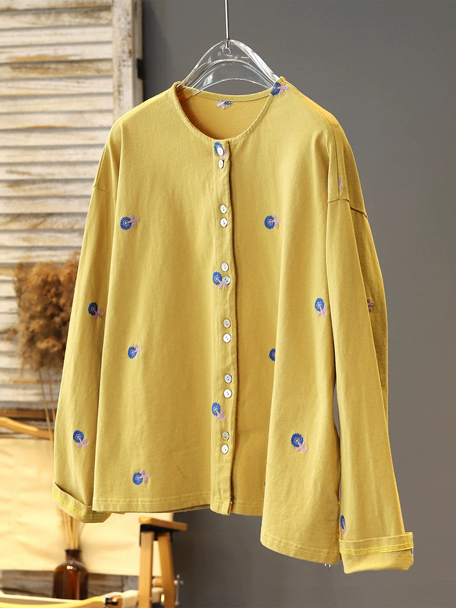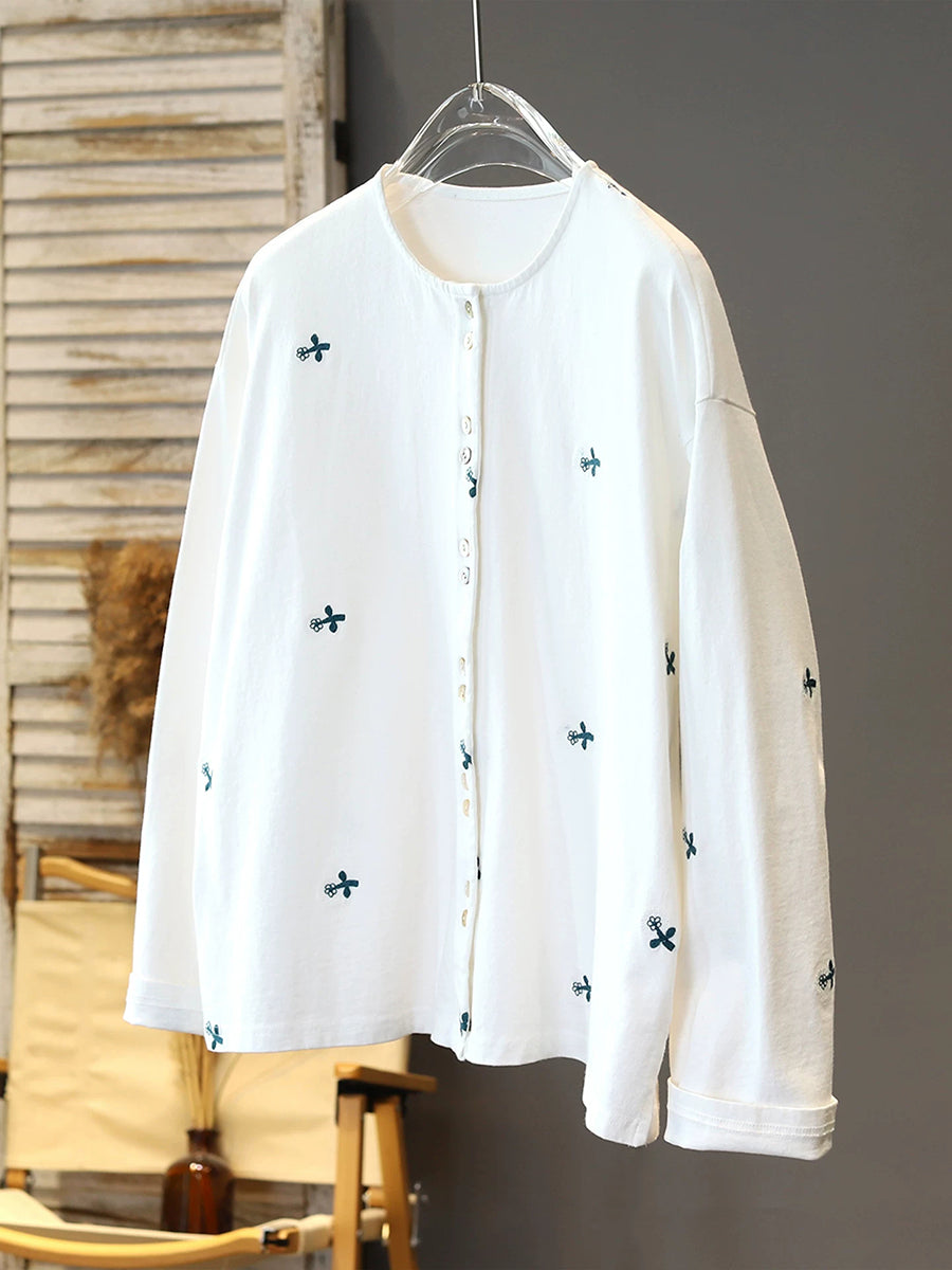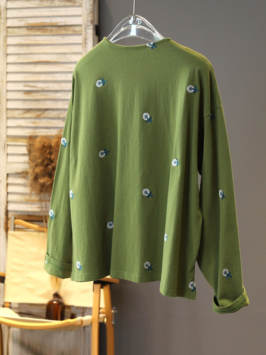Blusa de cuello redondo con bordado de flores de primavera para mujer