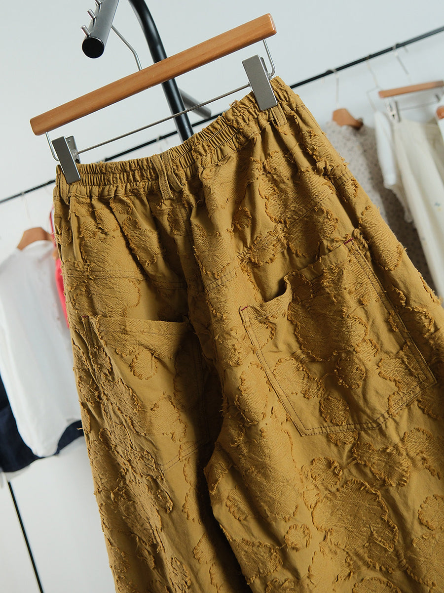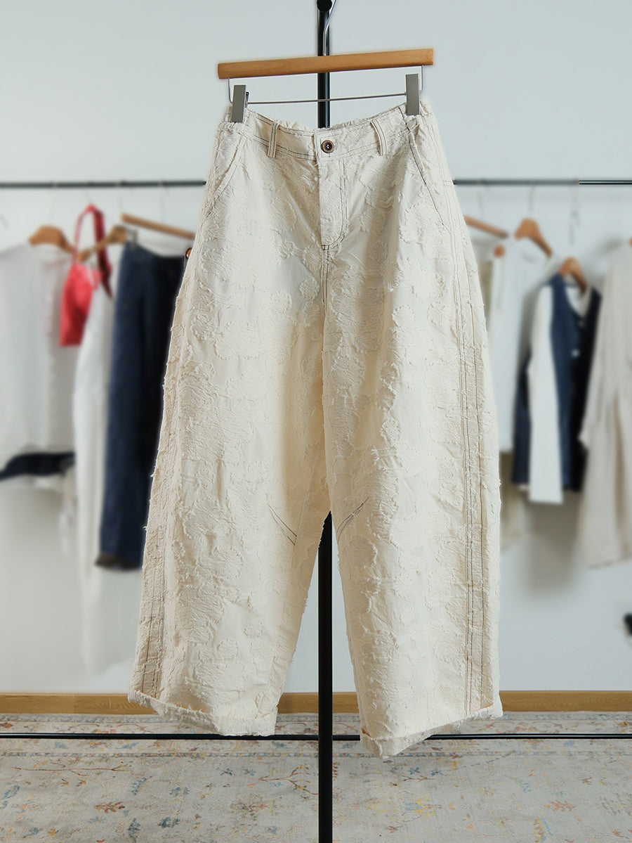 Pantalones anchos de jacquard con flores de primavera para mujer