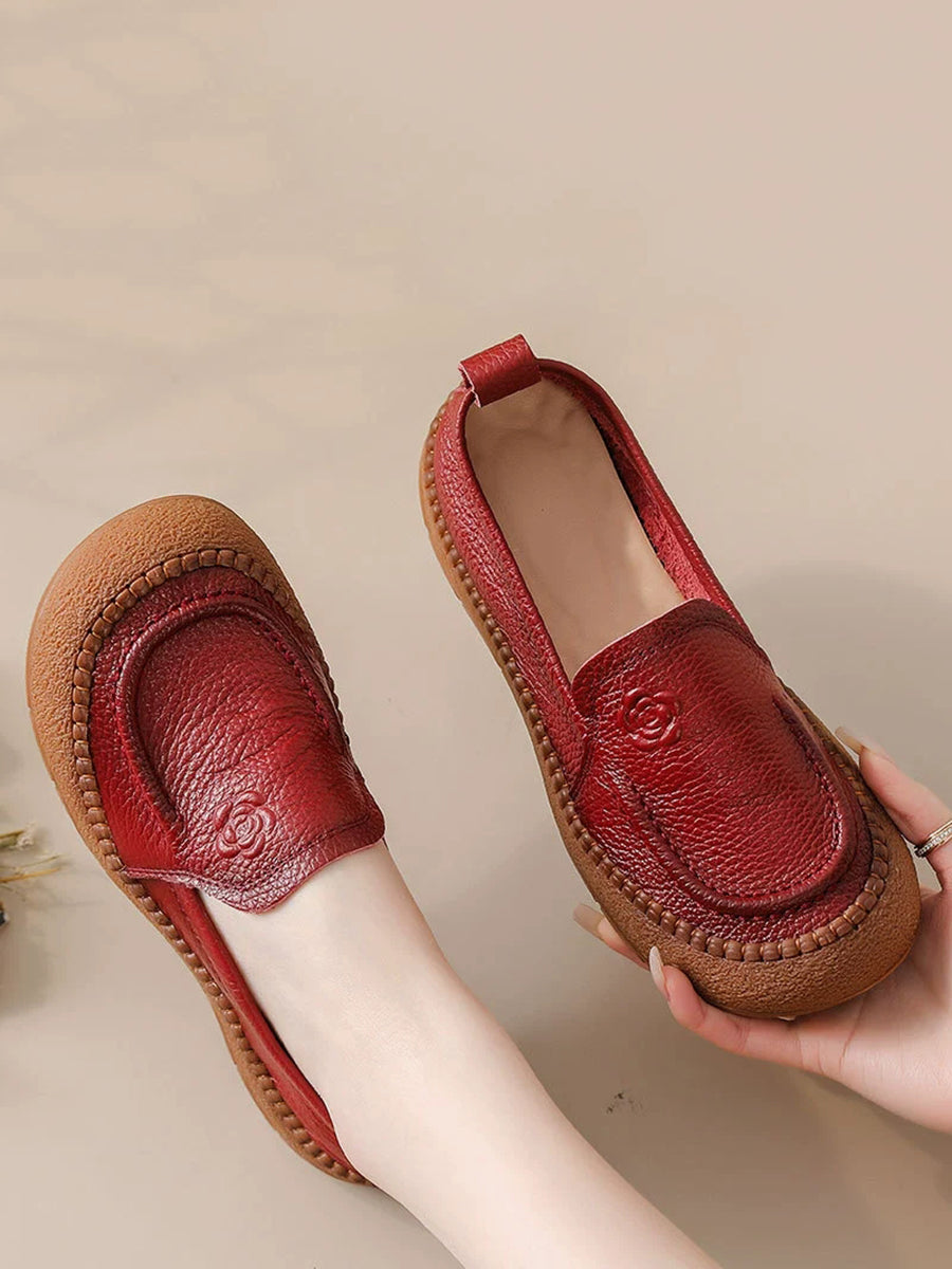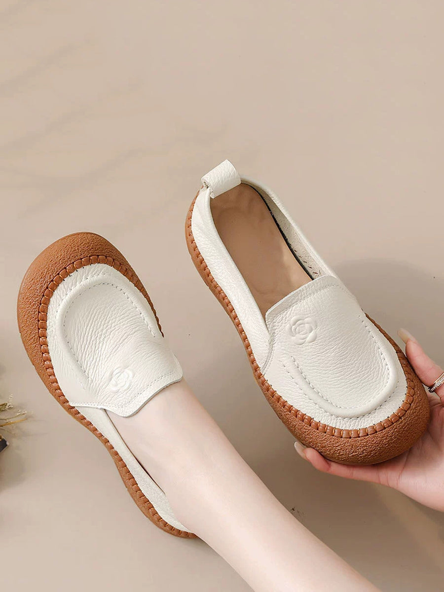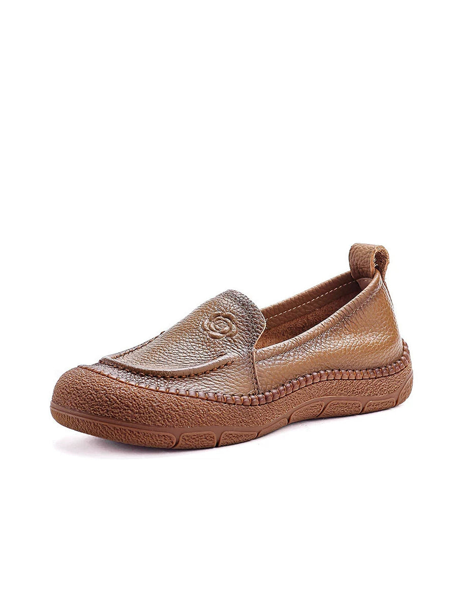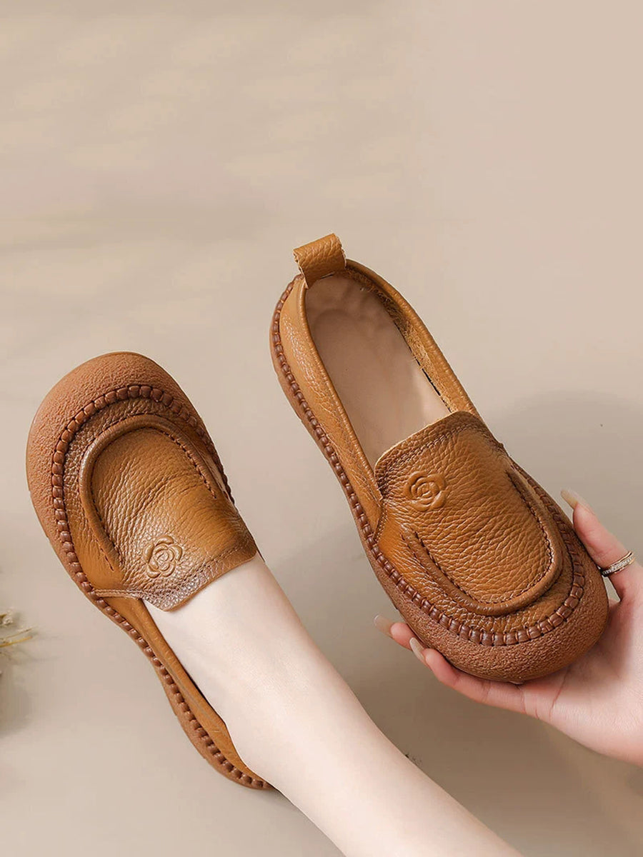 Zapatos planos de piel auténtica con estampado floral para mujer, primavera