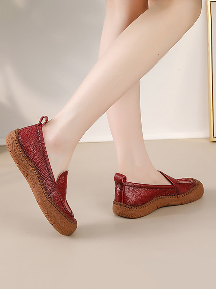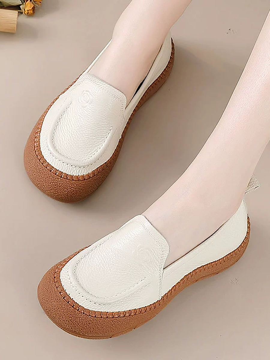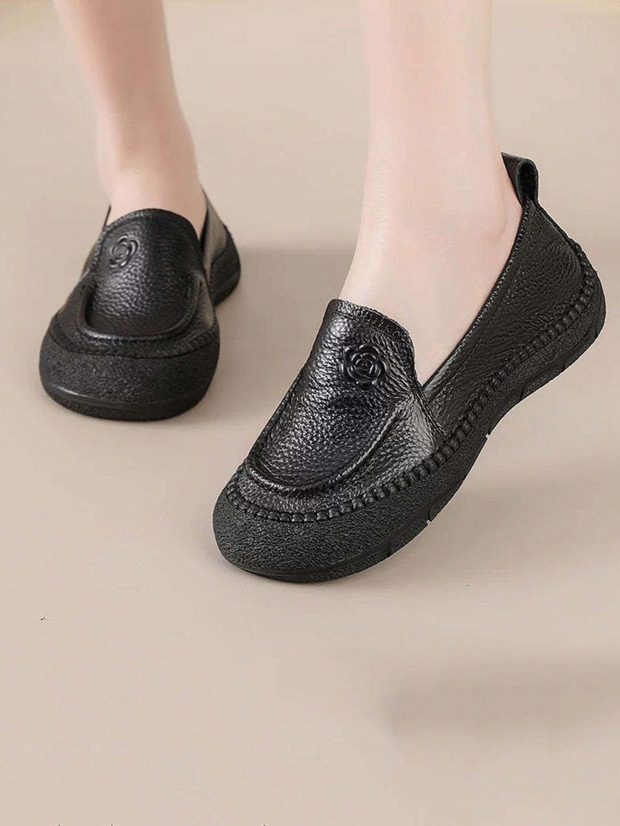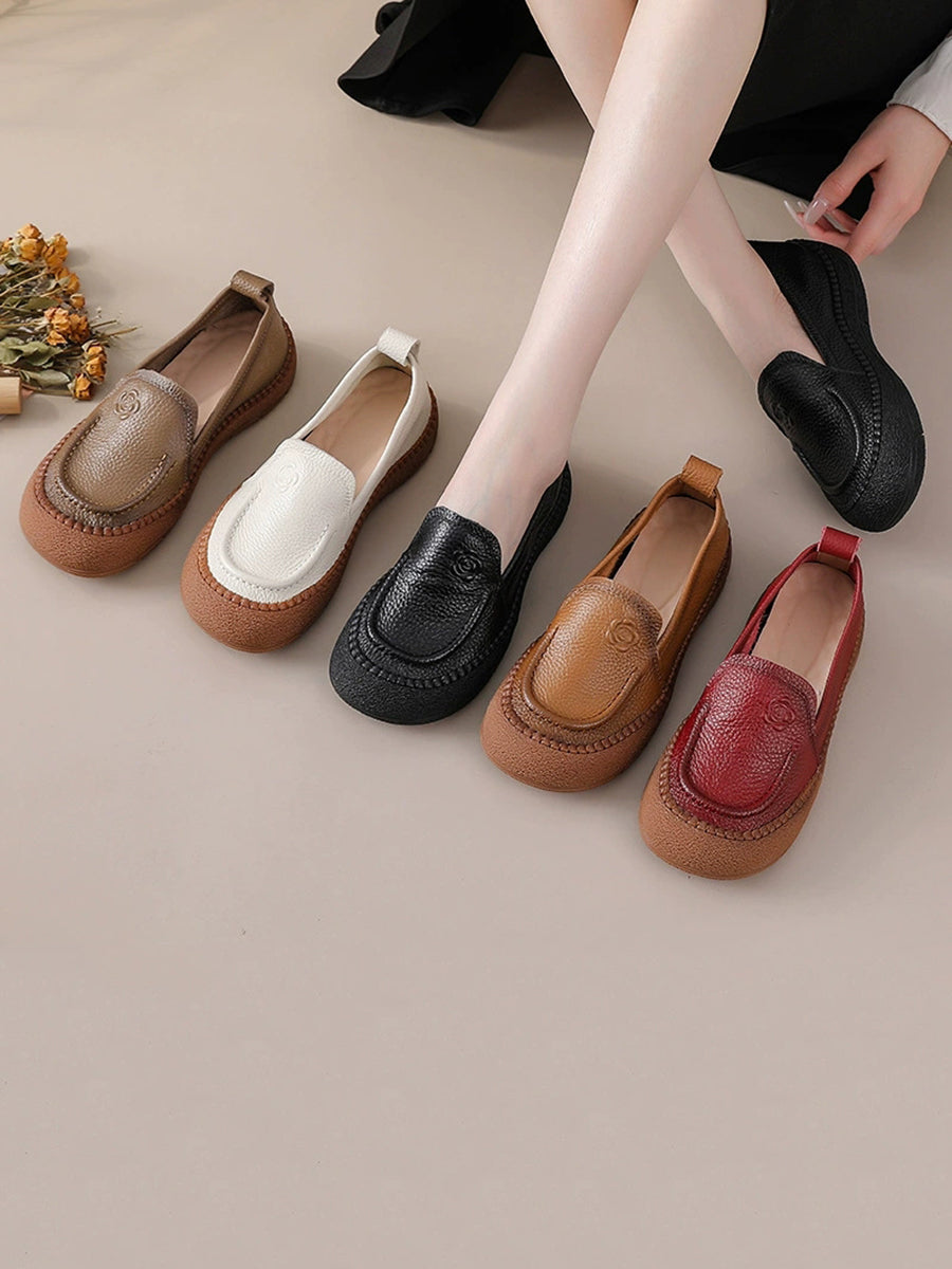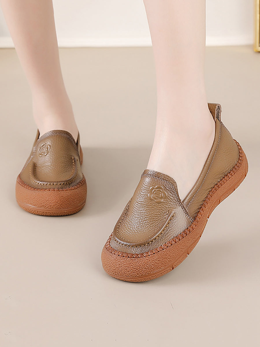 Zapatos planos de piel auténtica con estampado floral para mujer, primavera