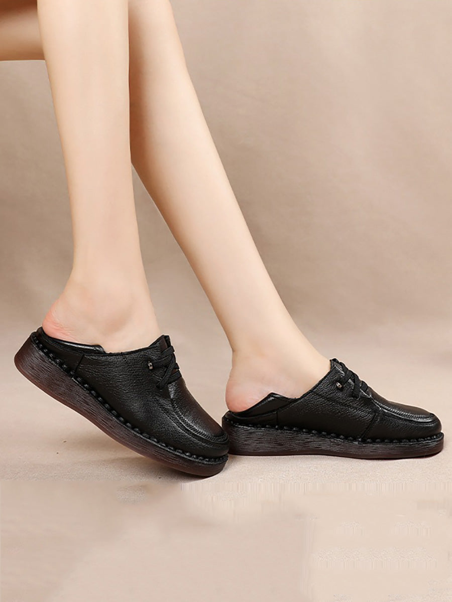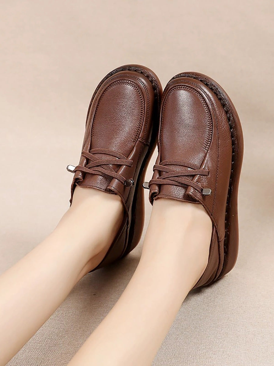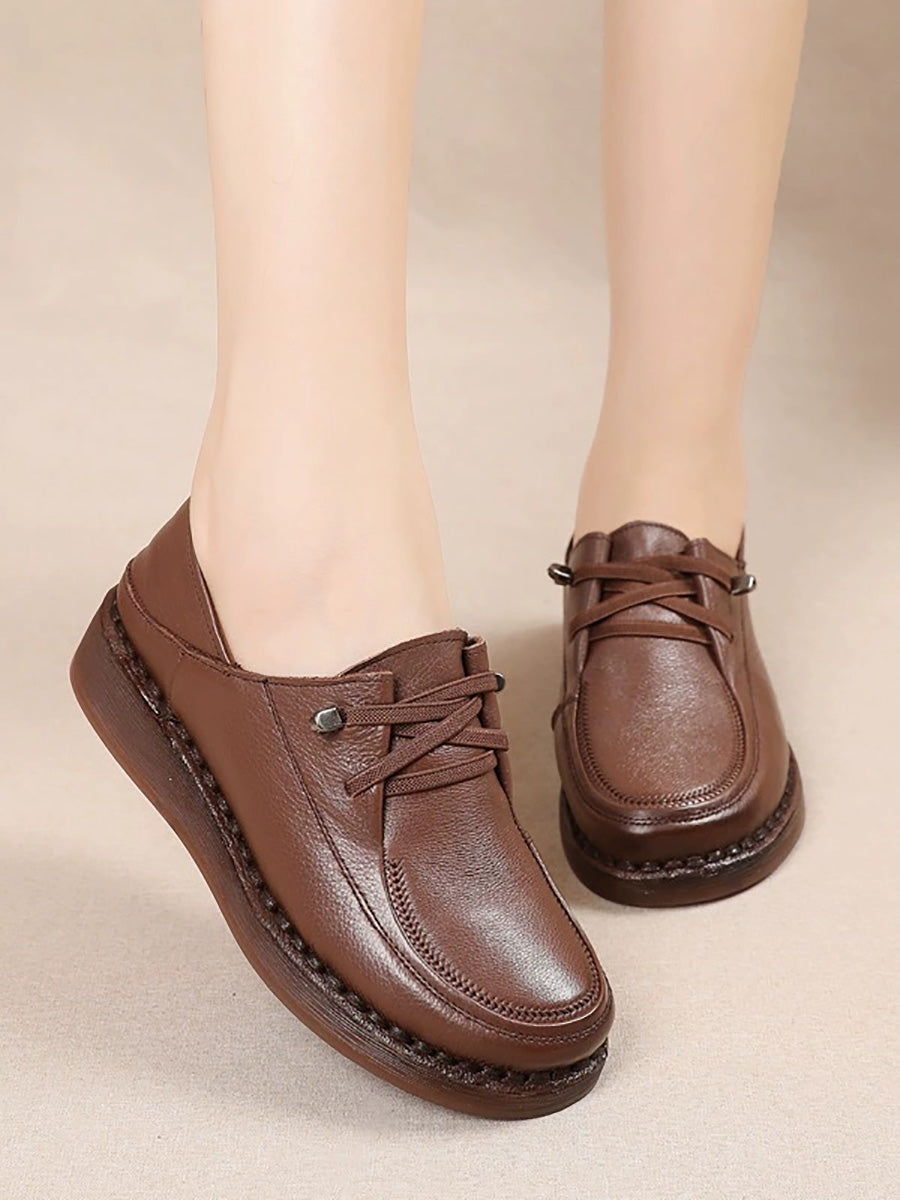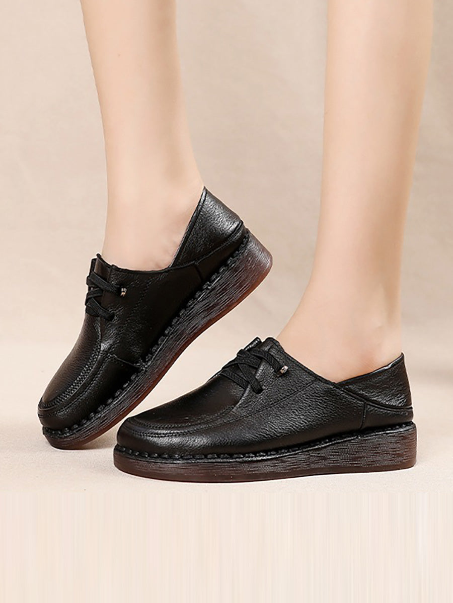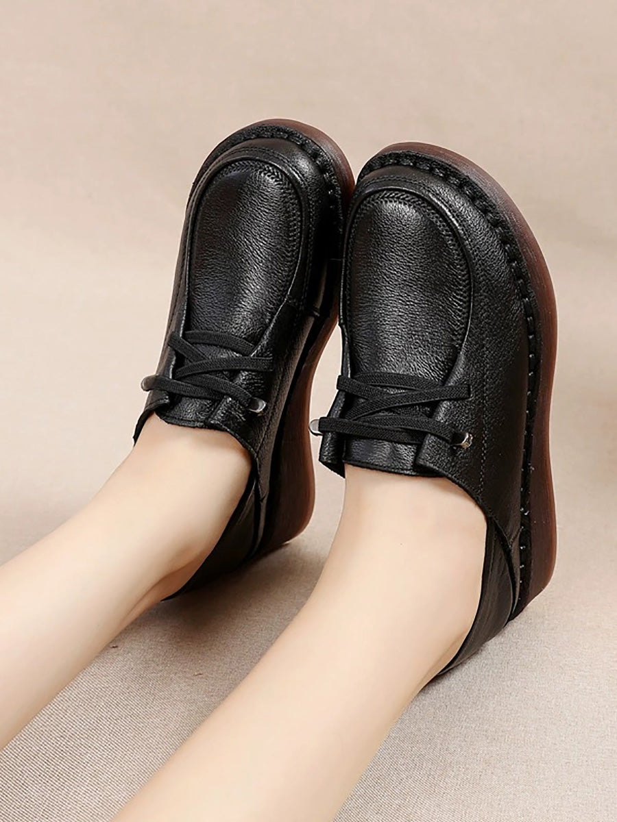 Zapatos de plataforma de piel auténtica para mujer de primavera