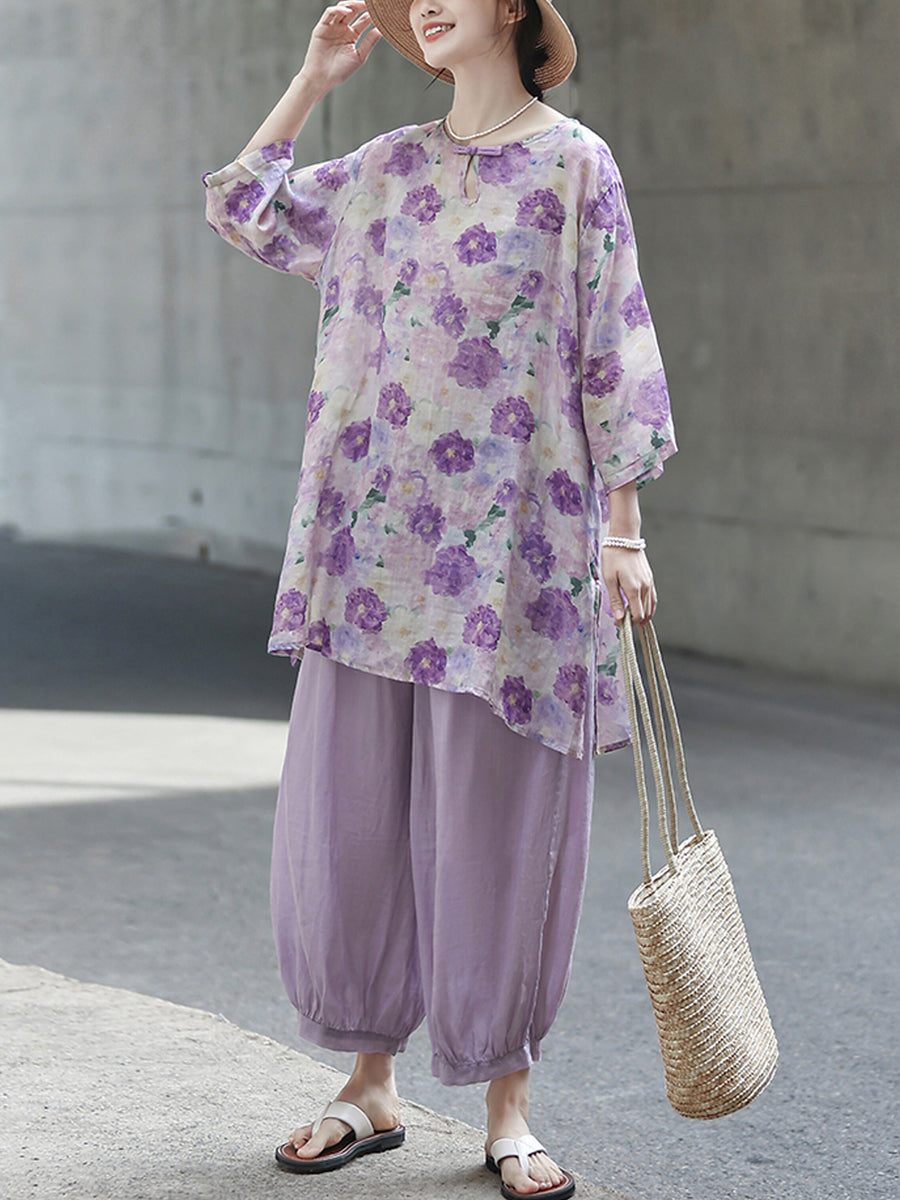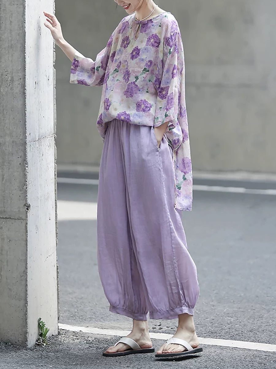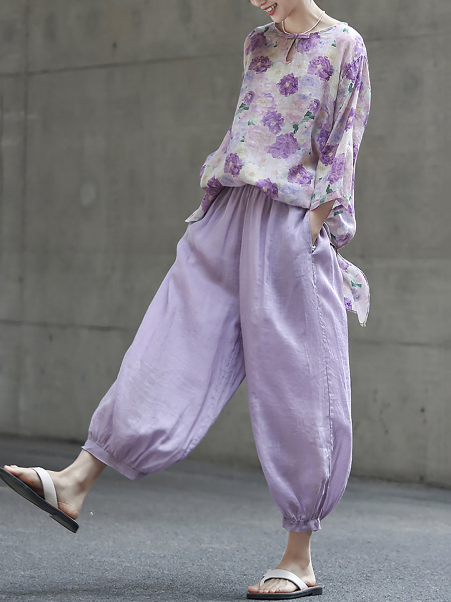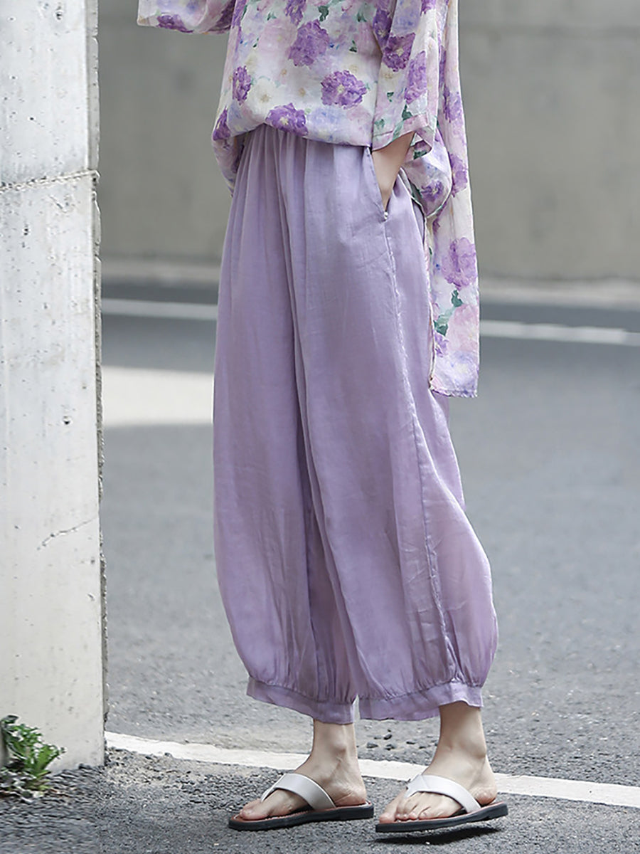 Pantalones bombachos 100 % algodón de color puro para mujer, primavera