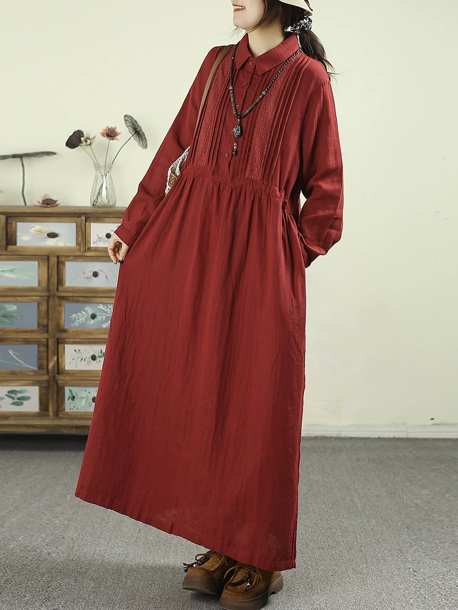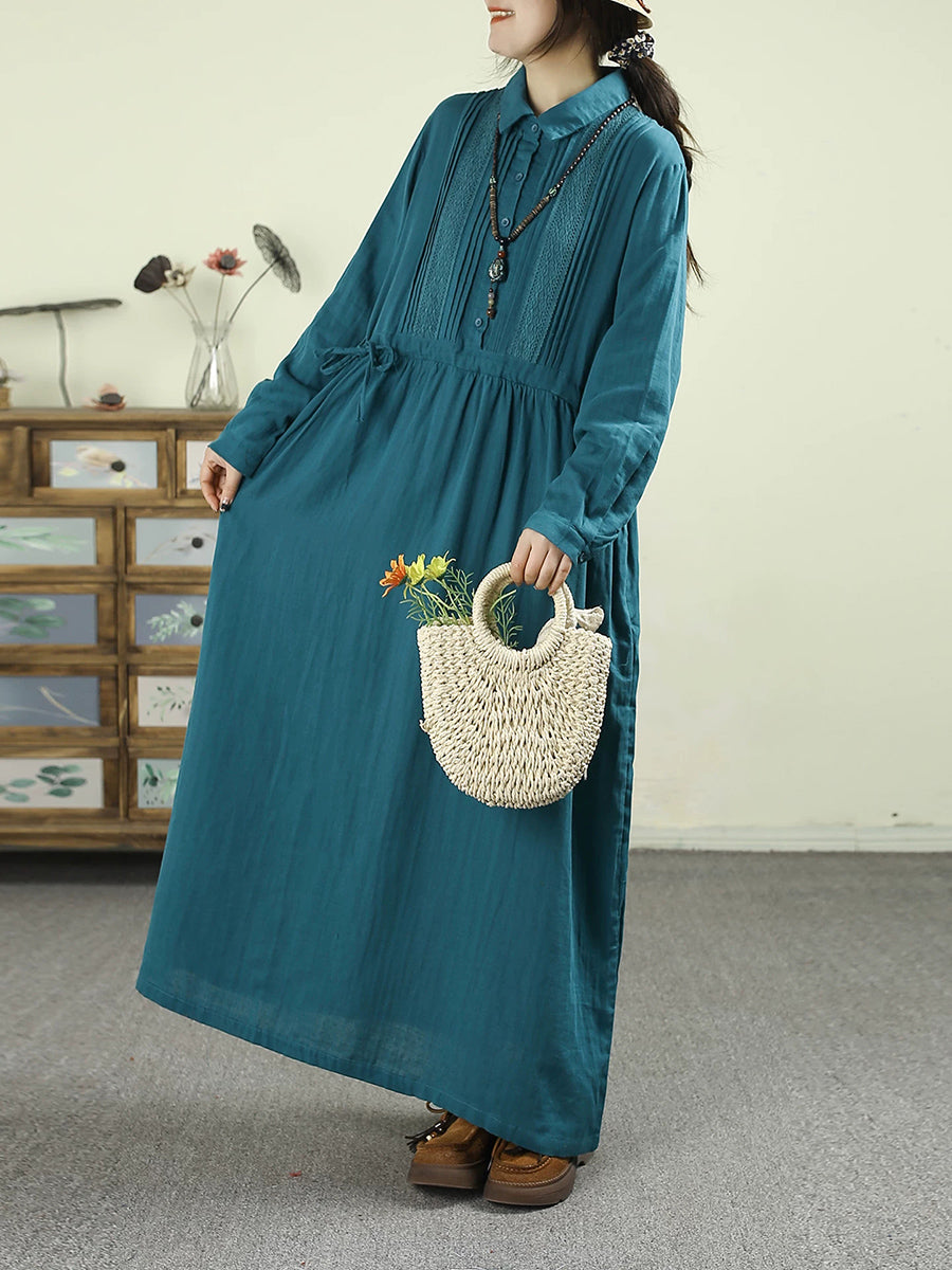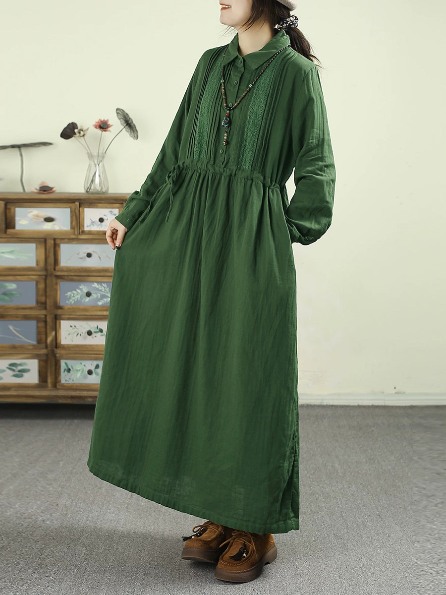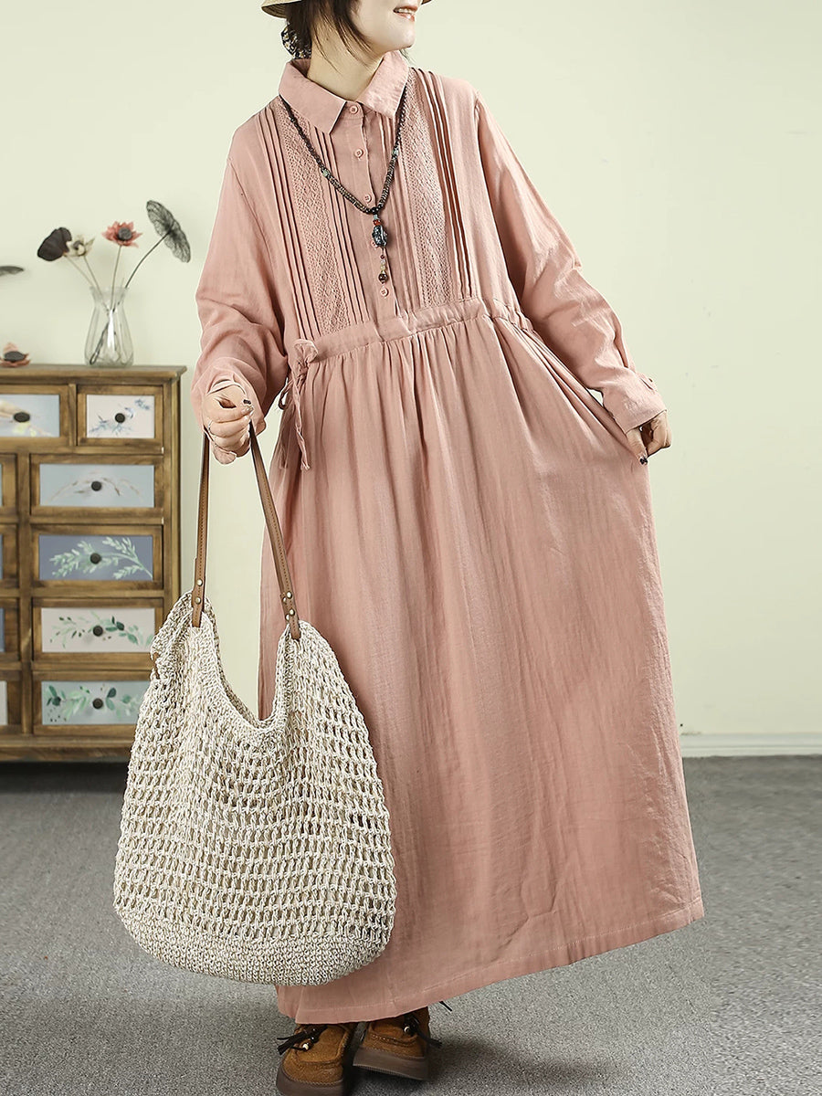 Vestido de primavera para mujer, 100 % algodón, con encaje de color puro
