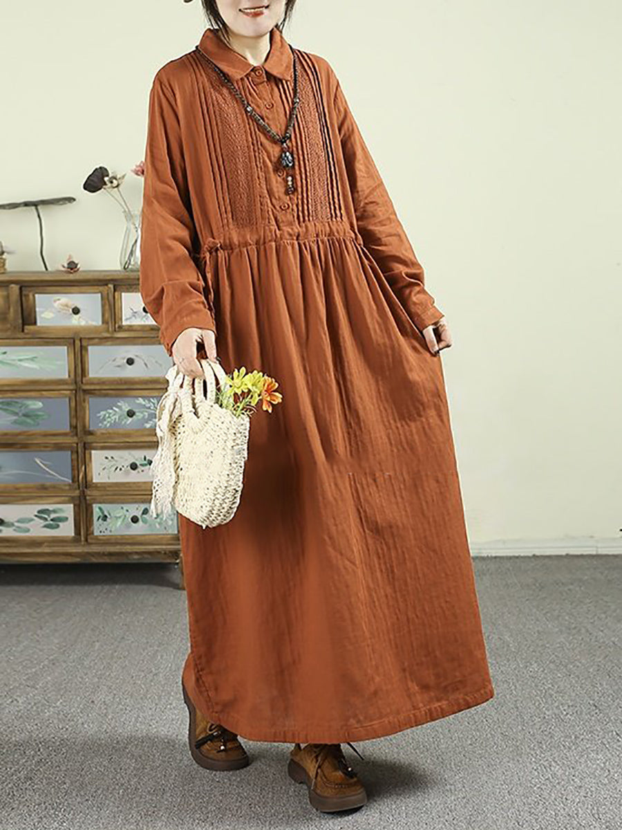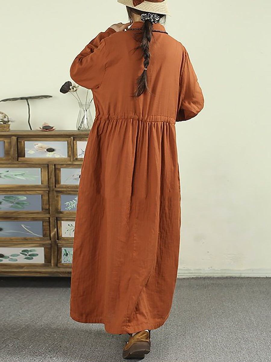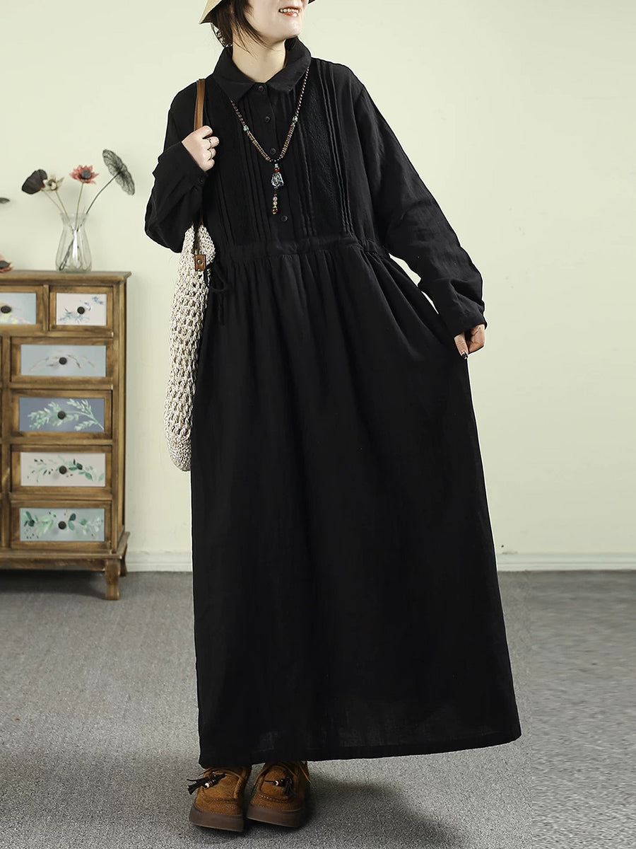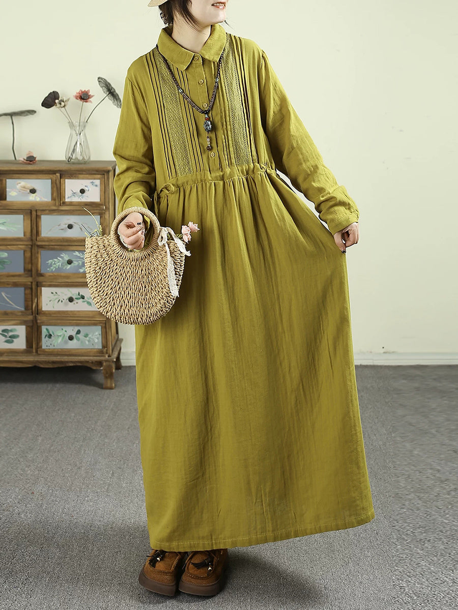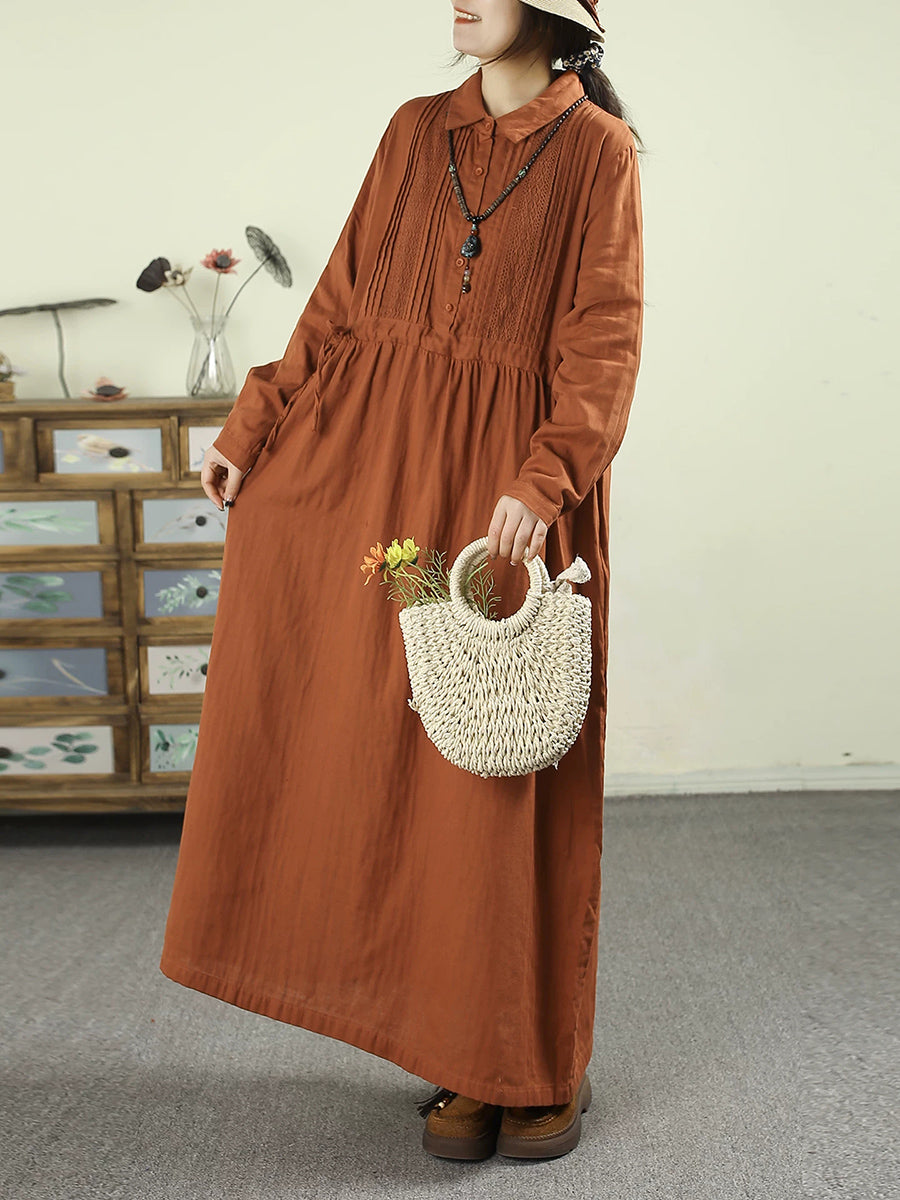 Vestido de primavera para mujer, 100 % algodón, con encaje de color puro
