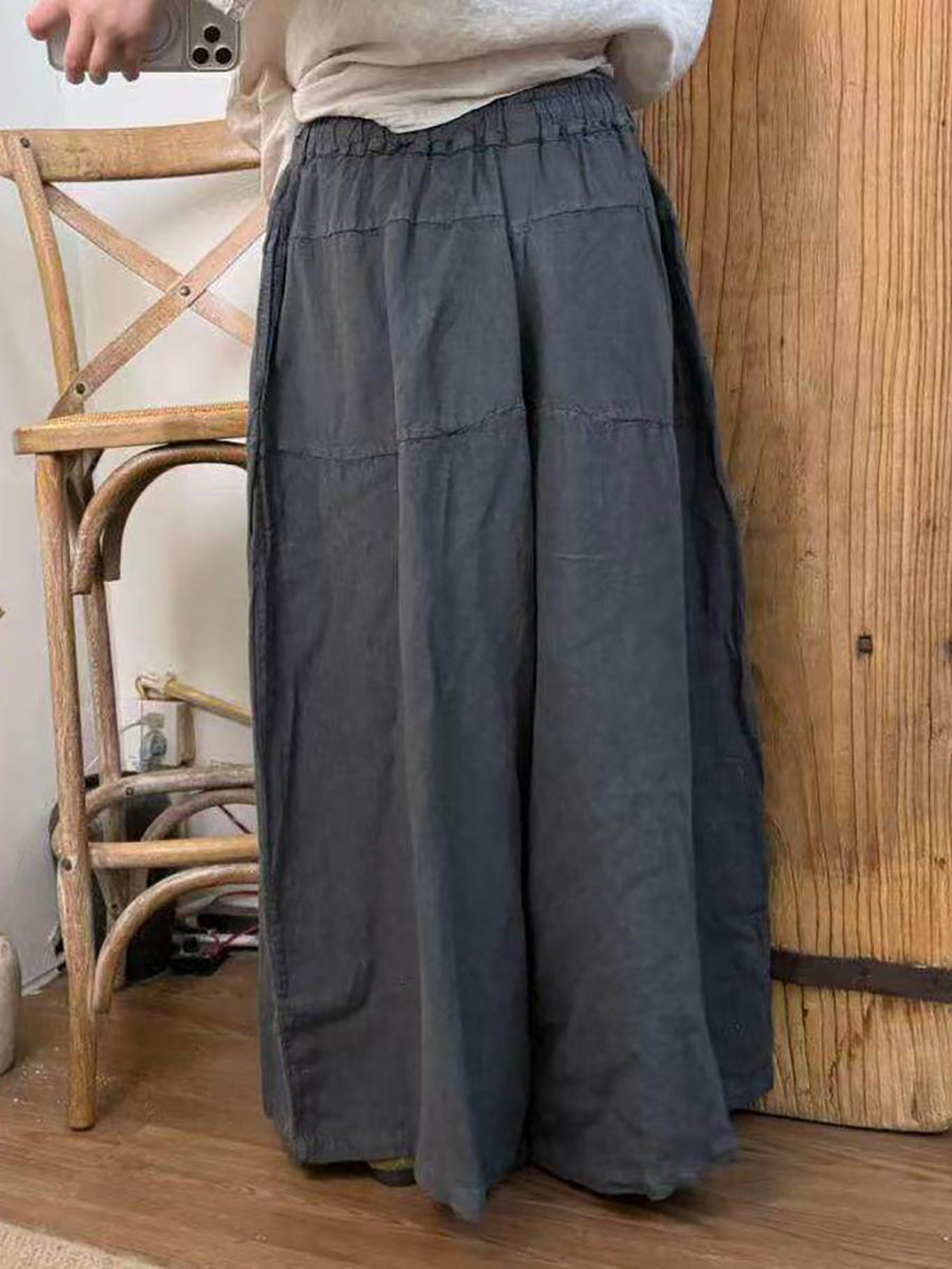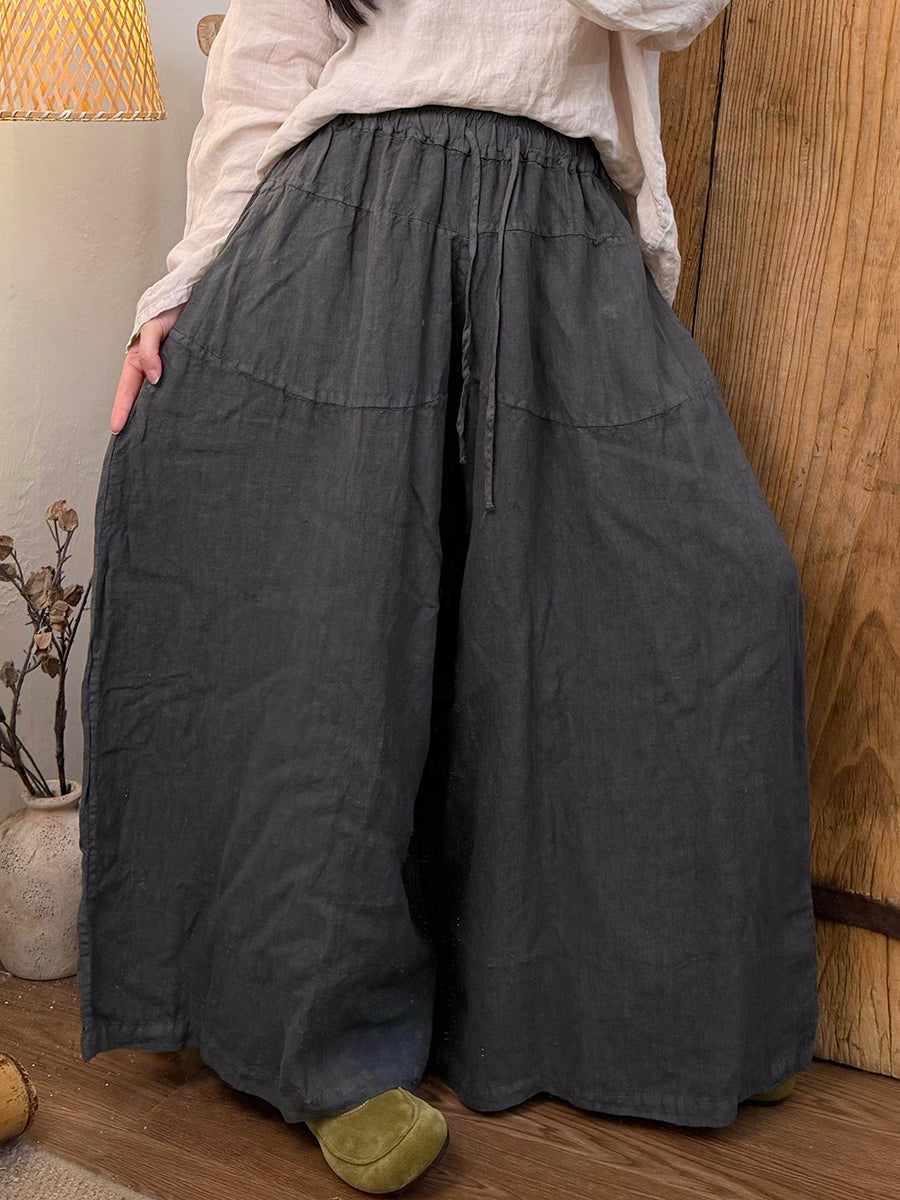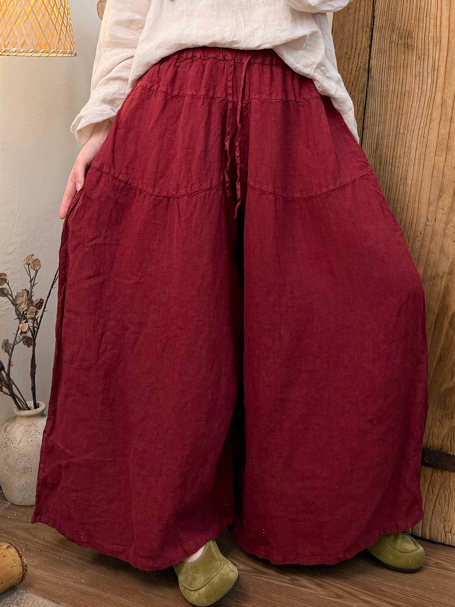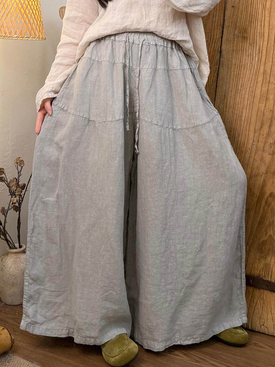 Pantalones anchos de lino de color puro para mujer, primavera