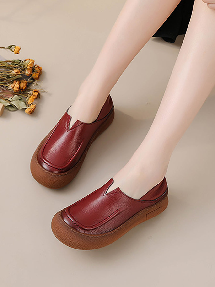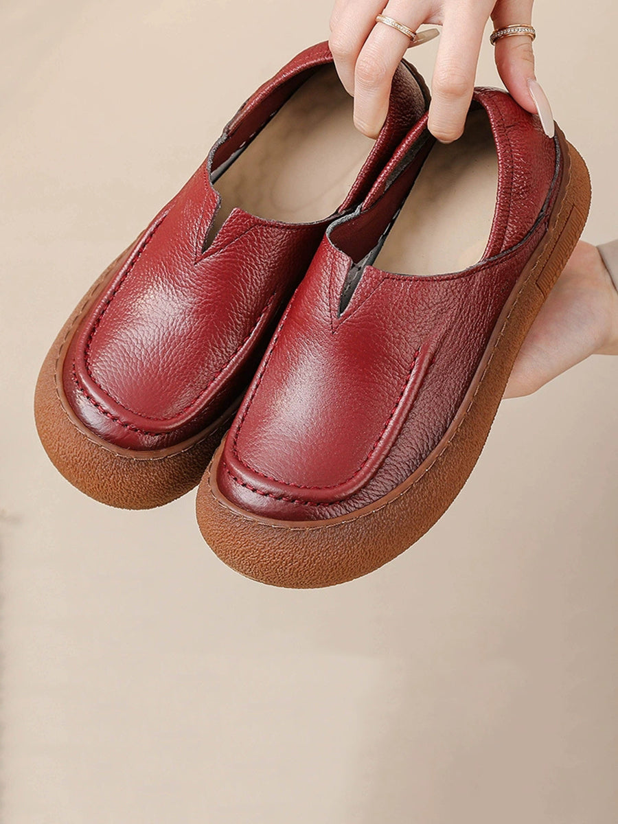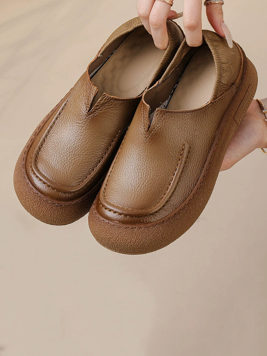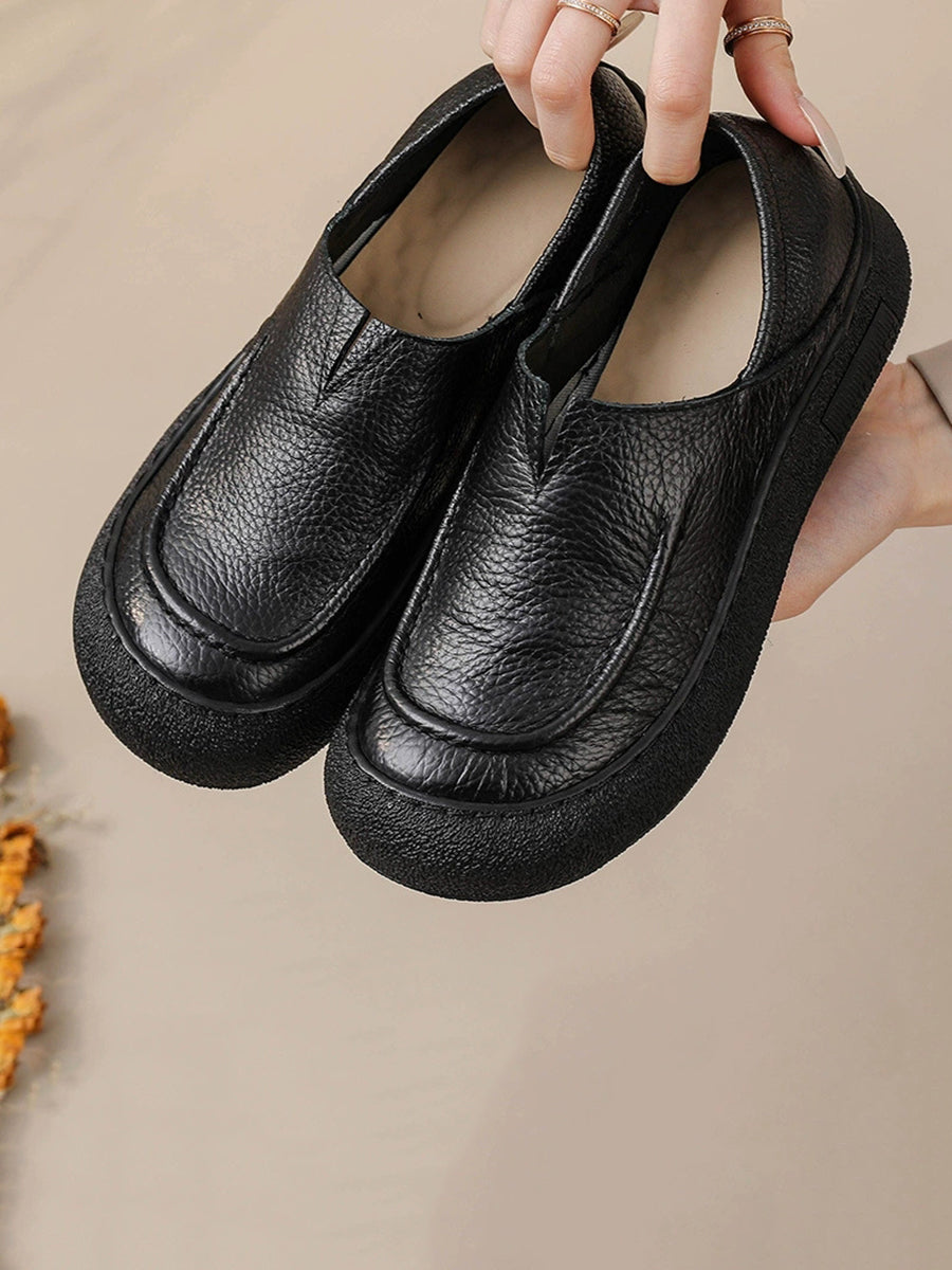 Zapatos planos retro de piel auténtica para mujer, de primavera