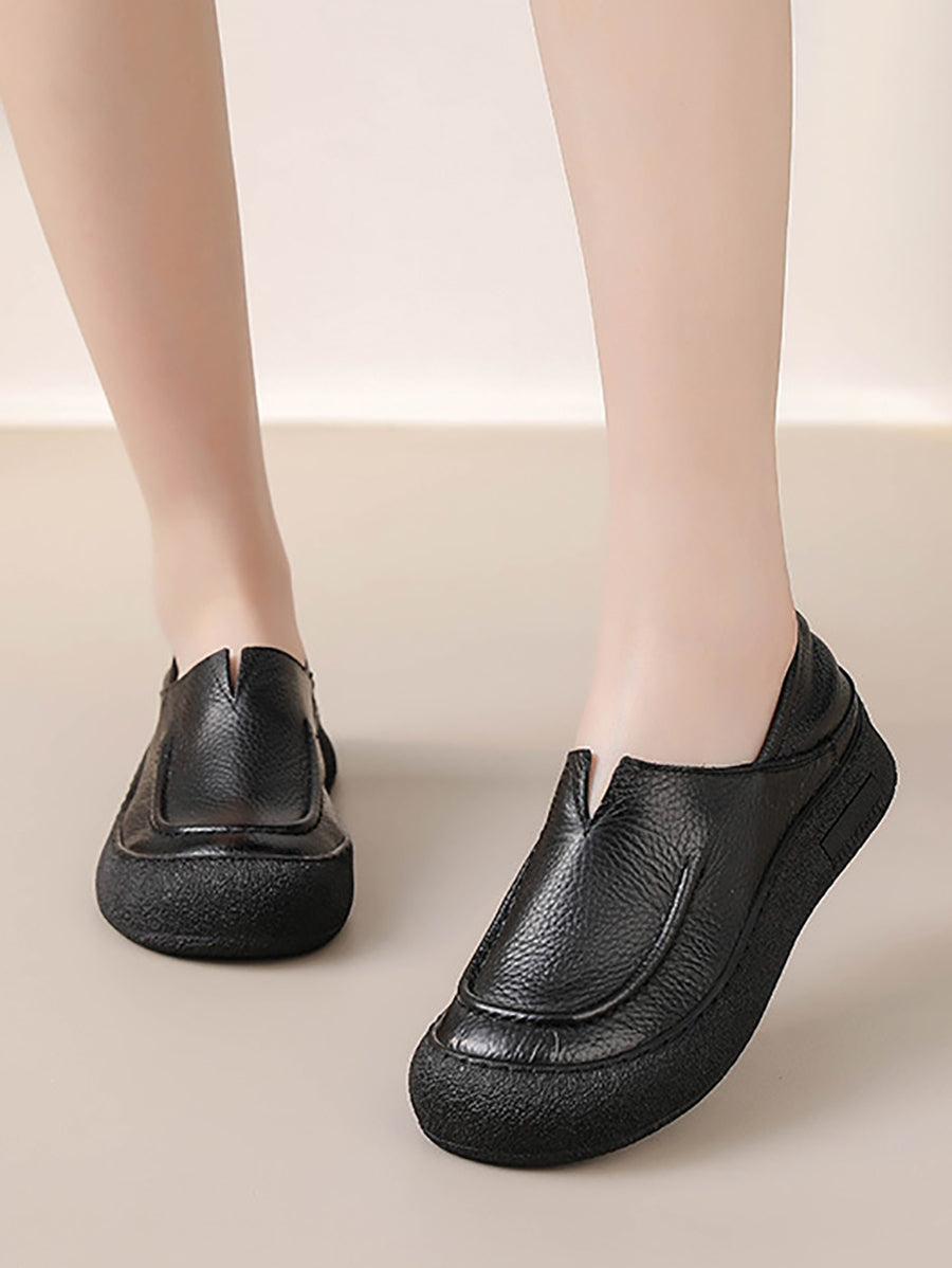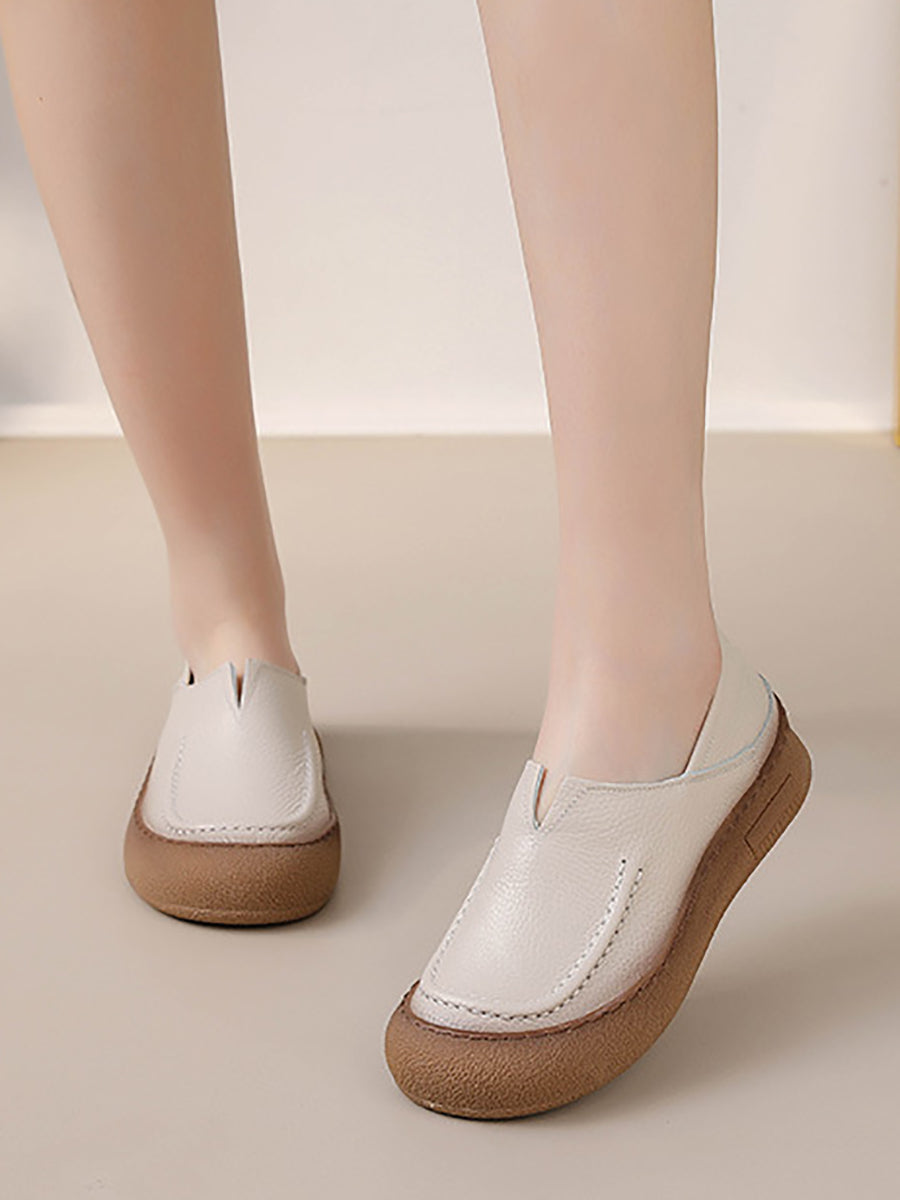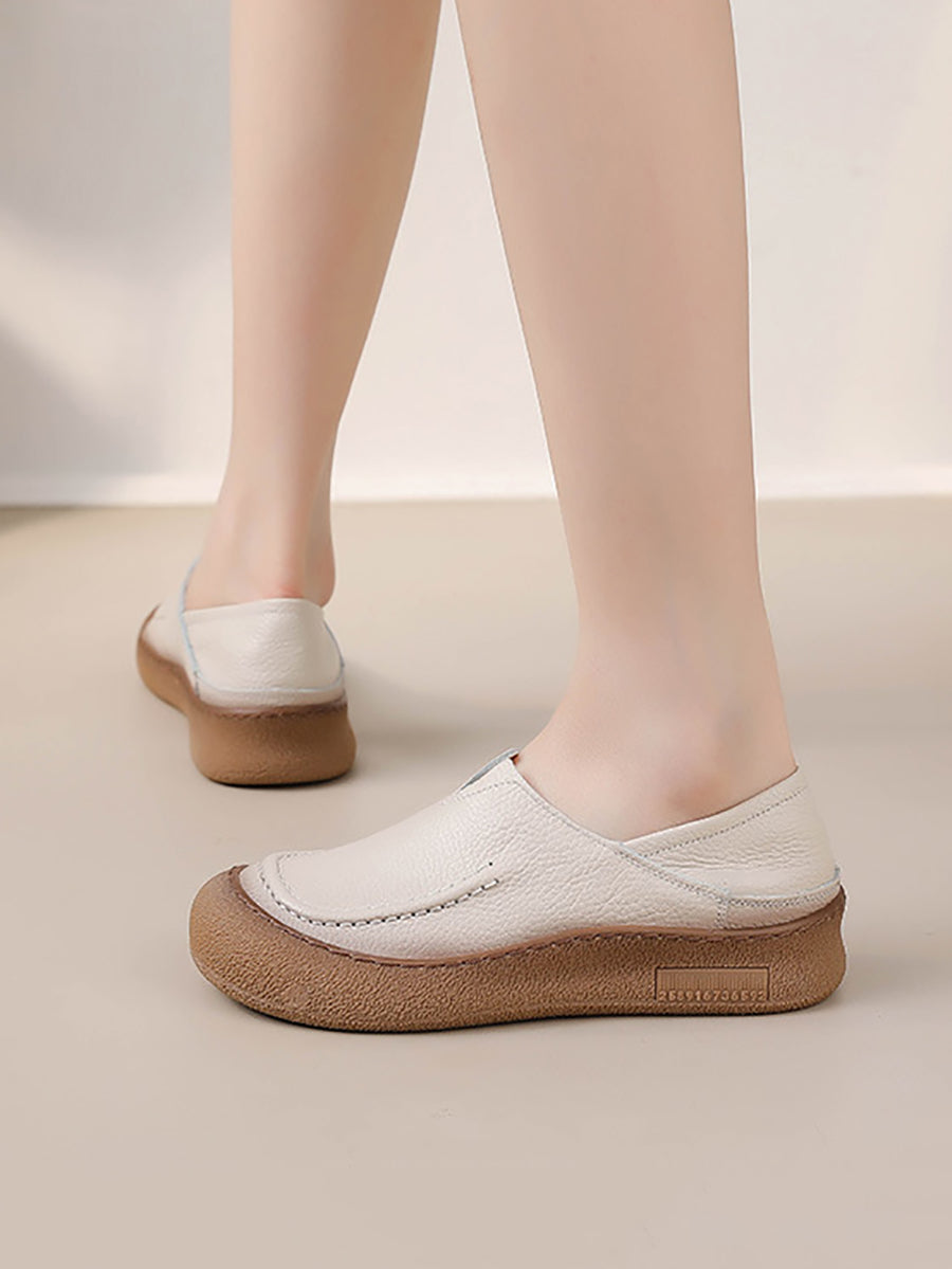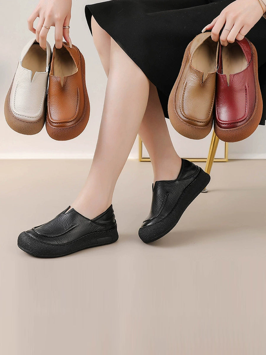 Zapatos planos retro de piel auténtica para mujer, de primavera