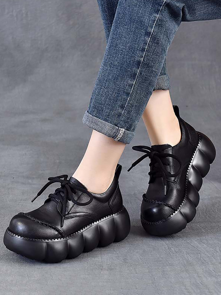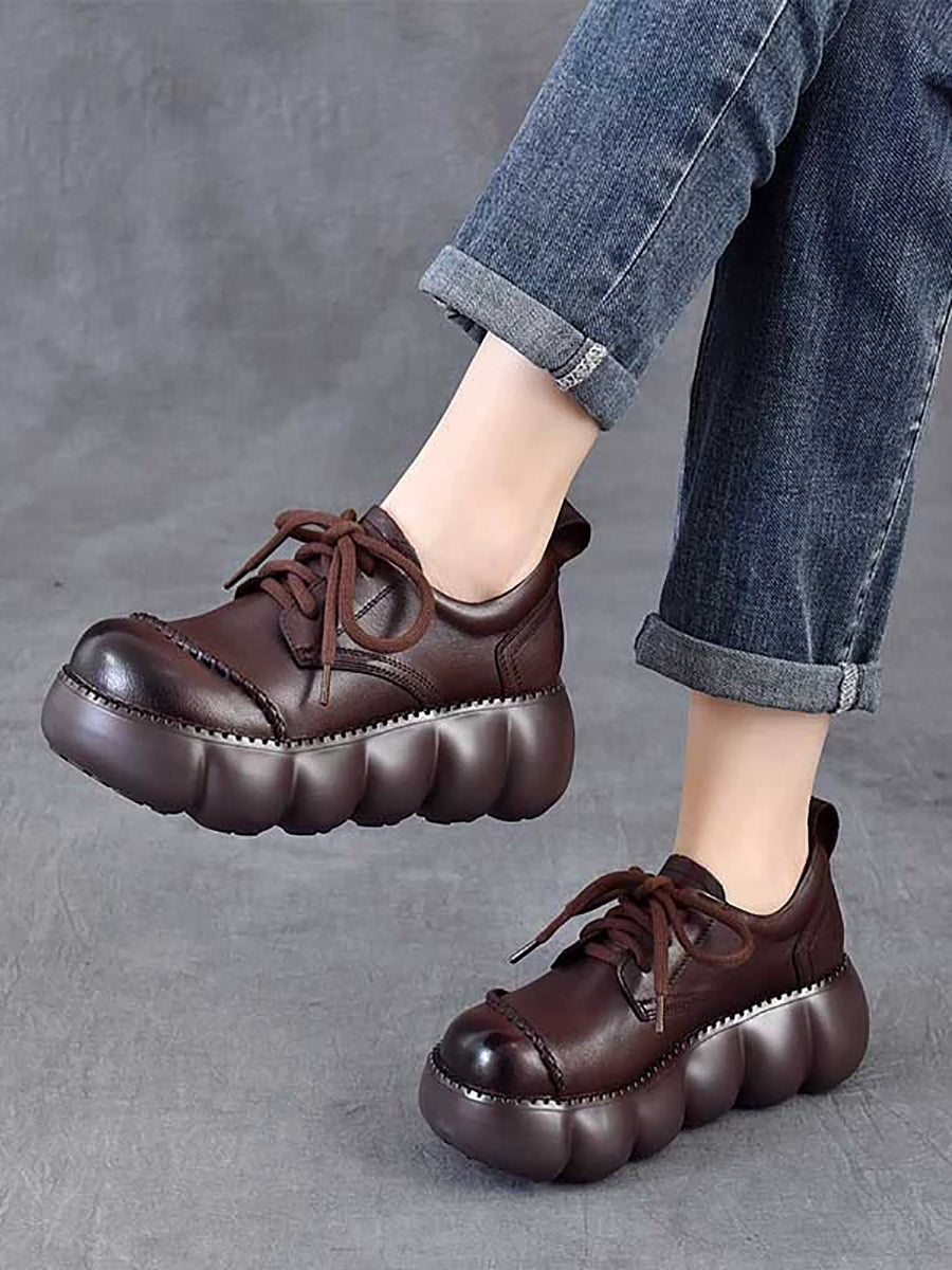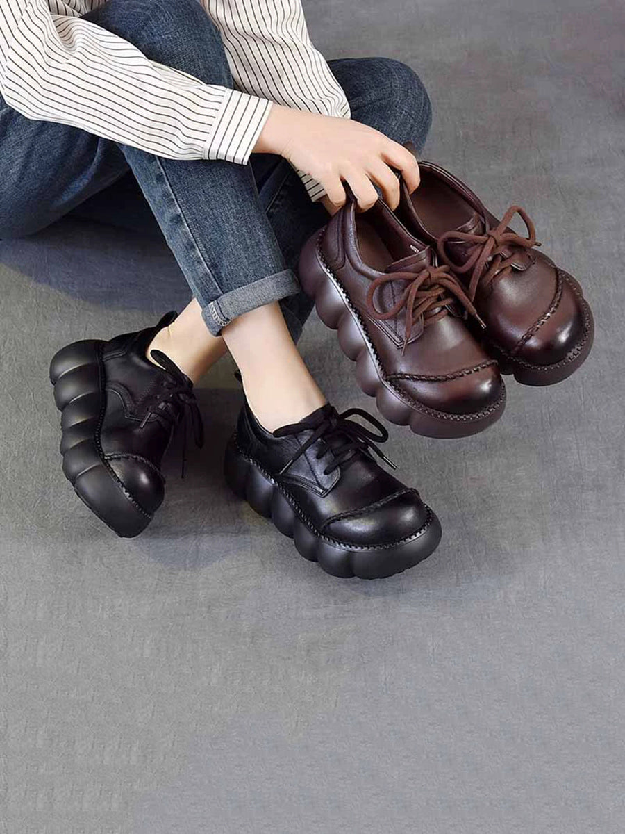 Zapatos de plataforma de piel auténtica estilo retro de primavera para mujer