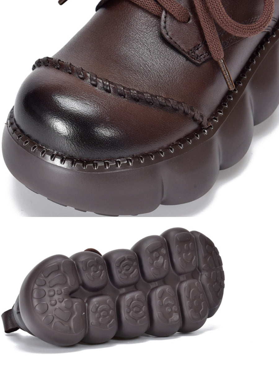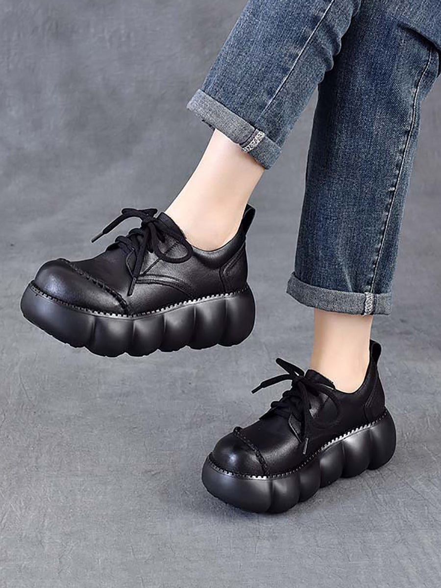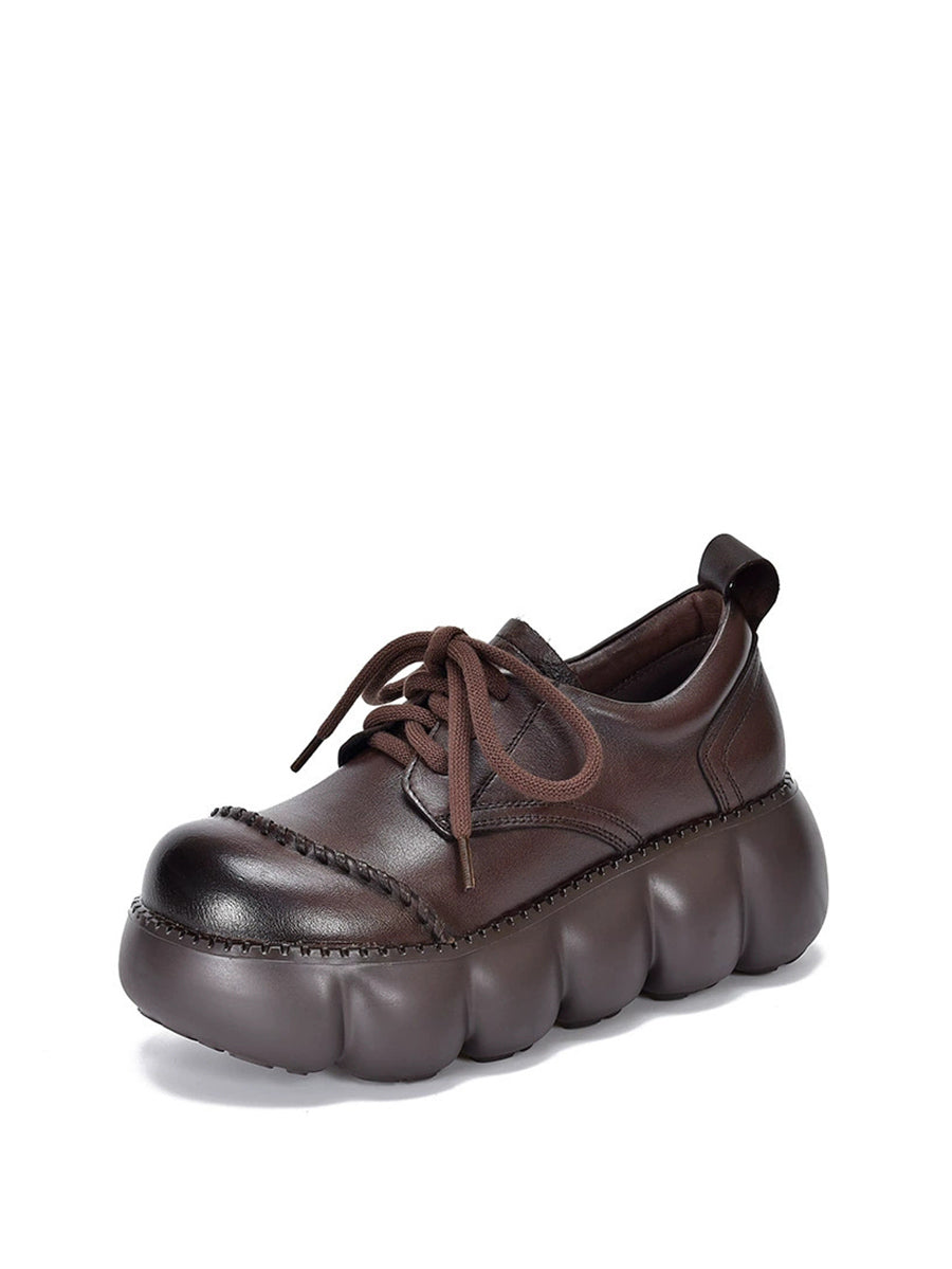 Zapatos de plataforma de piel auténtica estilo retro de primavera para mujer