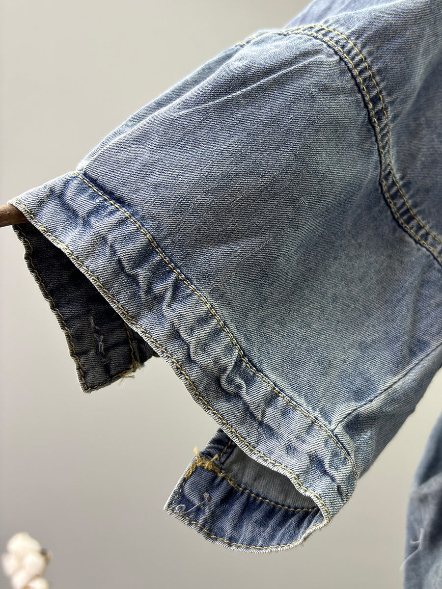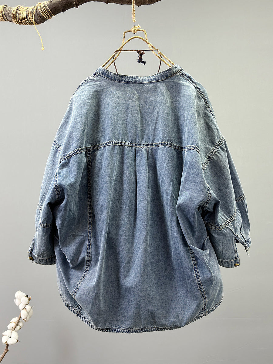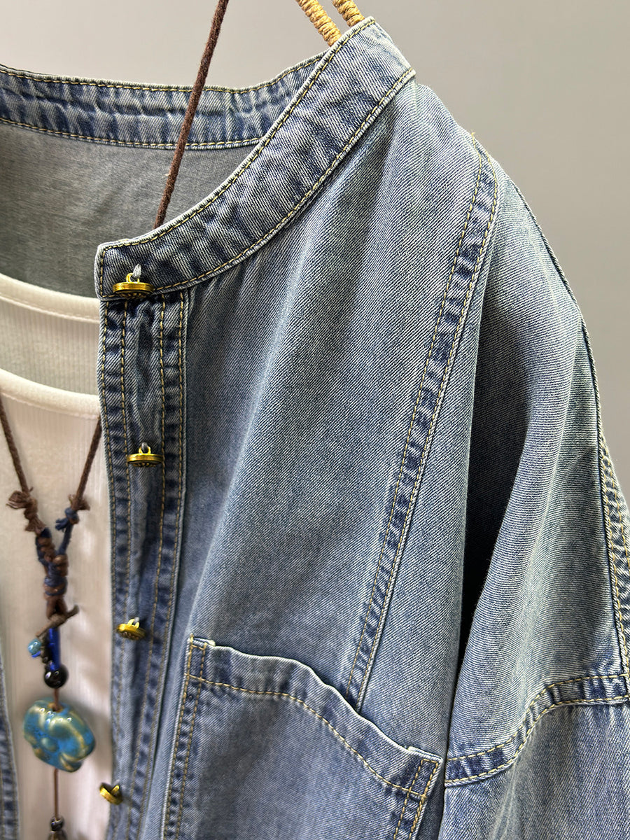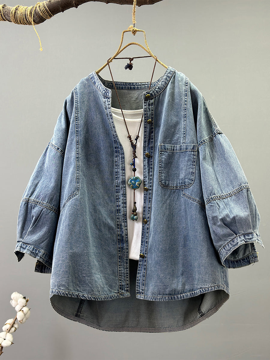 Chaqueta vaquera de cuello redondo de color liso estilo retro para mujer, ideal para primavera.