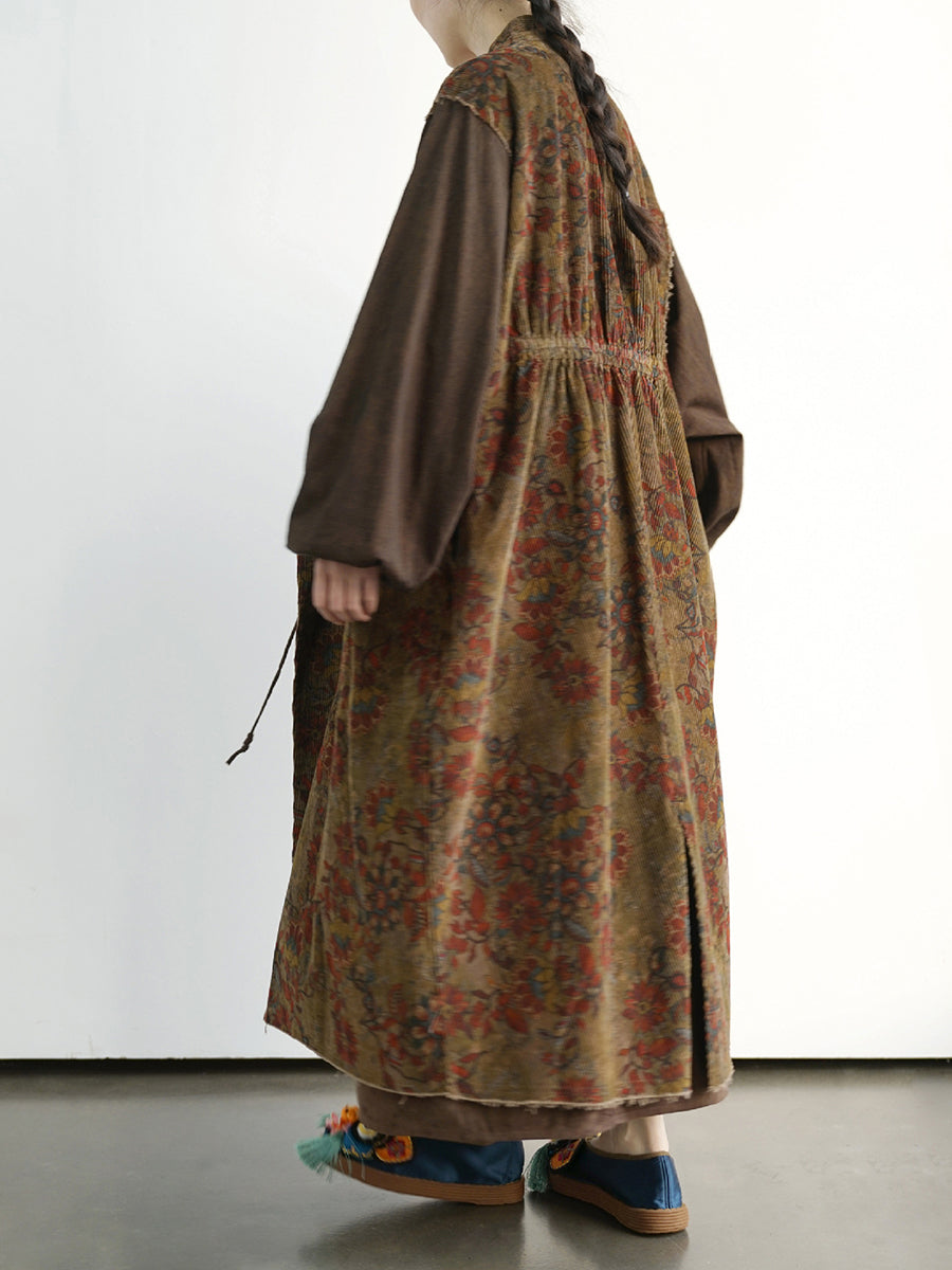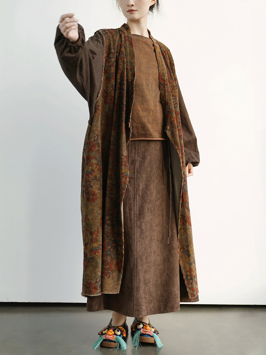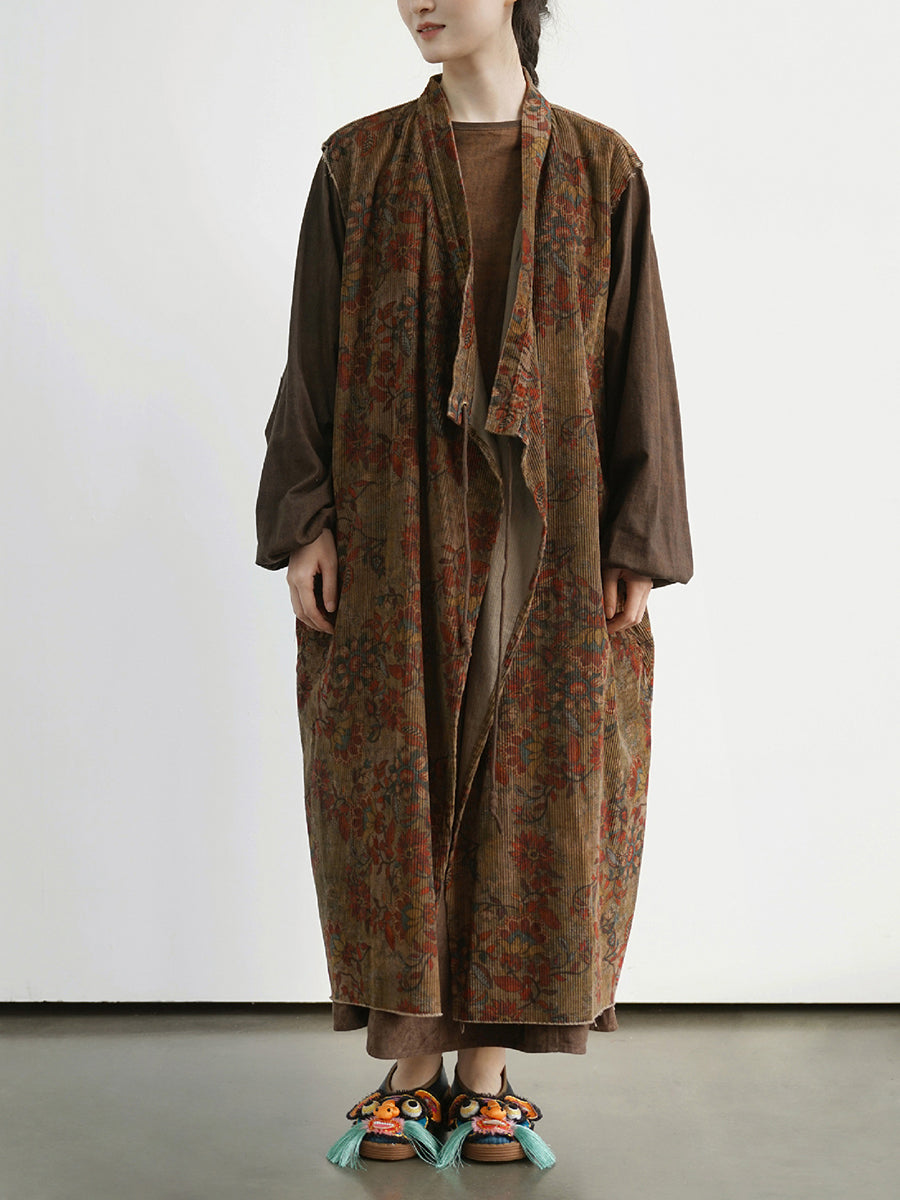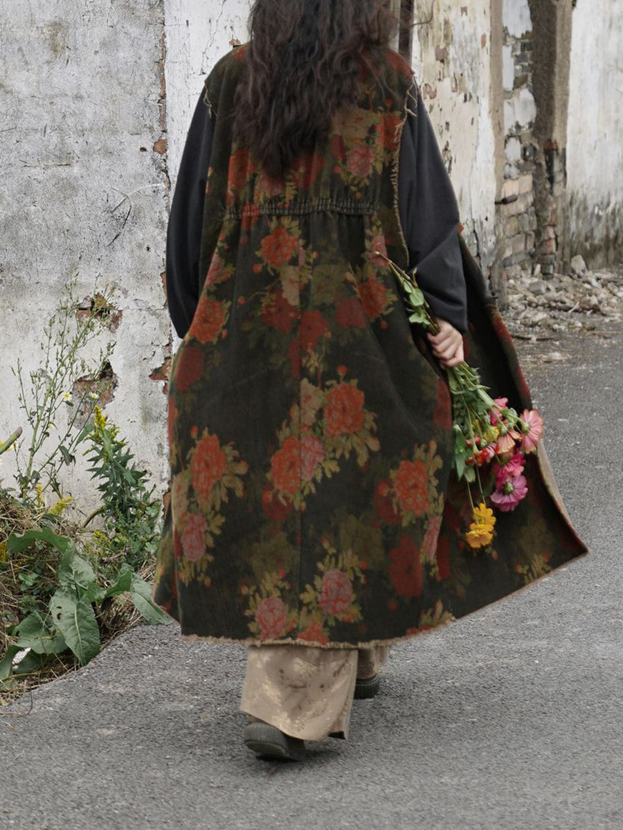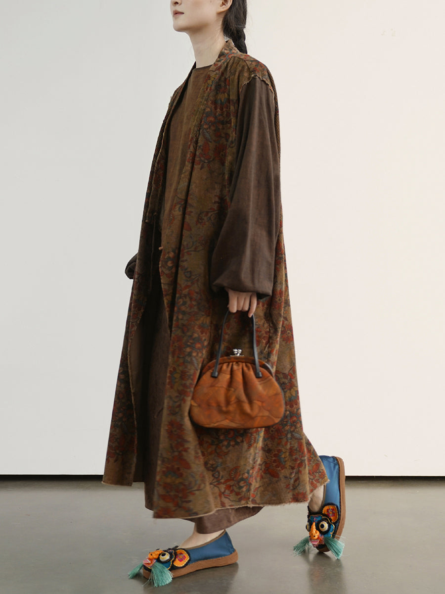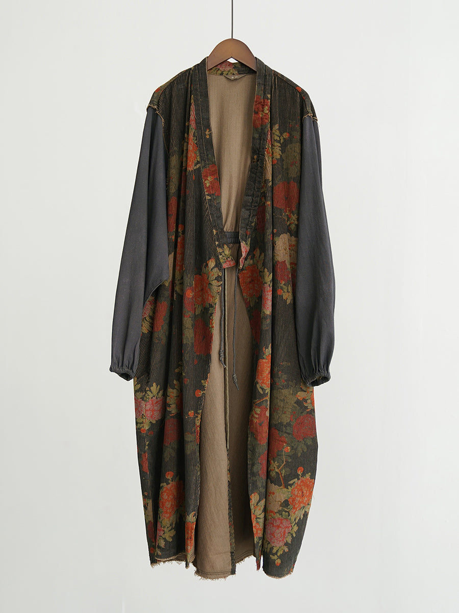 Abrigo largo de algodón con empalmes de flores vintage para mujer
