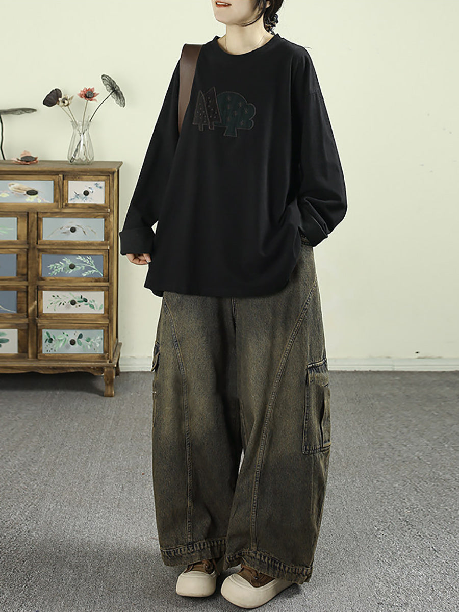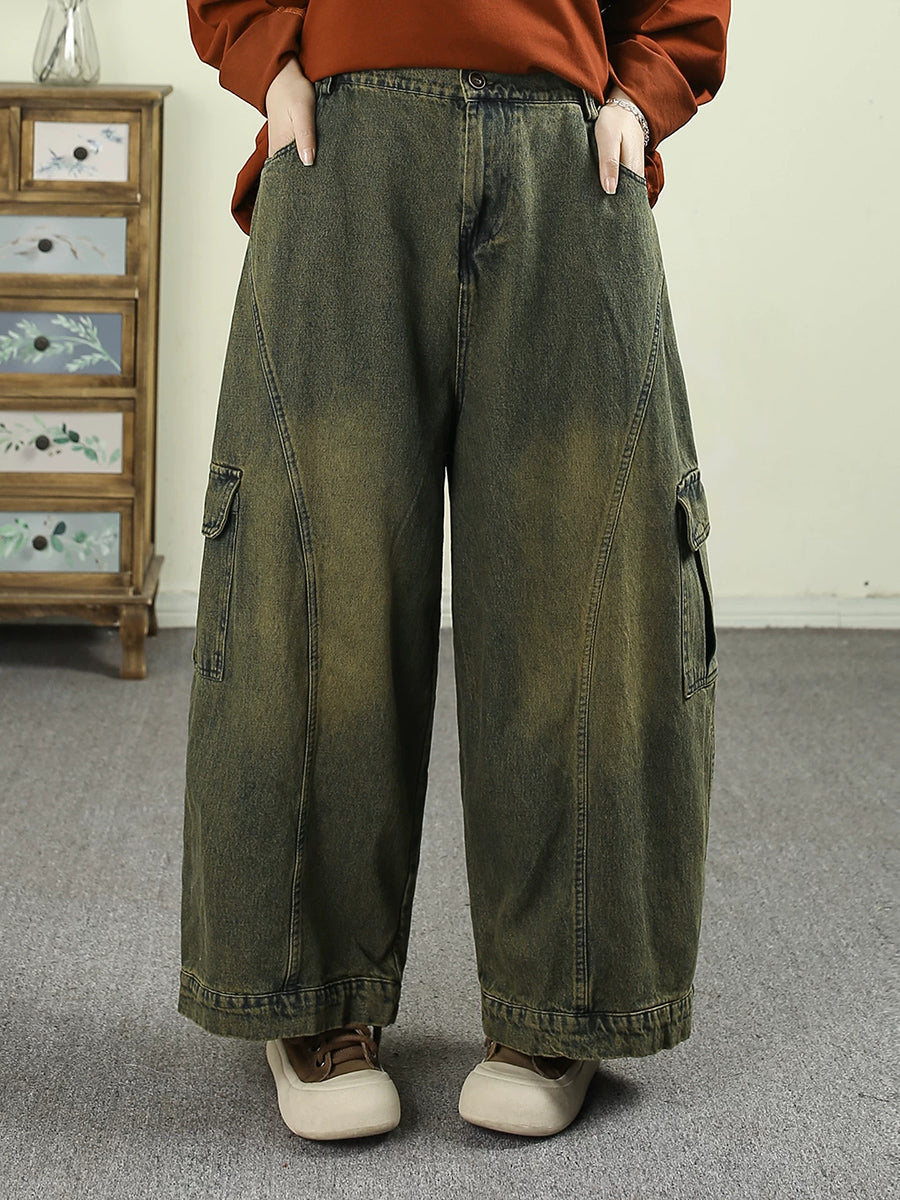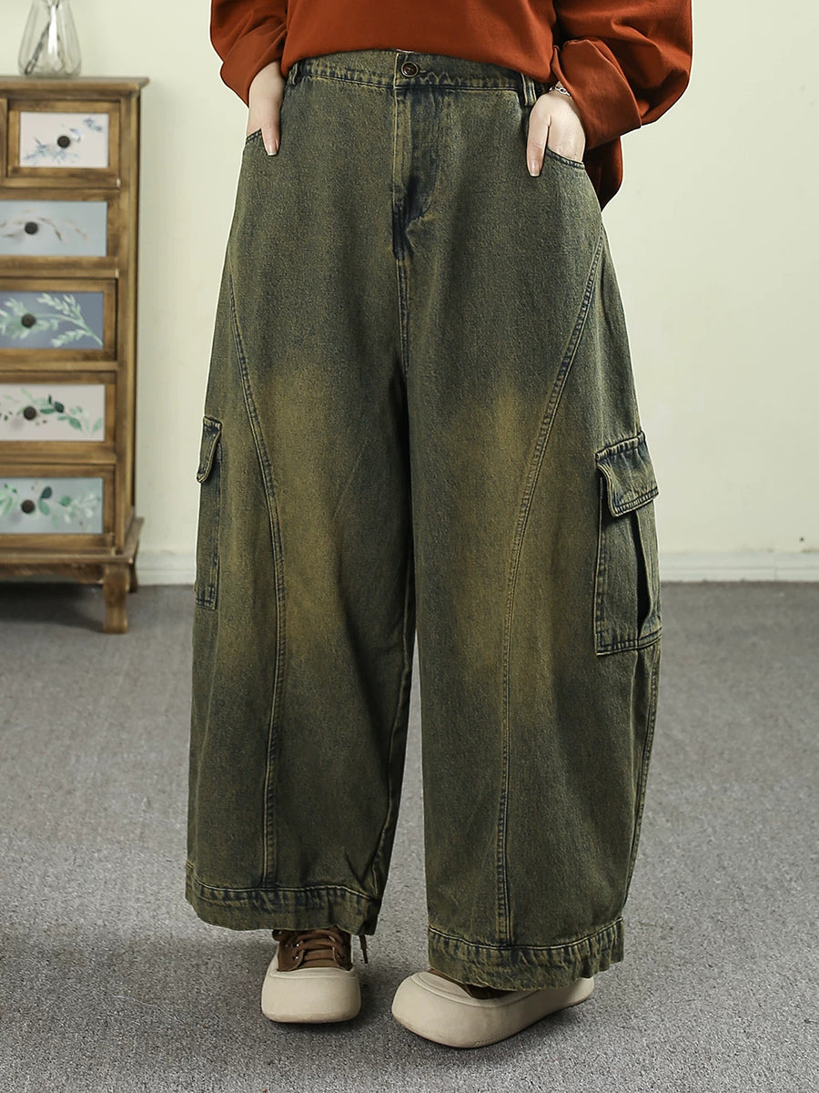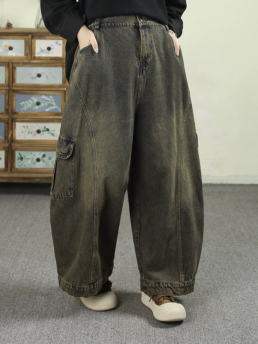 Pantalones harén de mezclilla lavada vintage de primavera para mujer
