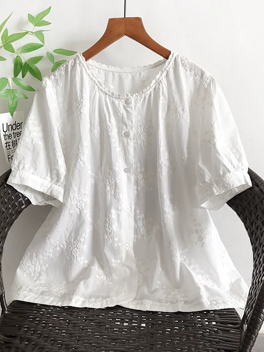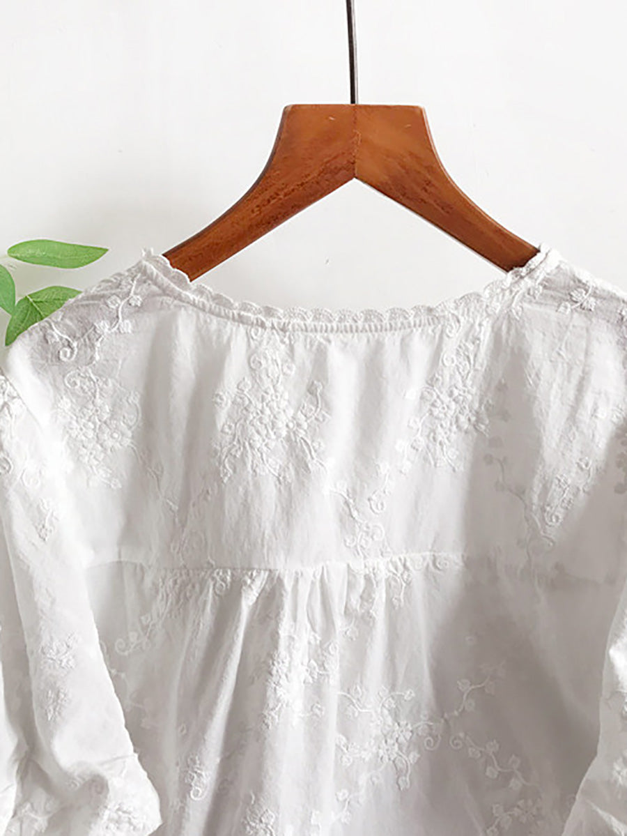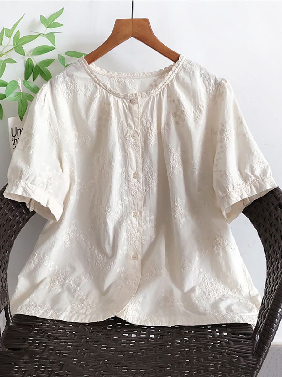 Blusa de verano para mujer con bordado artístico 100% algodón.