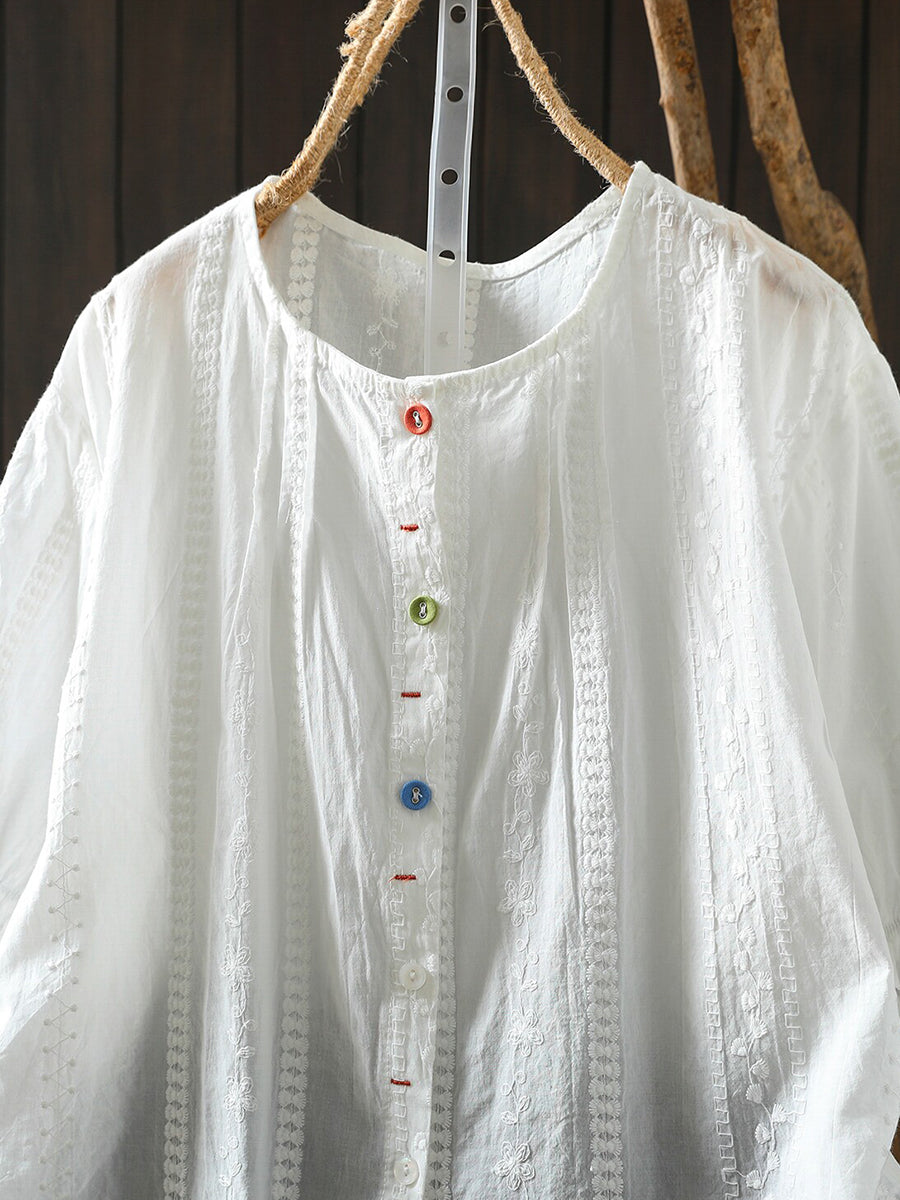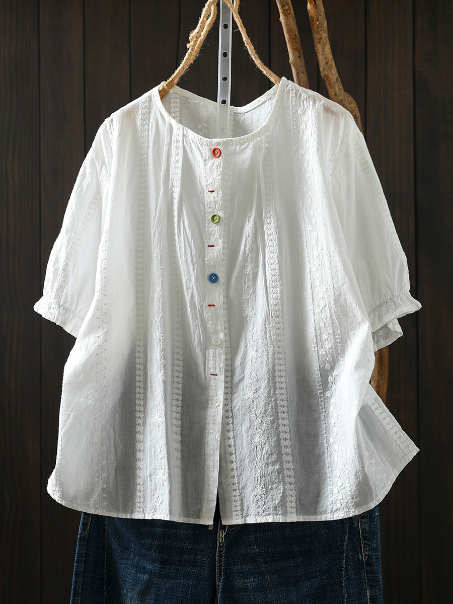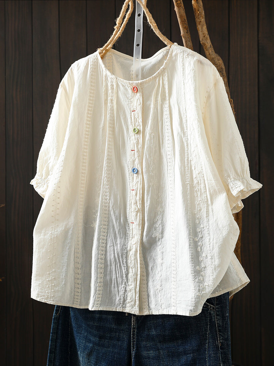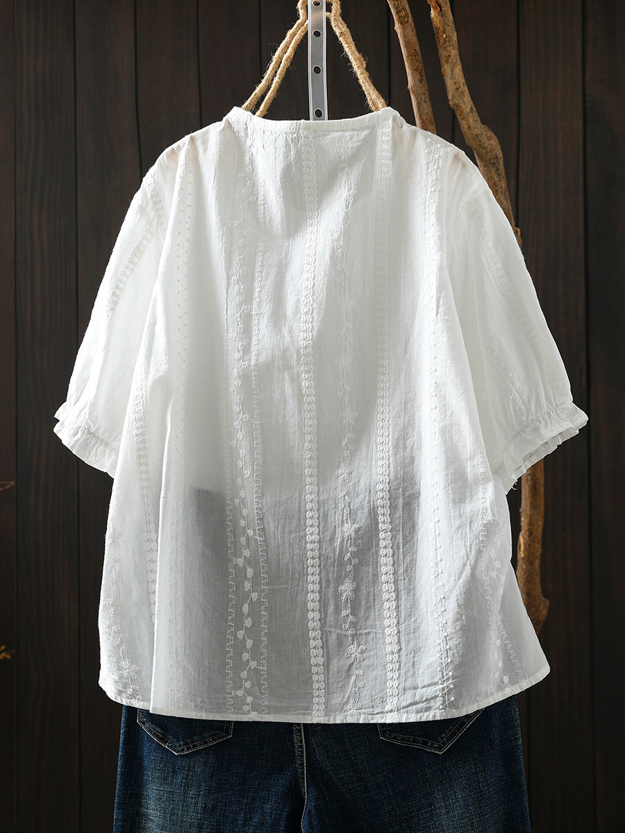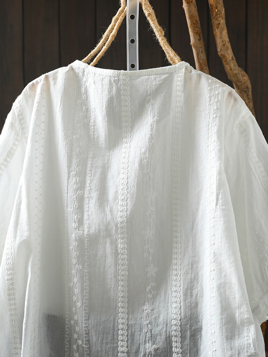 Camiseta de verano para mujer con bordado artístico, 100% algodón, cuello redondo.
