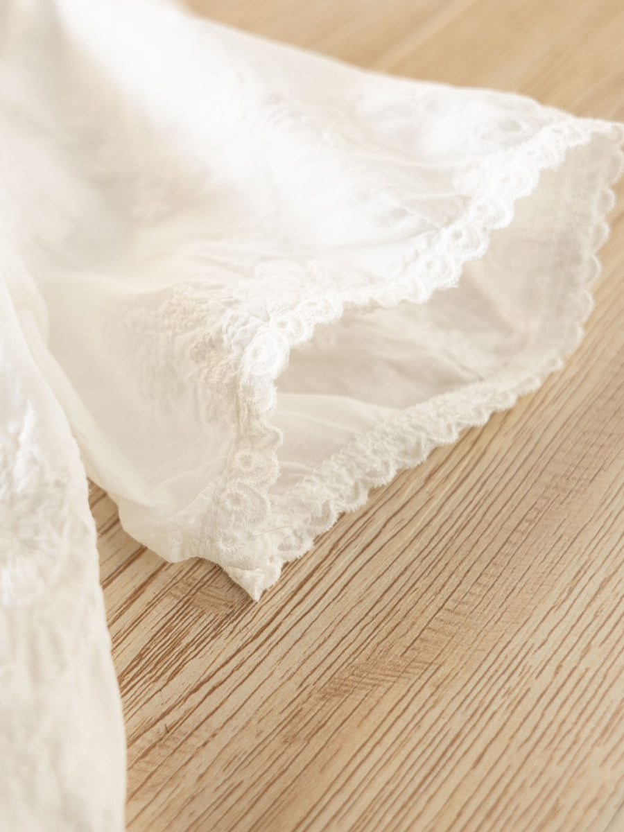 Blusa de verano para mujer con cuello redondo y bordado artístico, 100% algodón.