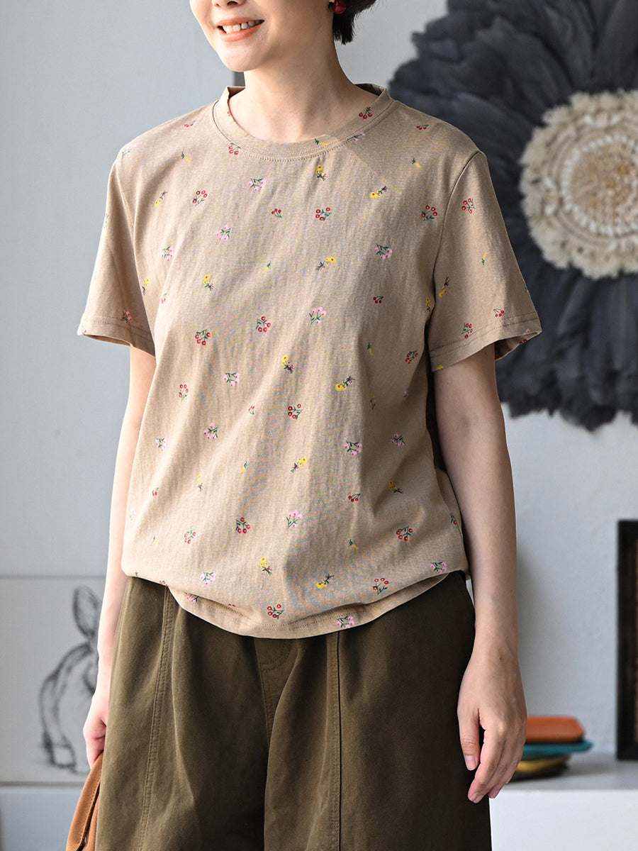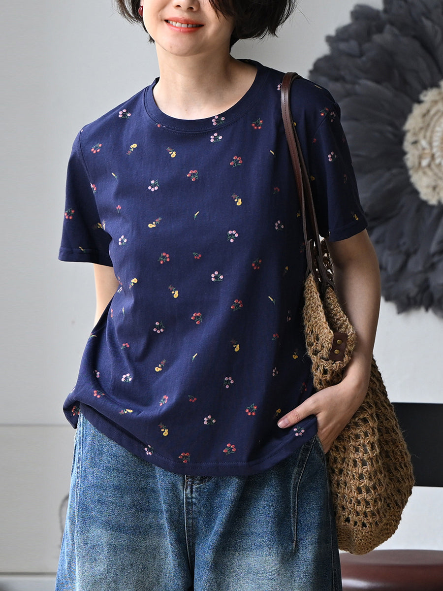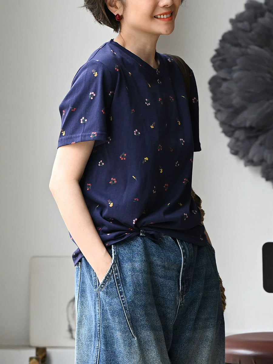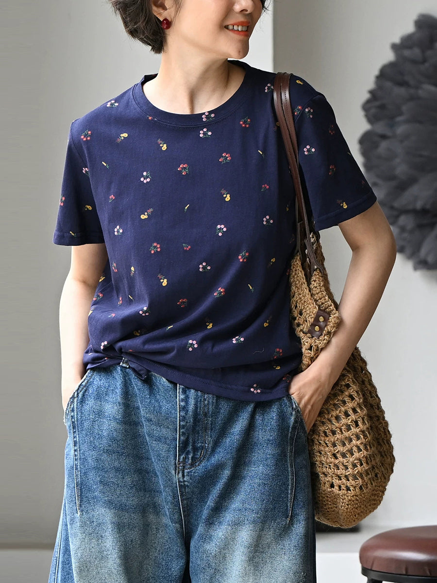 Camiseta de verano para mujer con estampado floral artístico 100% algodón