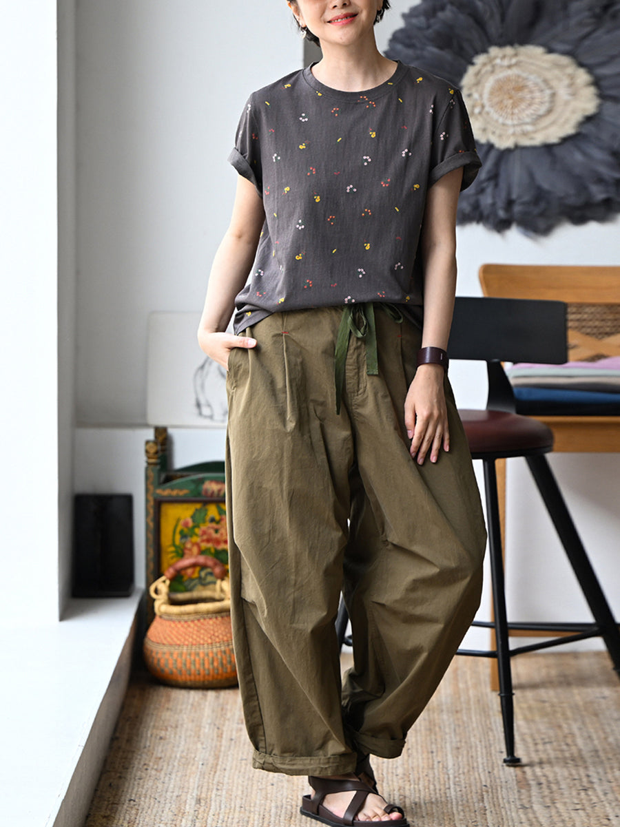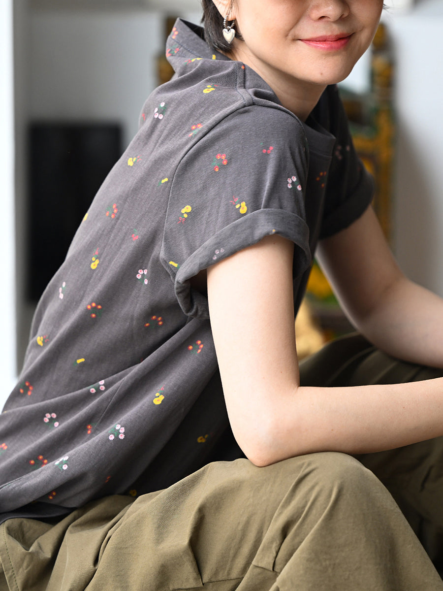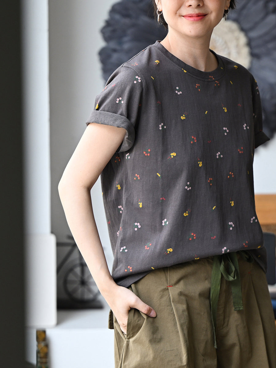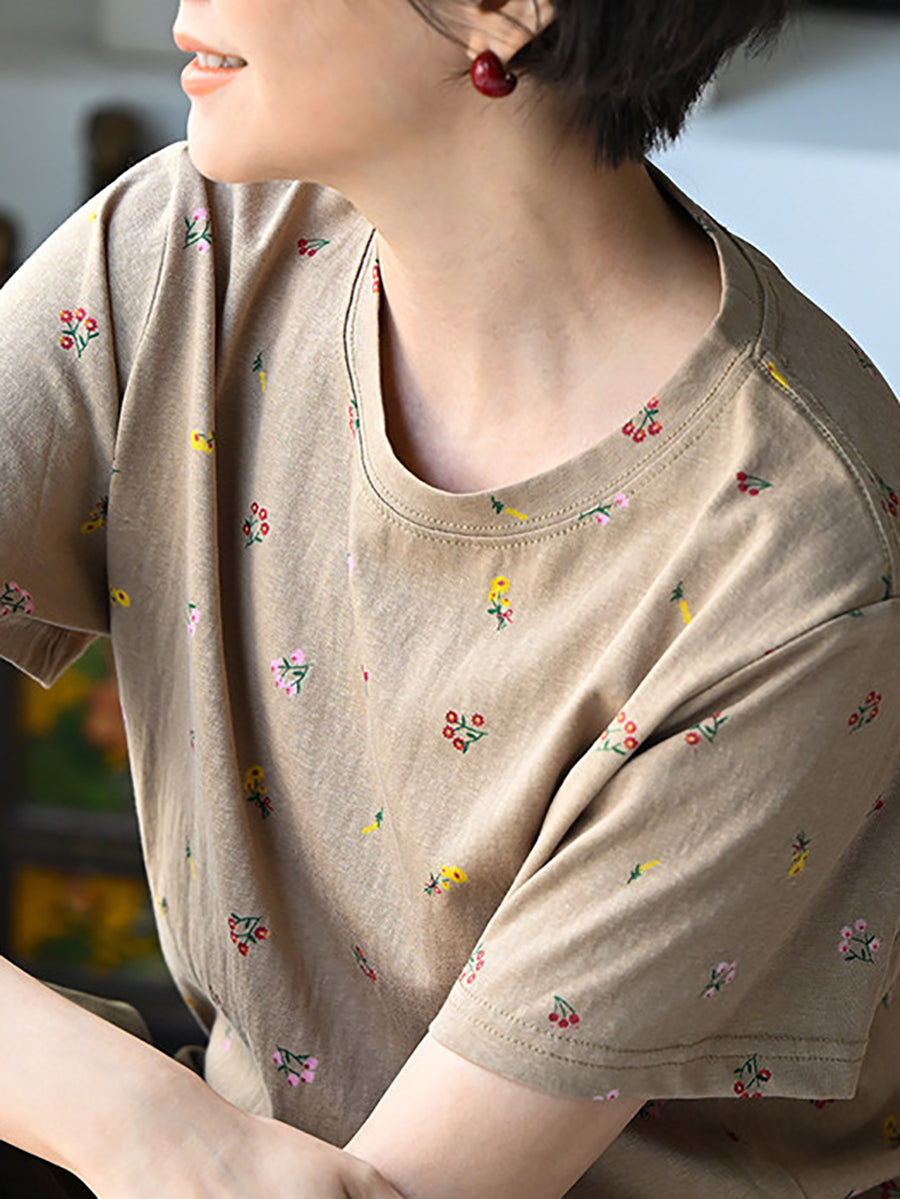 Camiseta de verano para mujer con estampado floral artístico 100% algodón
