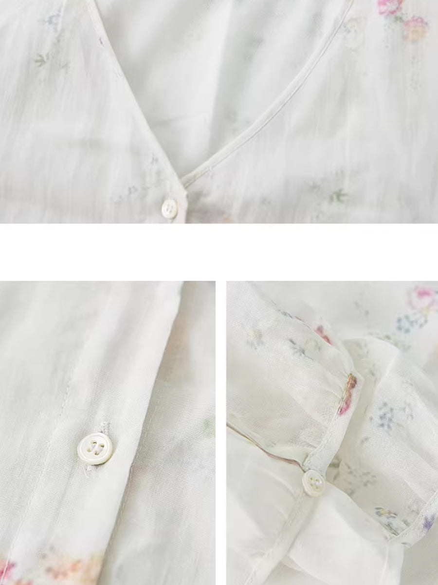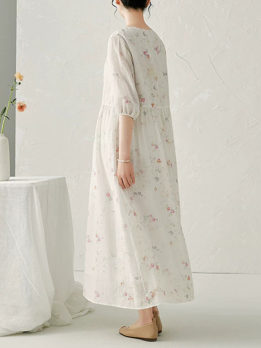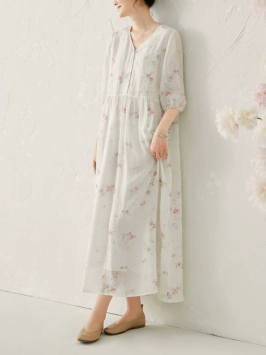 Vestido de verano con cuello en V y estampado floral de ramio para mujer