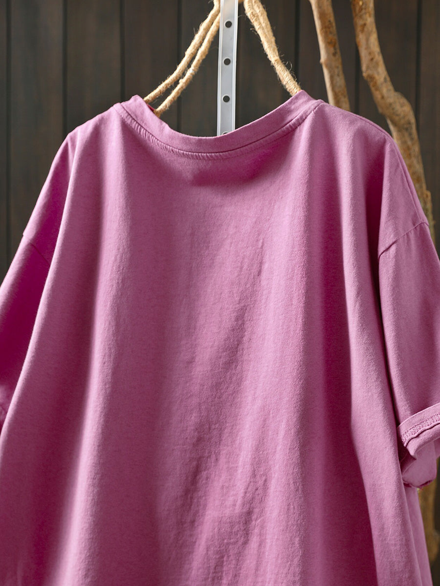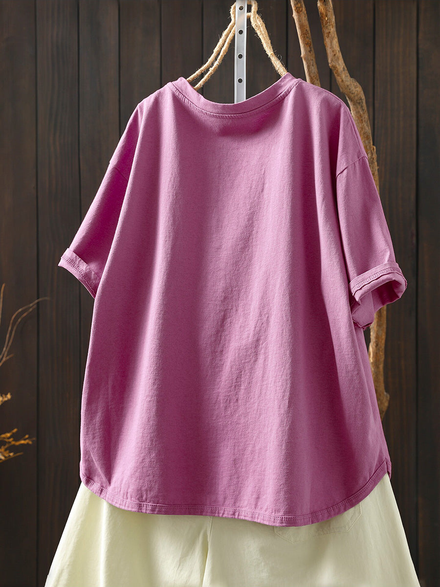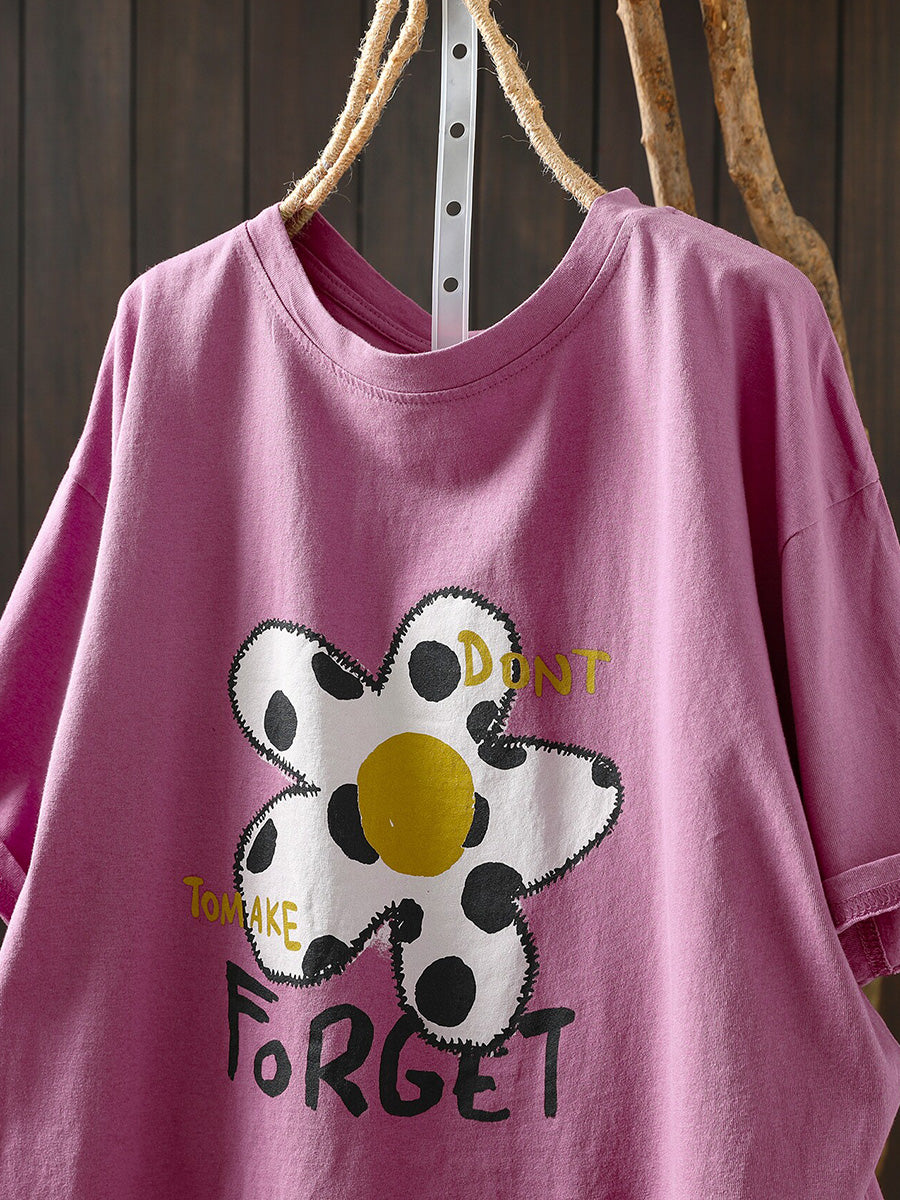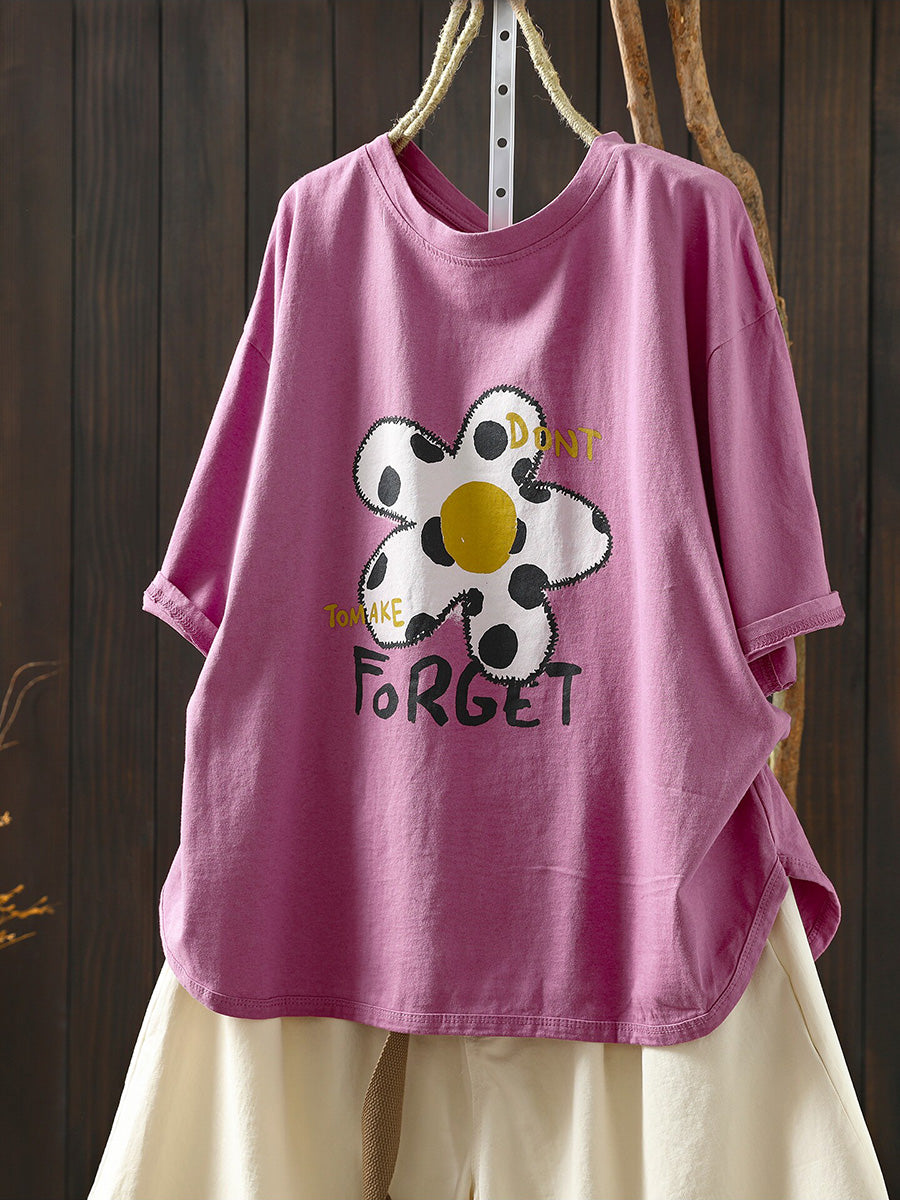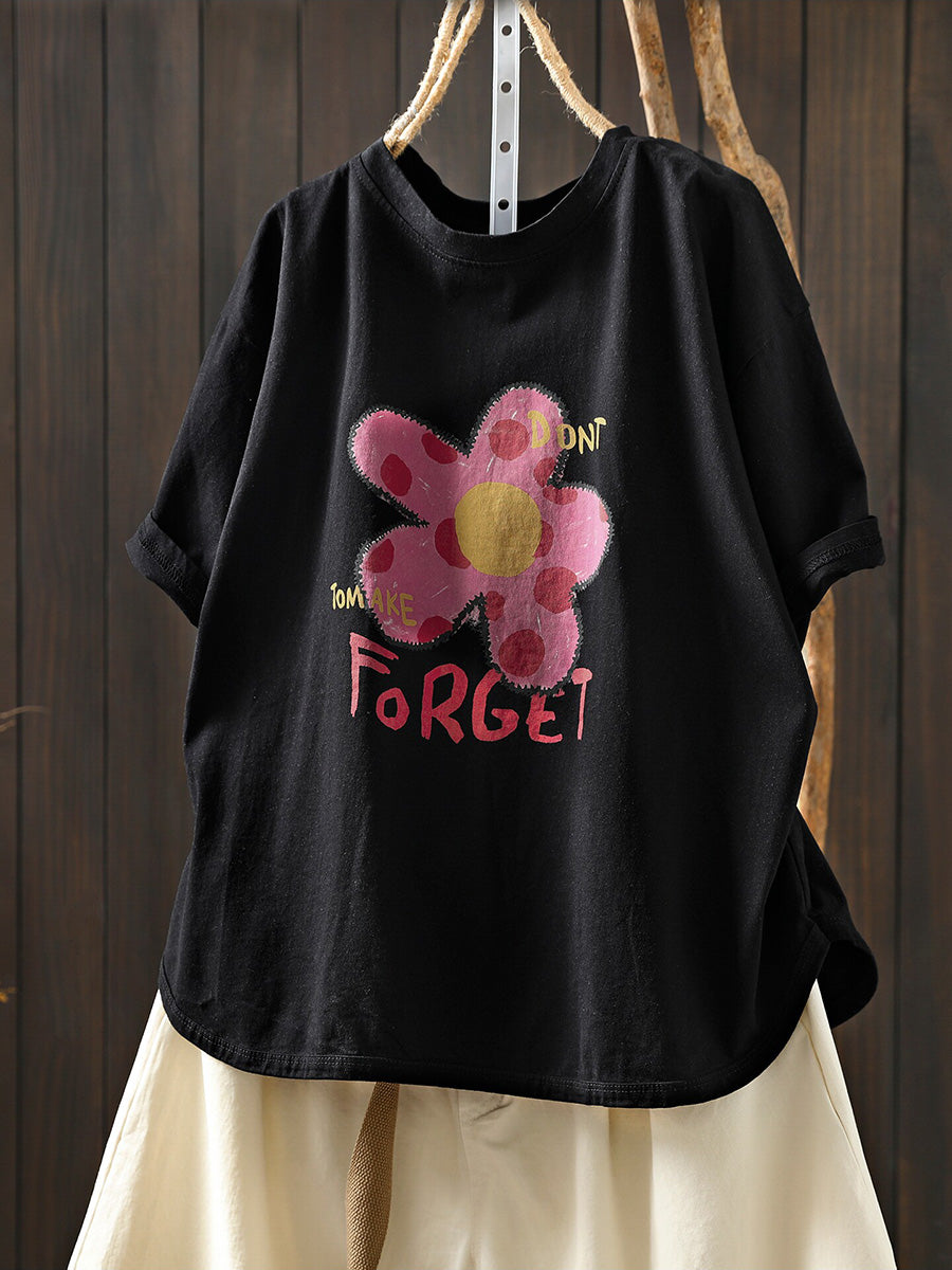 Camiseta de algodón de cuello redondo con estampado floral artístico para mujer, ideal para el verano.