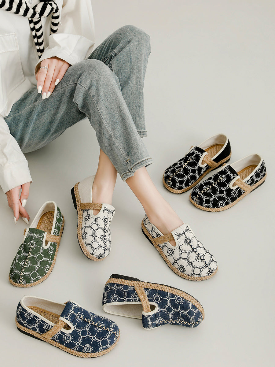 Zapatos de verano con flores artísticas para mujer