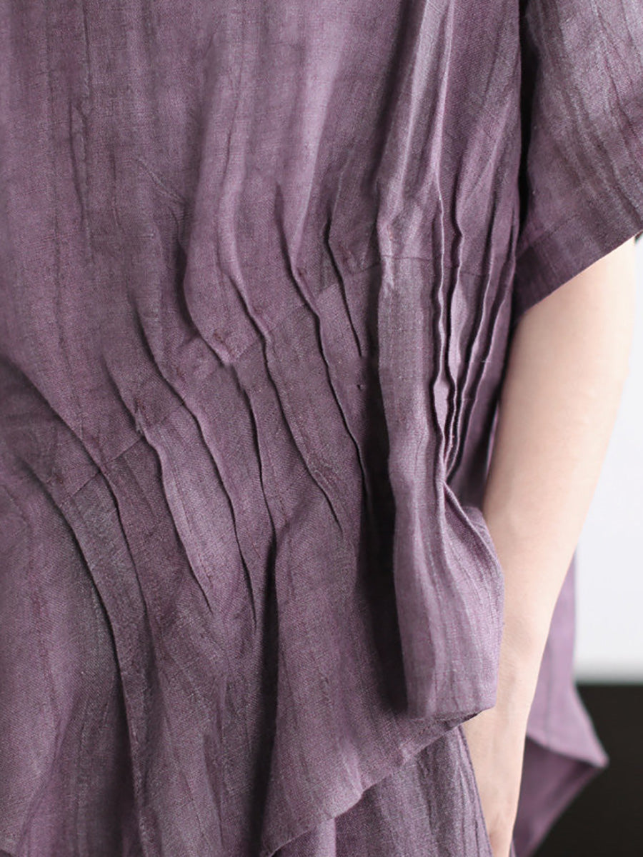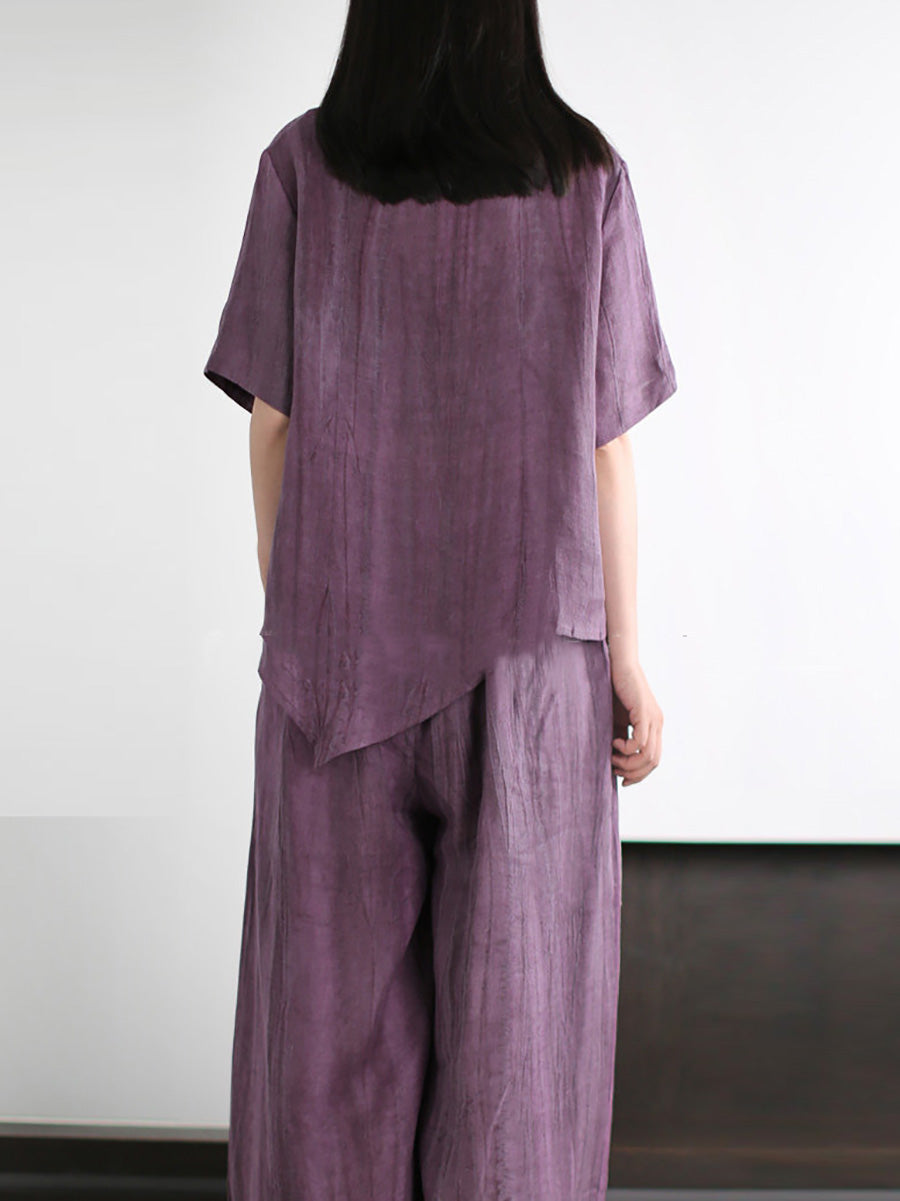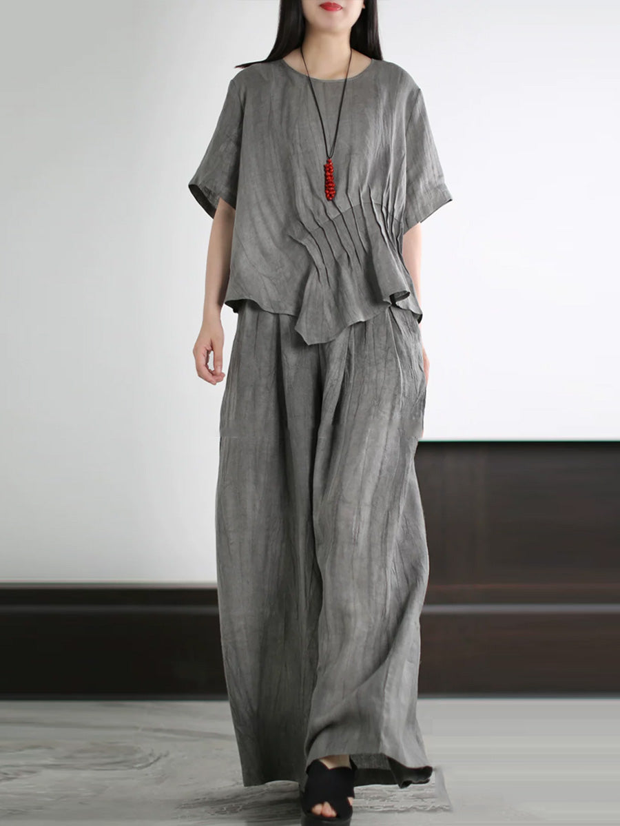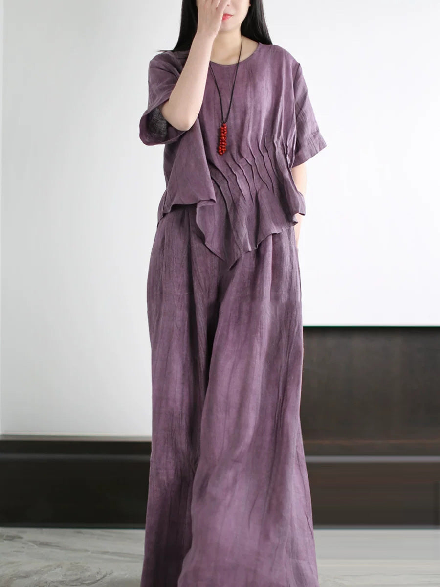 Trajes de verano para mujer de lino de color liso con cuello redondo.