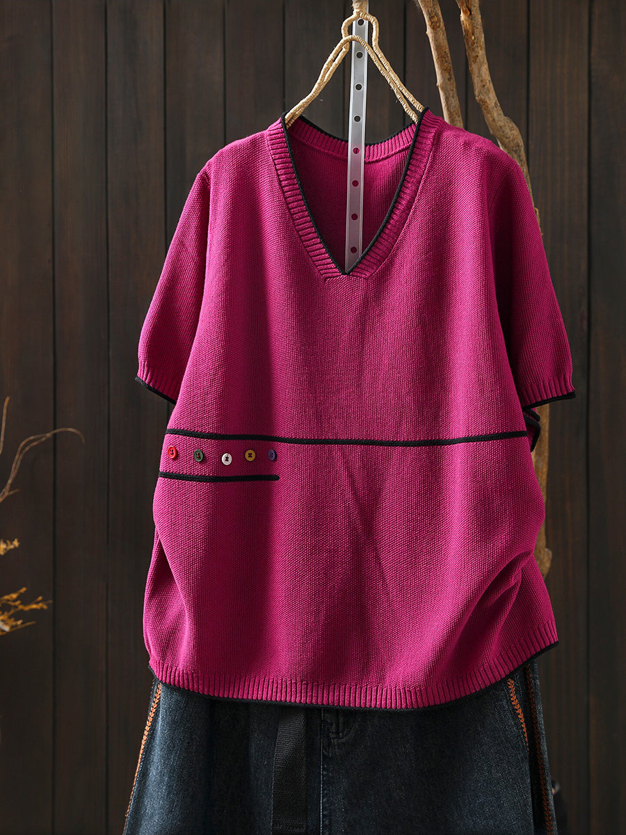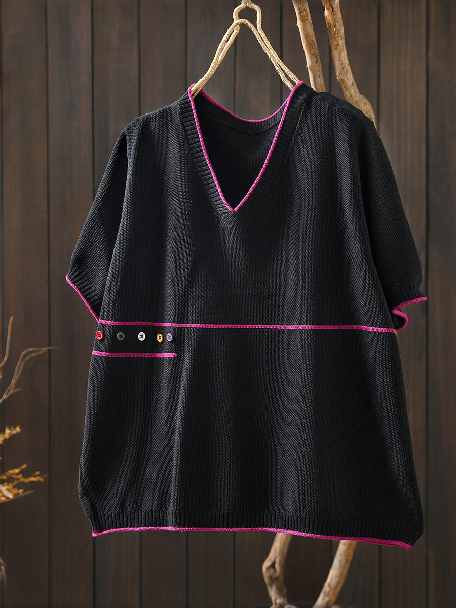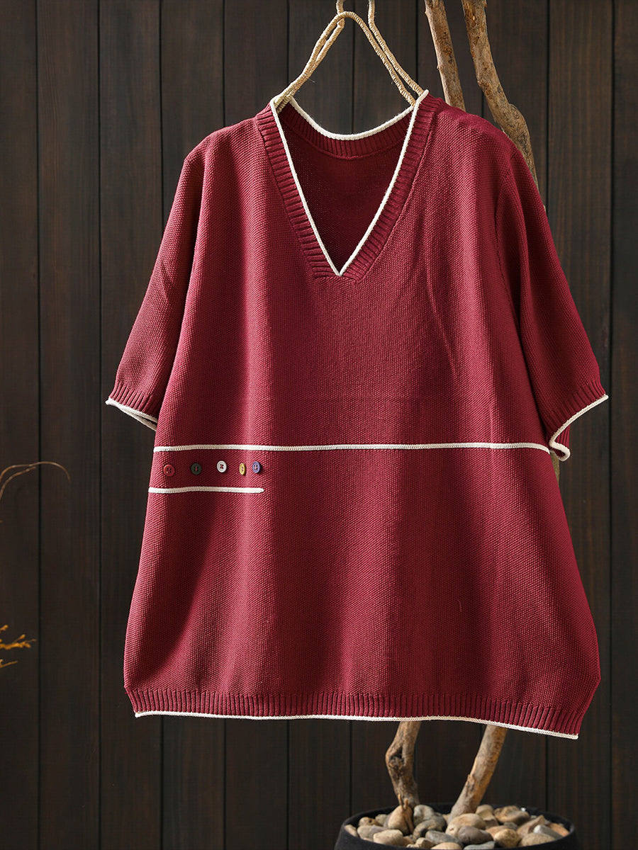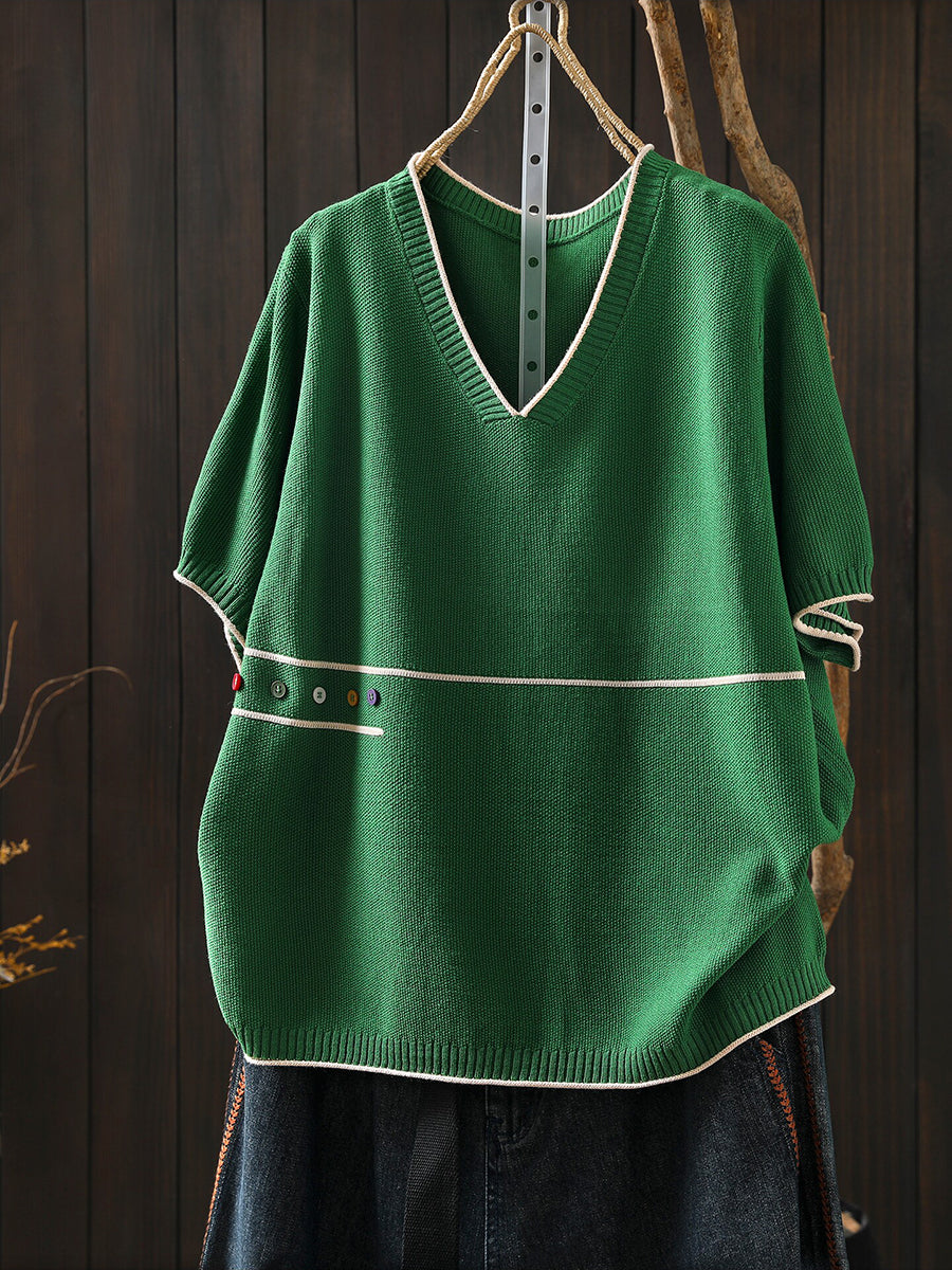 Blusa de punto con cuello en V de estilo artístico para mujer, ideal para el verano.