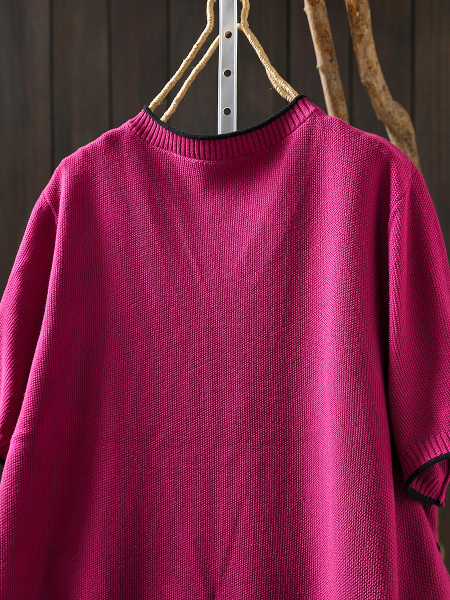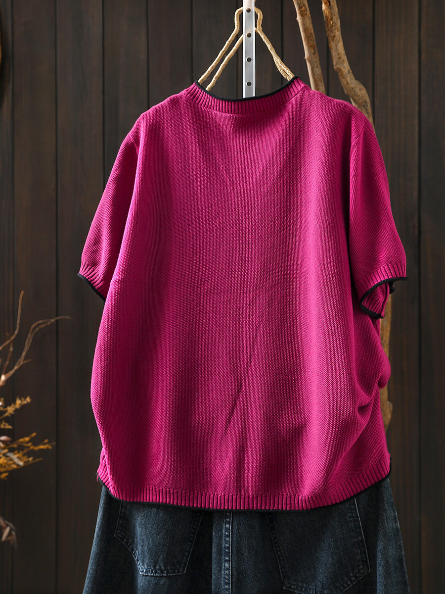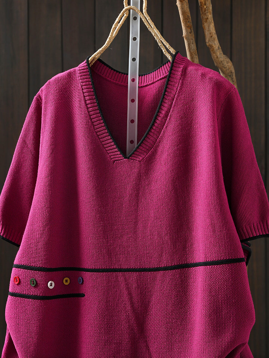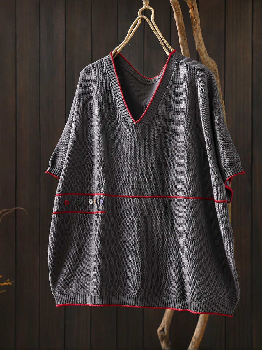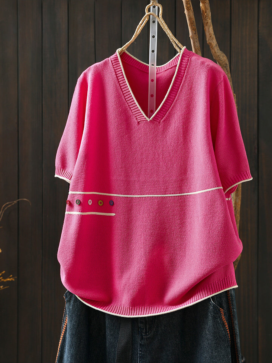 Blusa de punto con cuello en V de estilo artístico para mujer, ideal para el verano.
