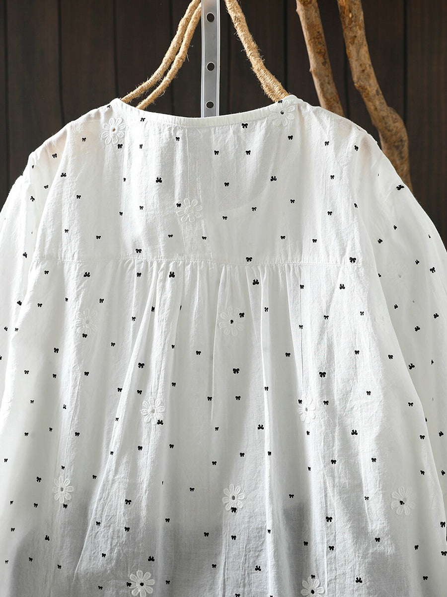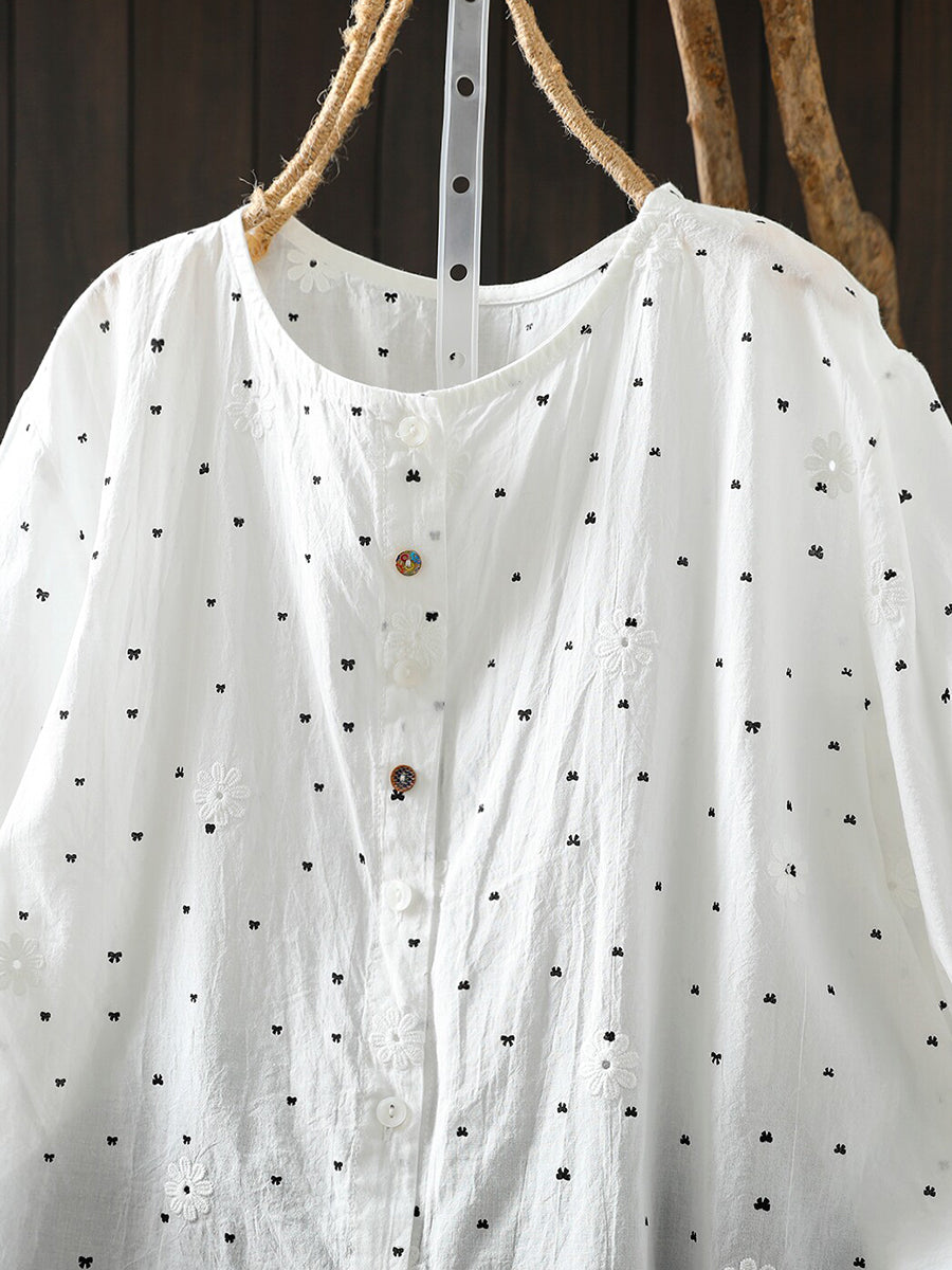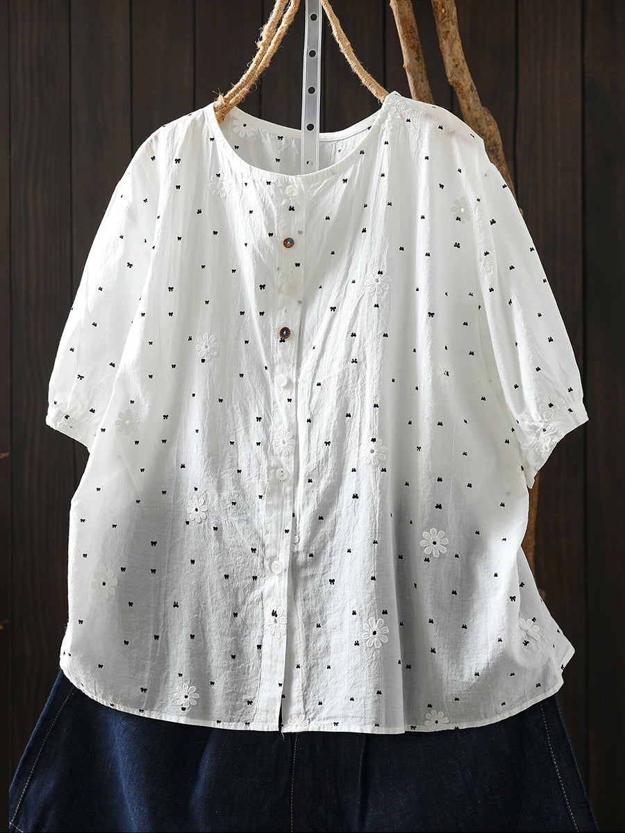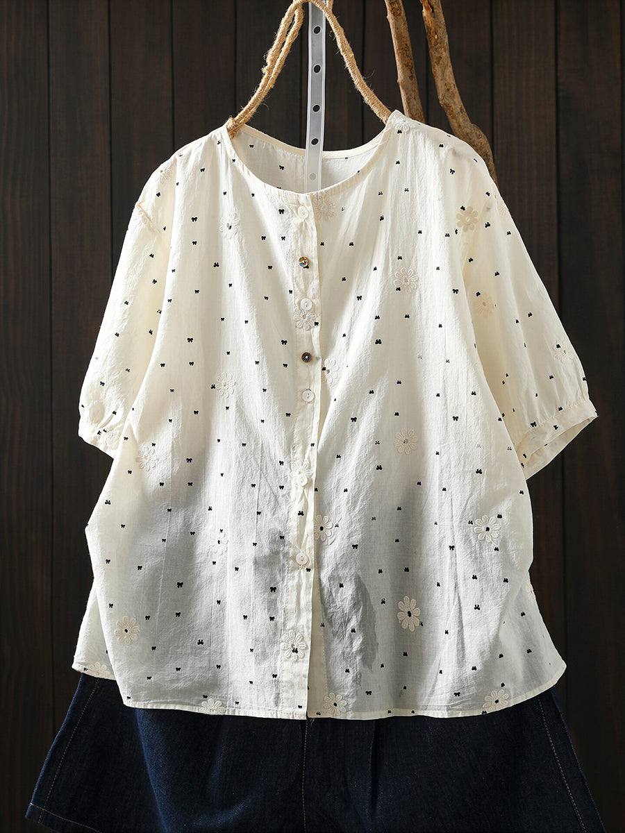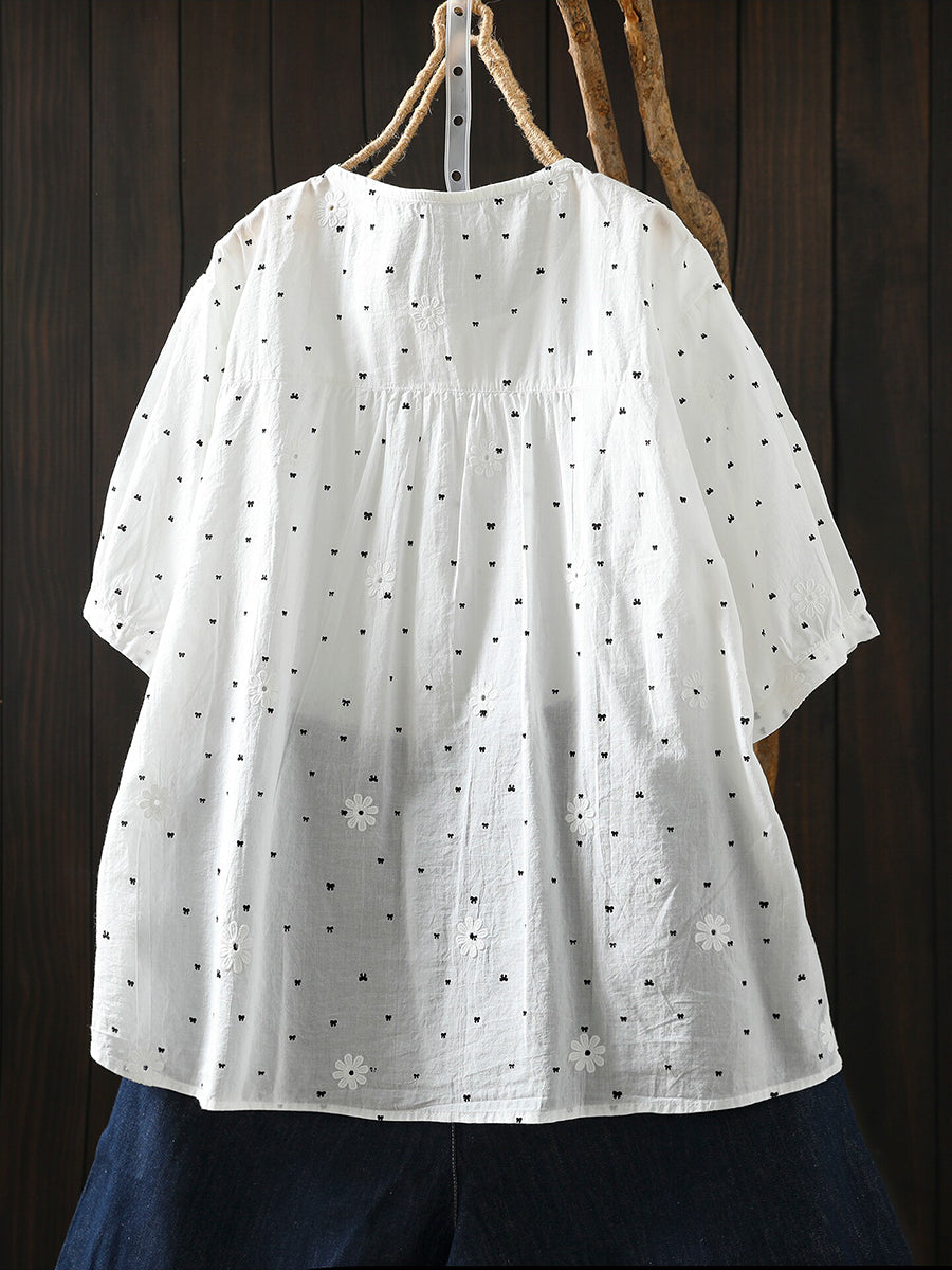 Camiseta de verano para mujer con bordado de lazo, 100% algodón.