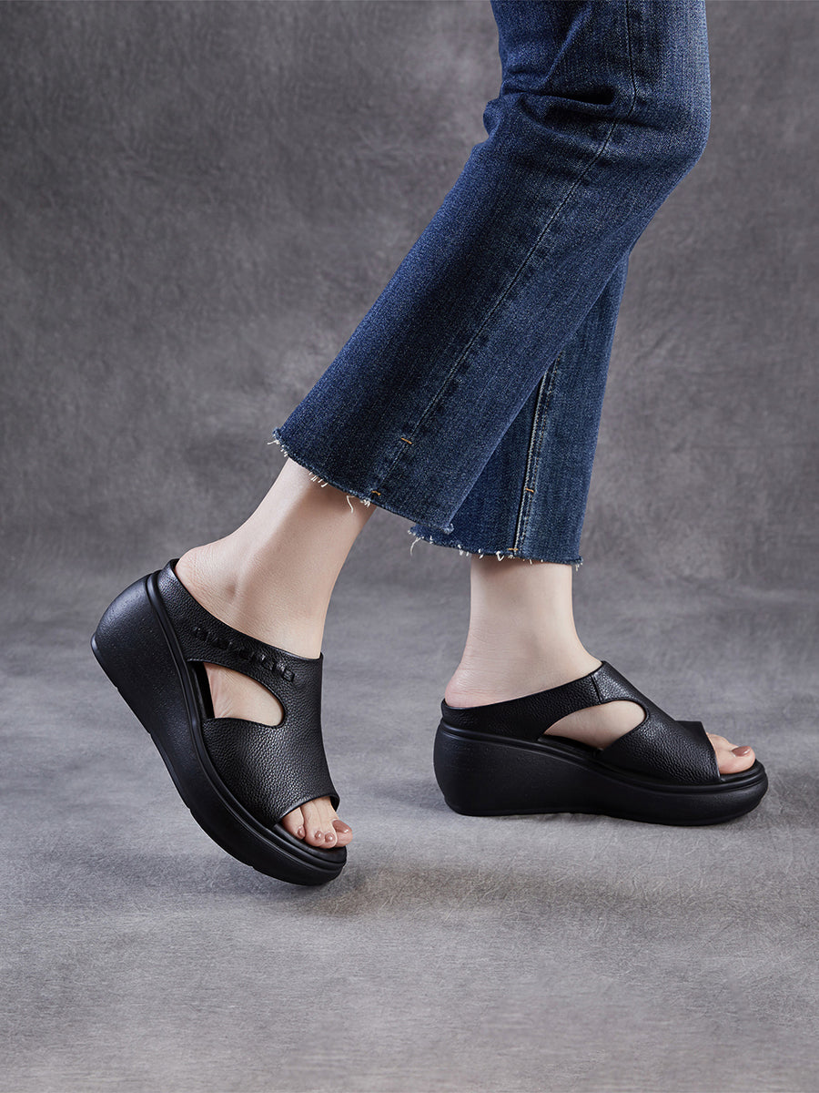 Sandalias de plataforma casuales de piel auténtica para mujer, ideales para el verano.