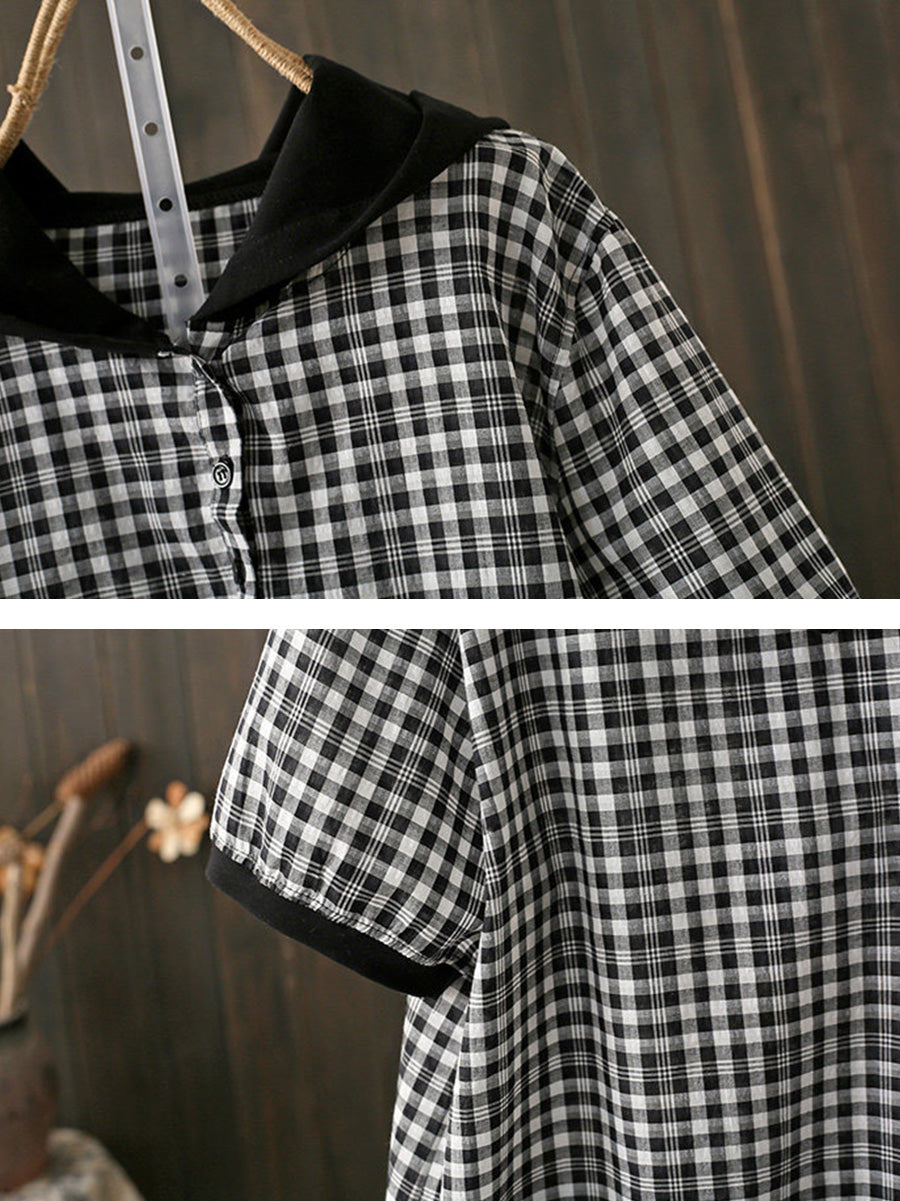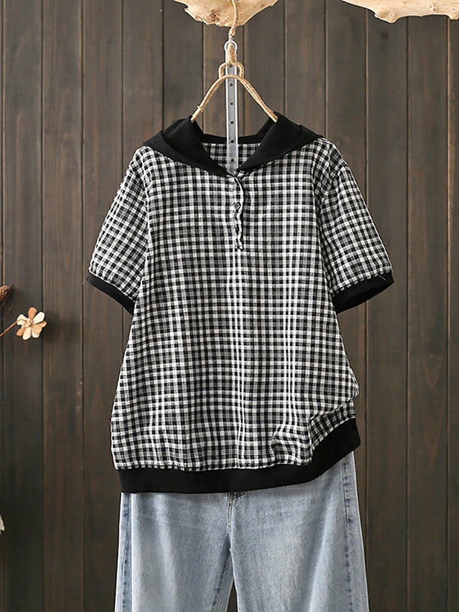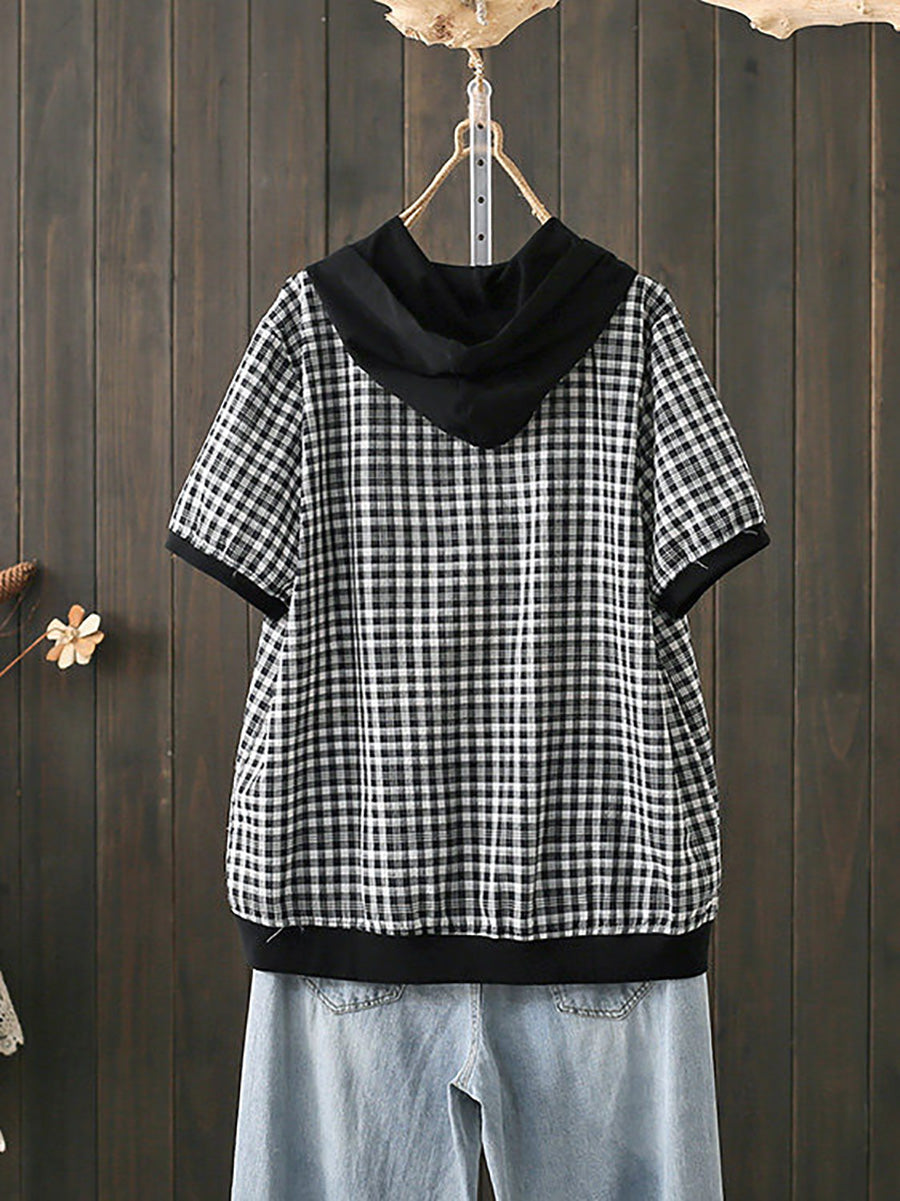Sudadera con capucha informal de verano para mujer, a cuadros, 100 % algodón.