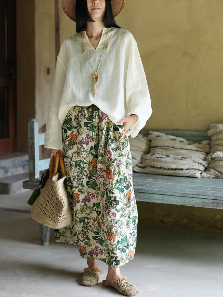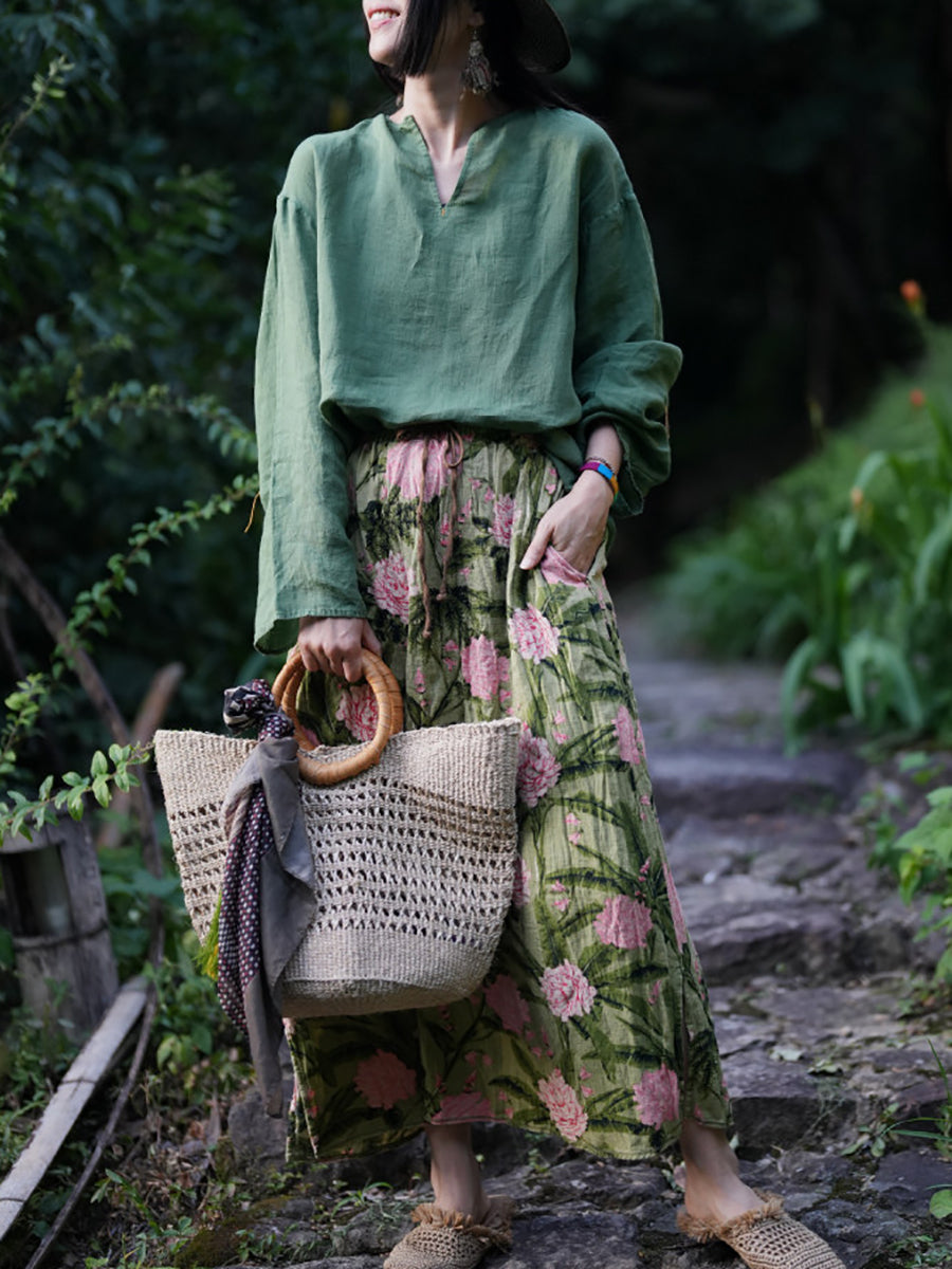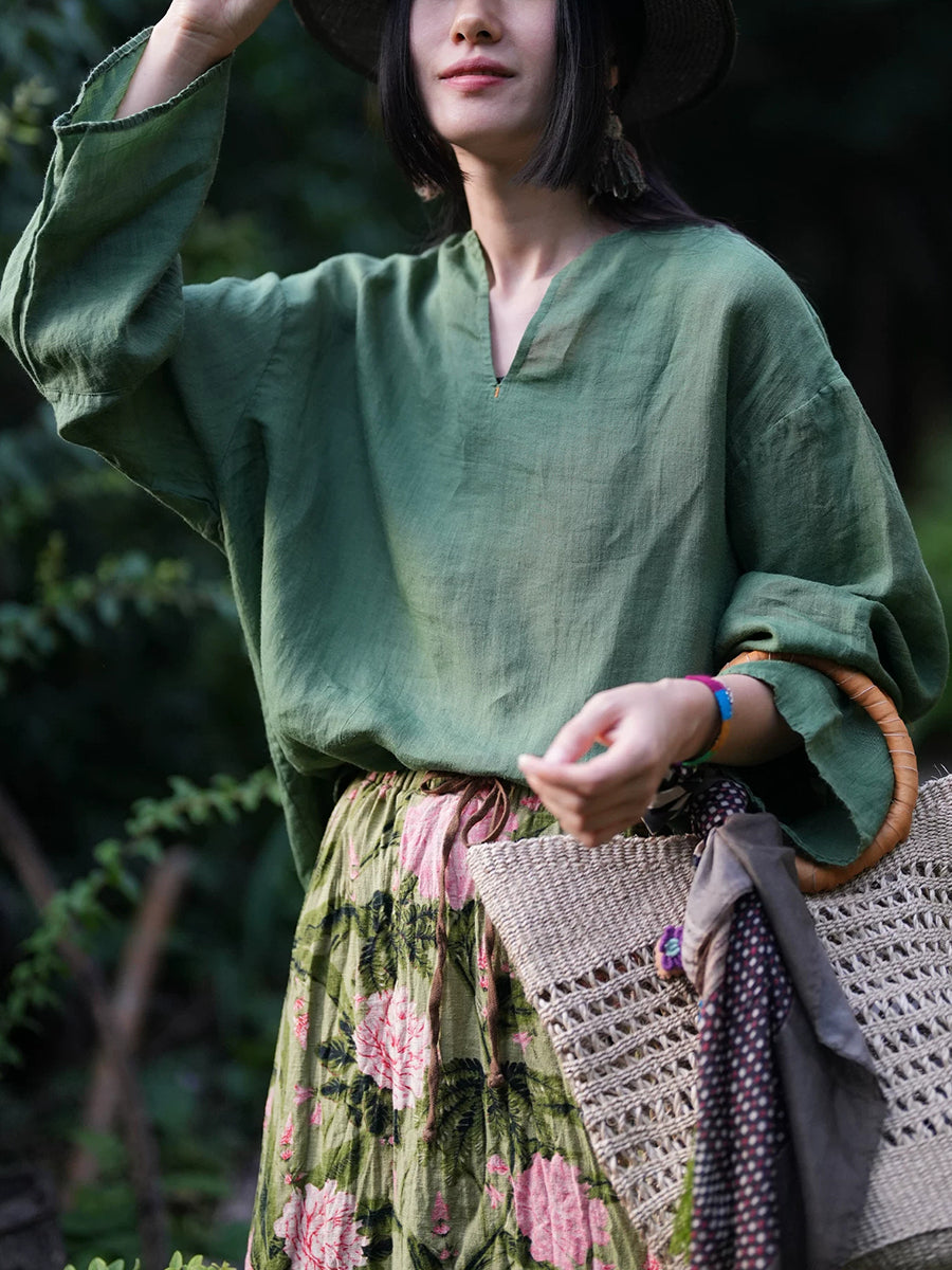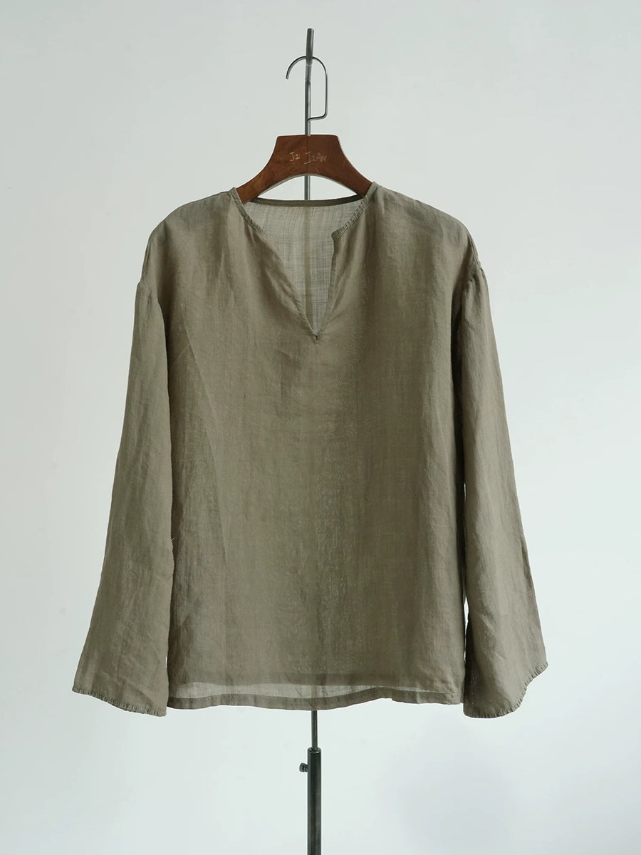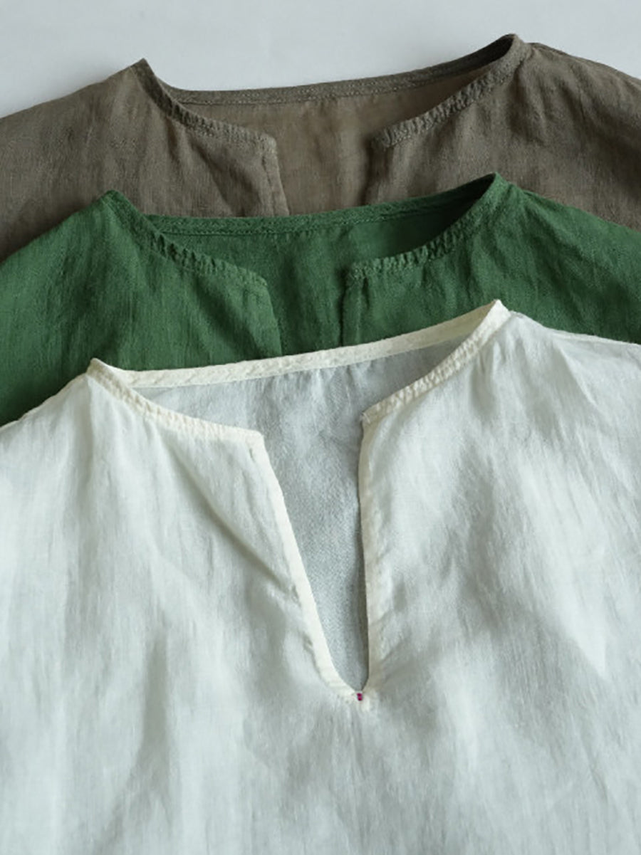 Blusa informal de verano para mujer, color puro, 100 % ramio, con cuello en V