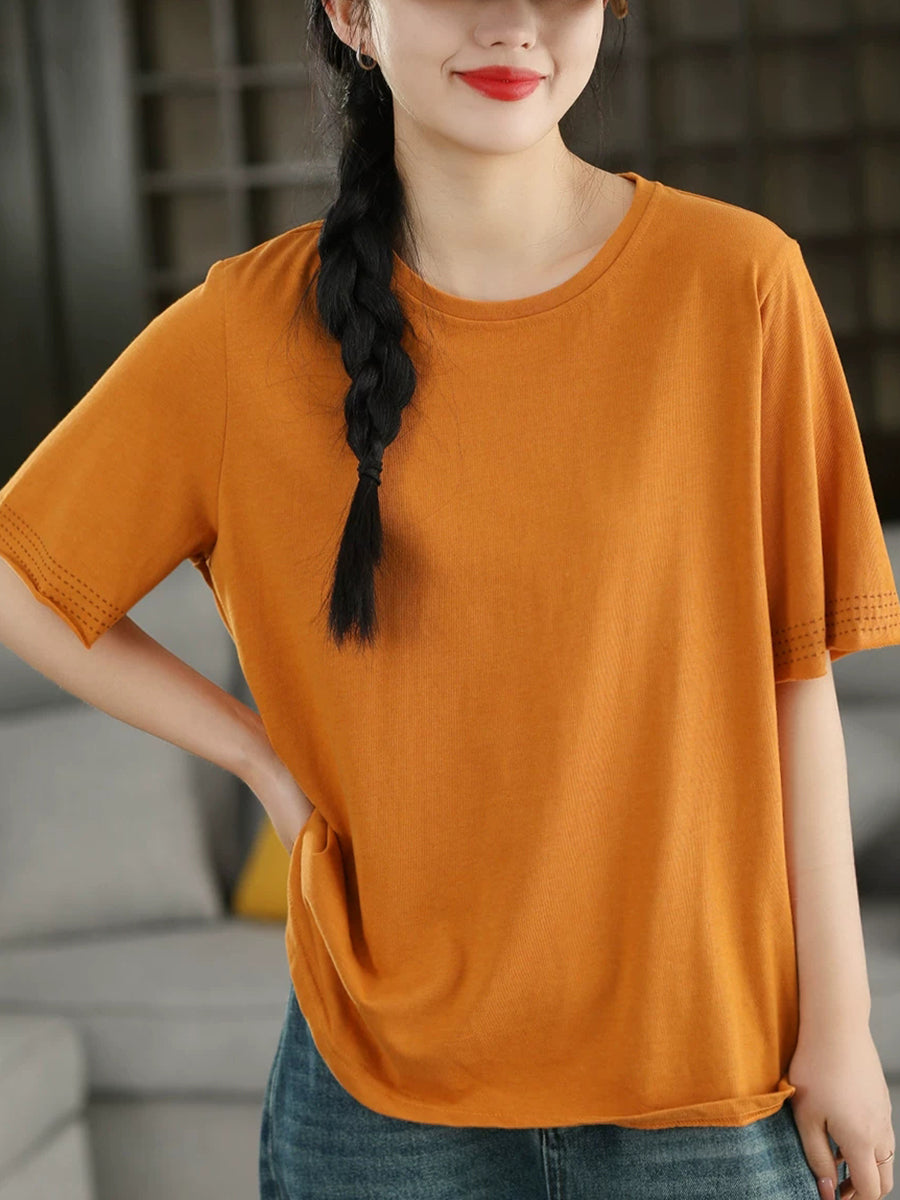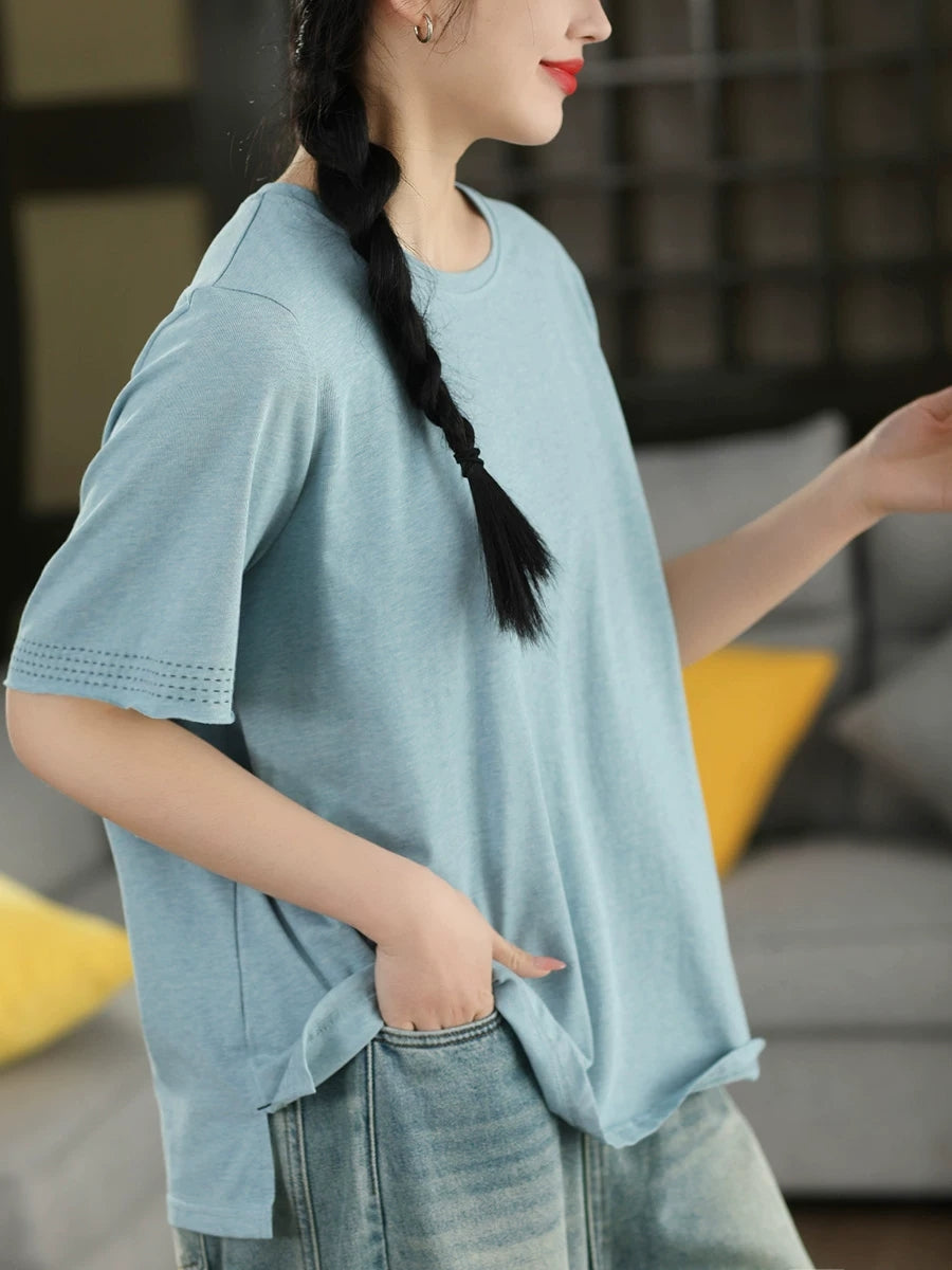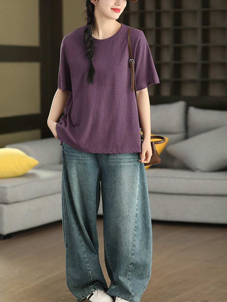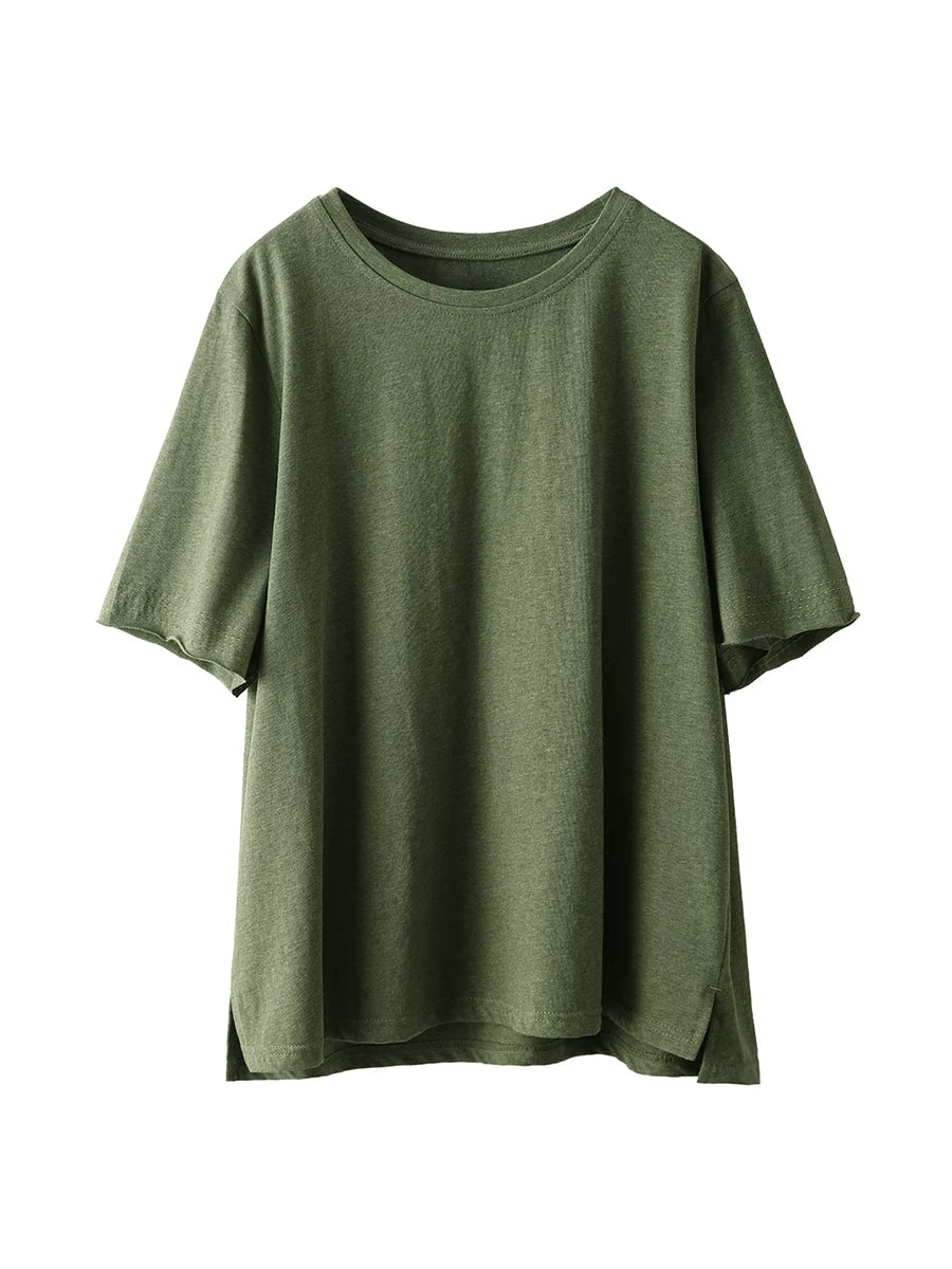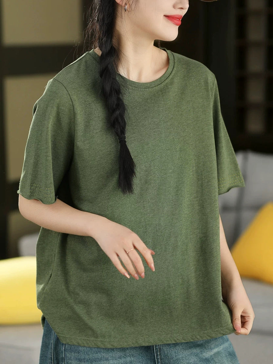 Camiseta de mujer informal de verano, color liso, cuello redondo, 100% algodón.