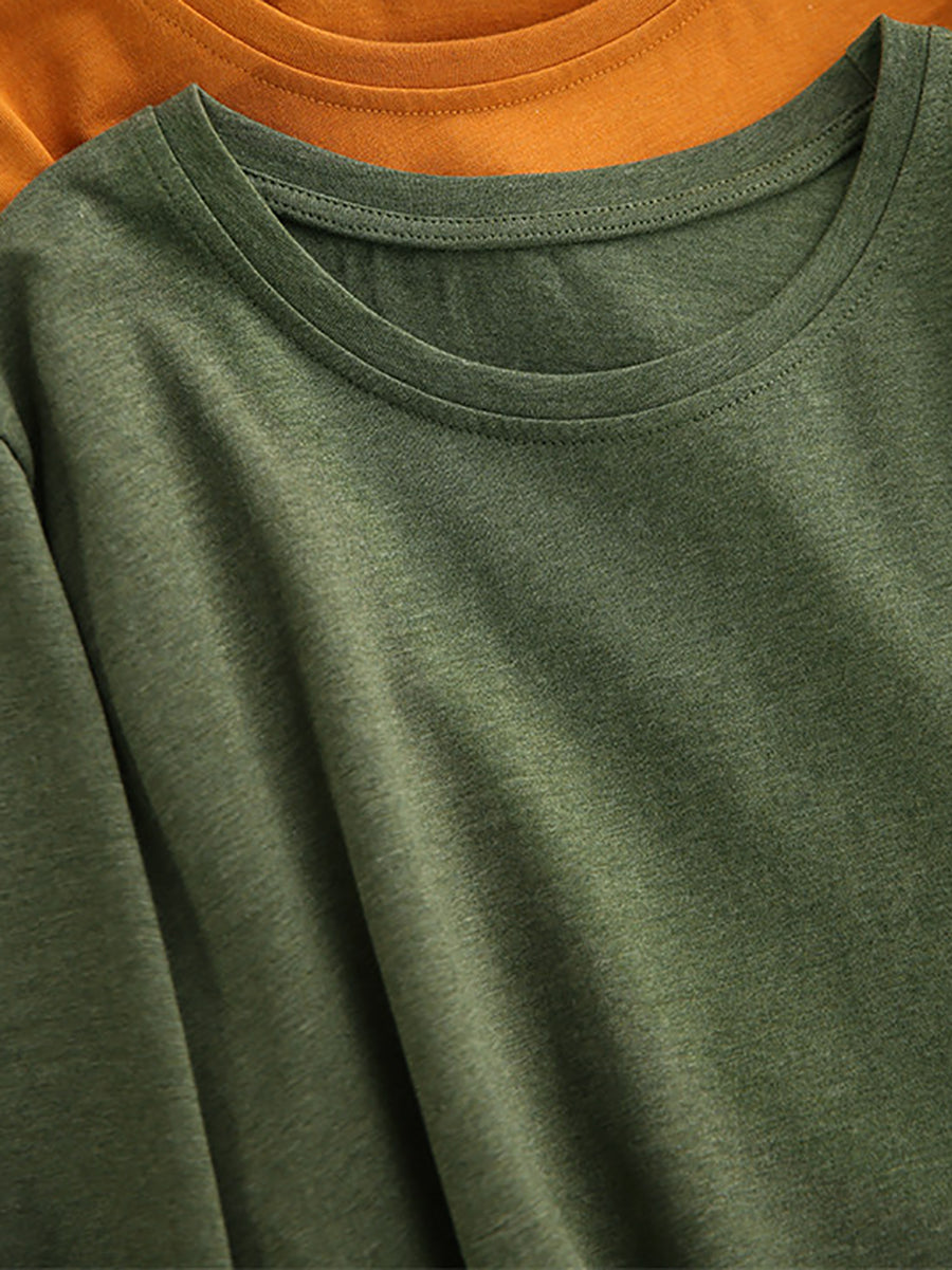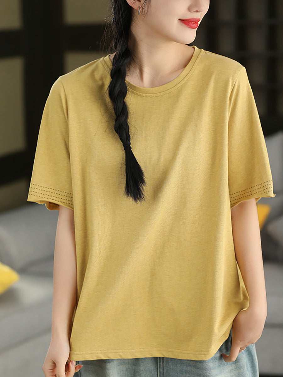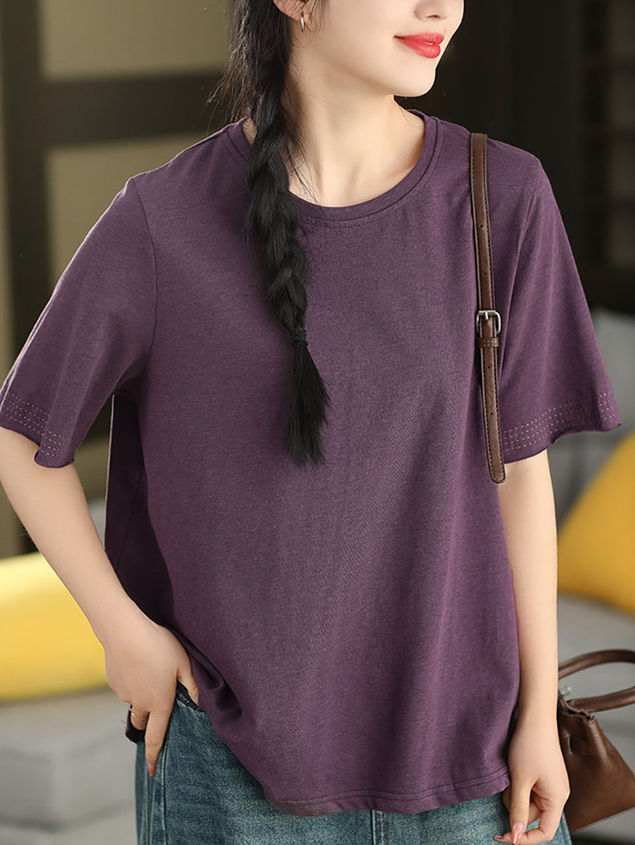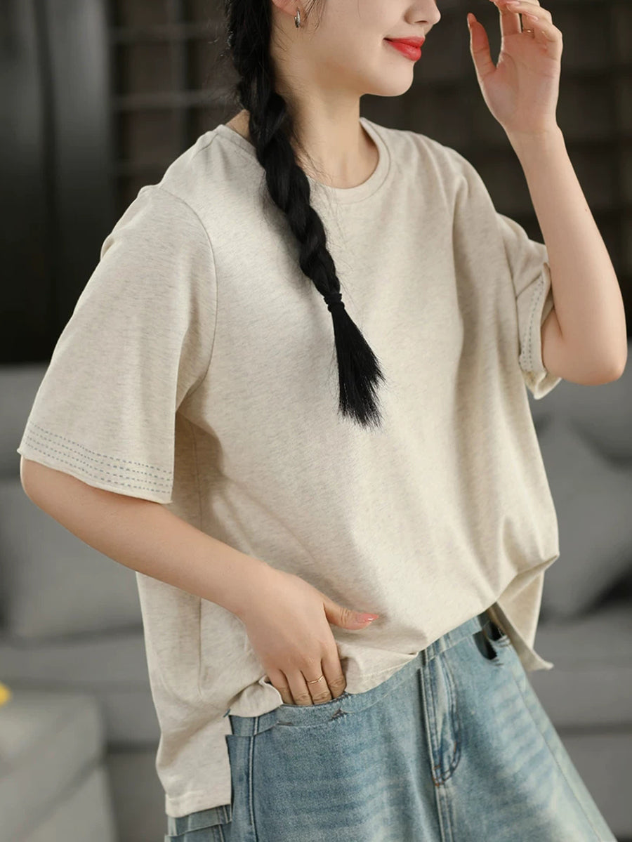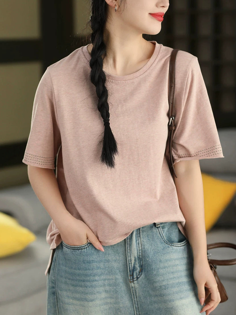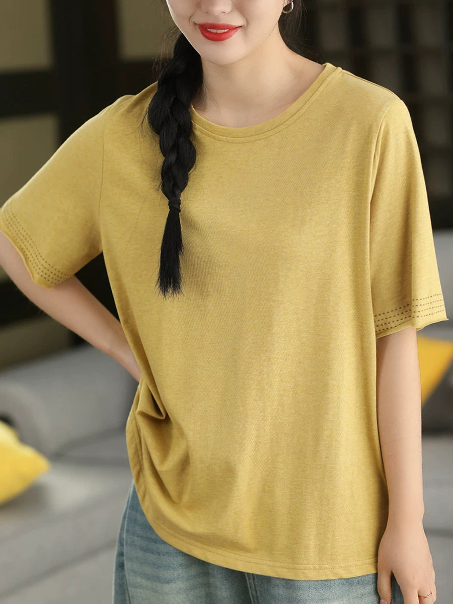Camiseta de mujer informal de verano, color liso, cuello redondo, 100% algodón.
