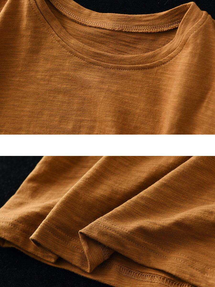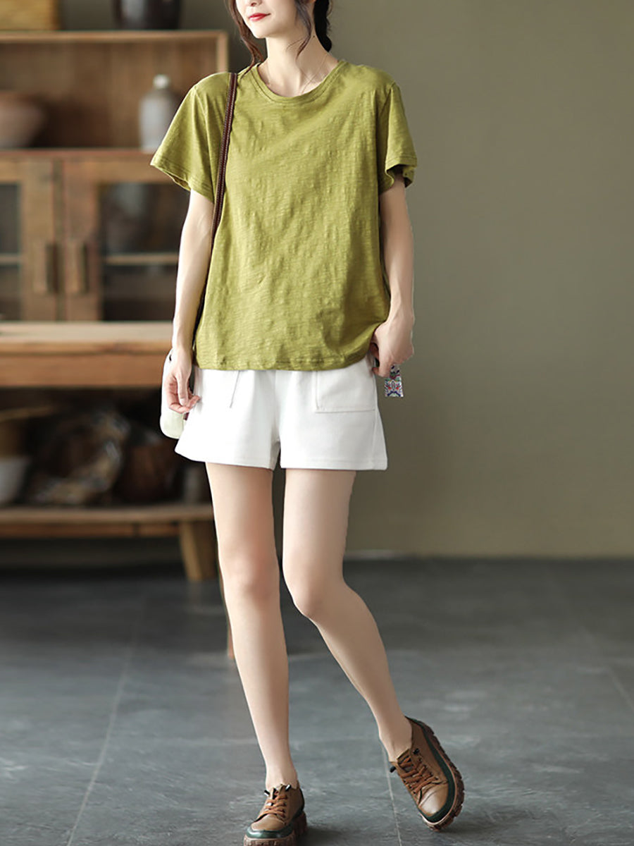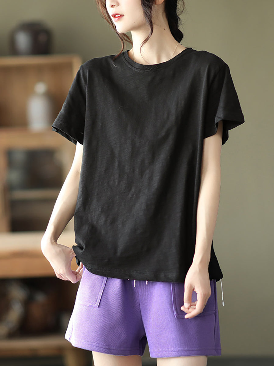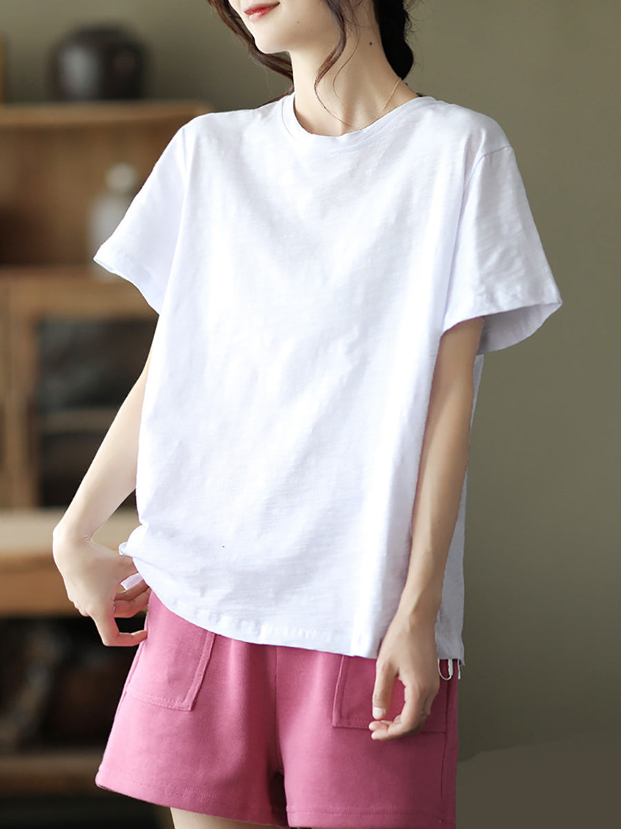 Camiseta de algodón de cuello redondo, color liso, estilo casual de verano para mujer