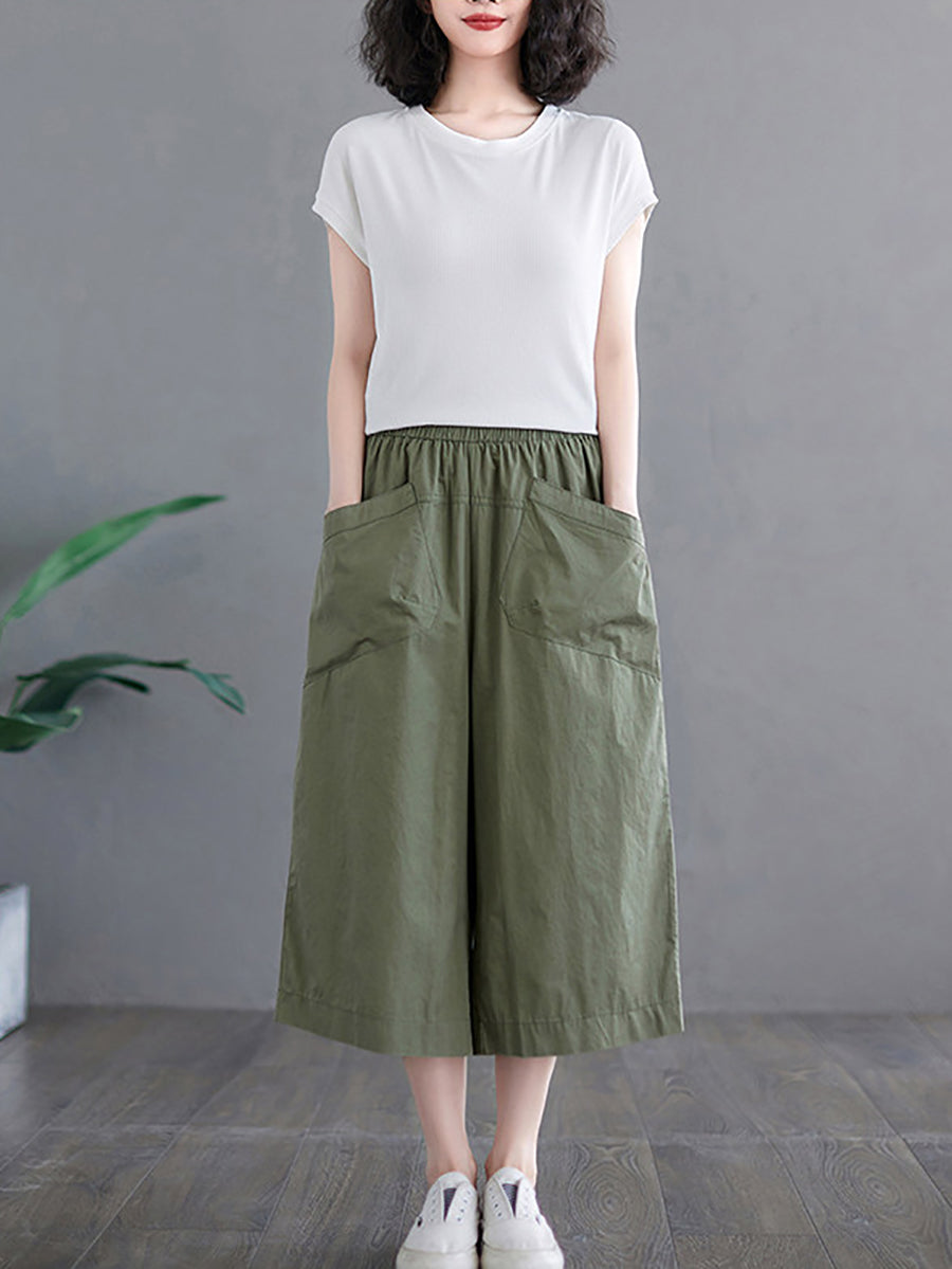 Pantalones anchos de color liso para mujer, estilo casual de verano.