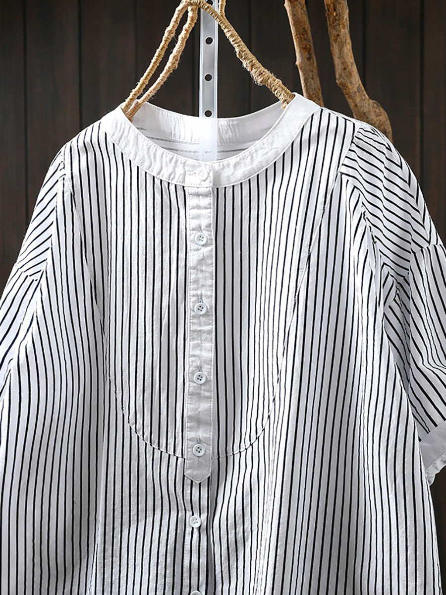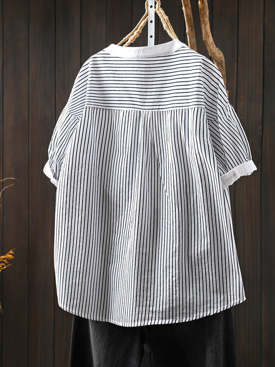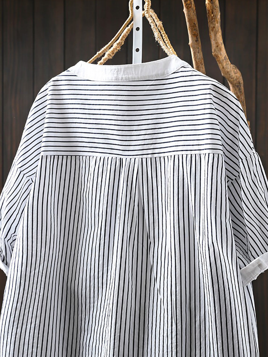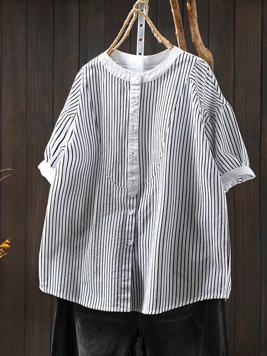 Blusa de mujer informal de verano con rayas, 100% algodón y cuello redondo.