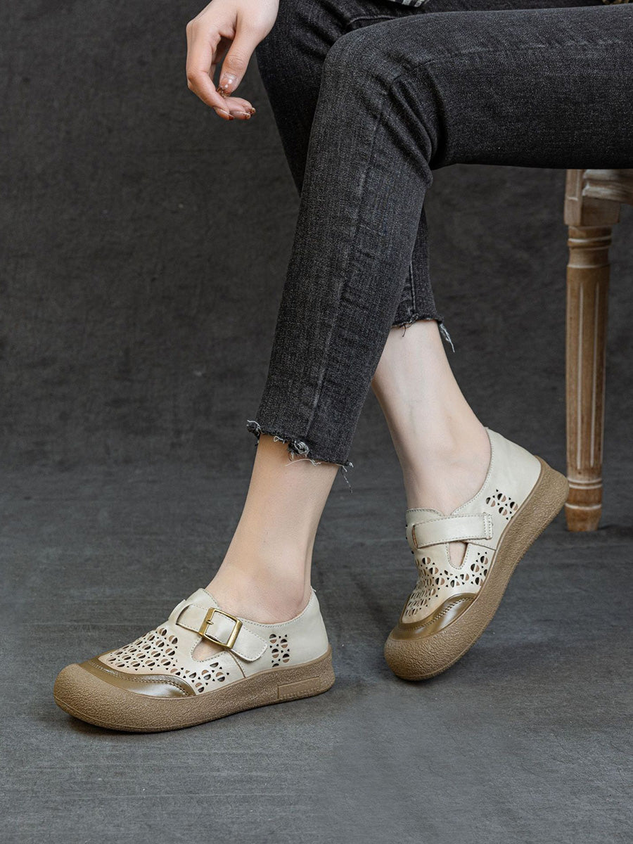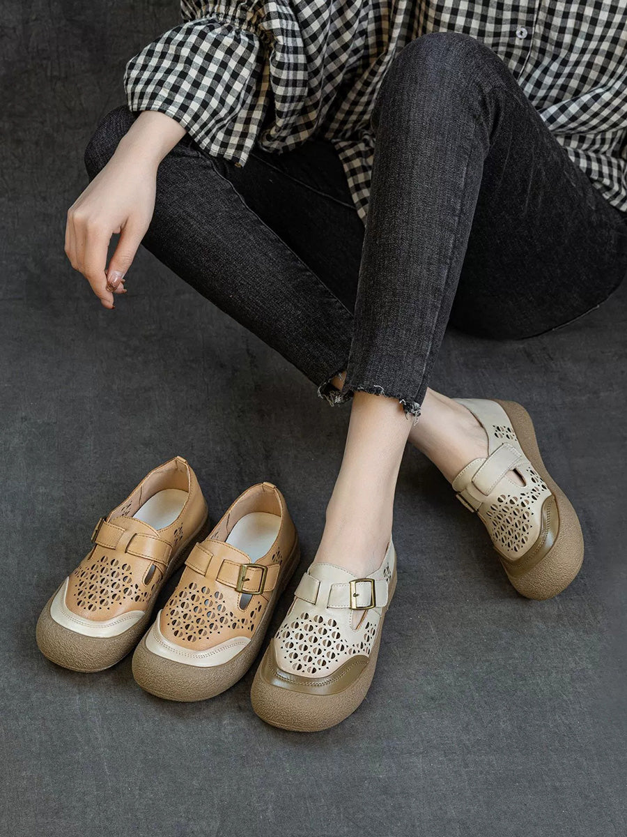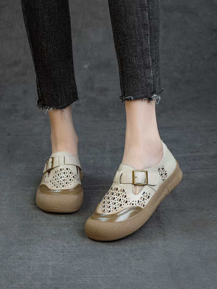 Zapatos planos de piel auténtica para mujer, ideales para el verano.