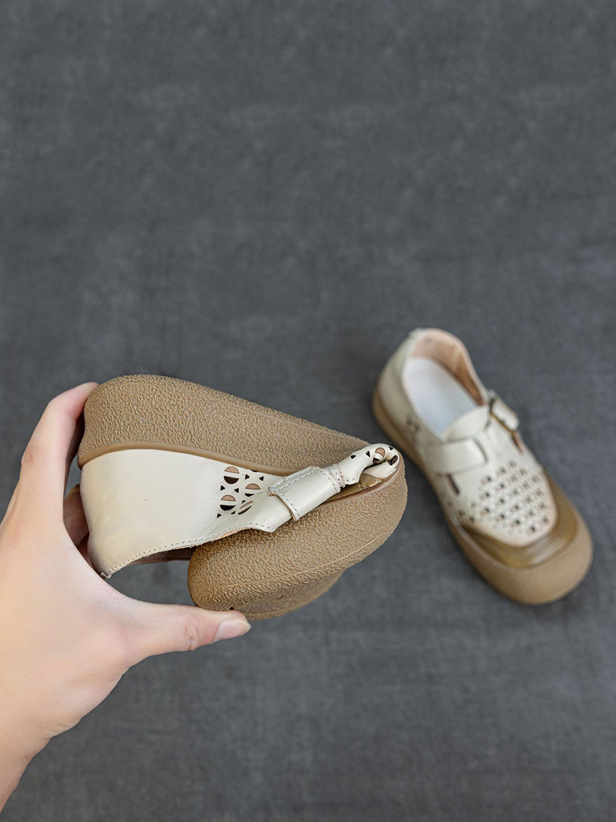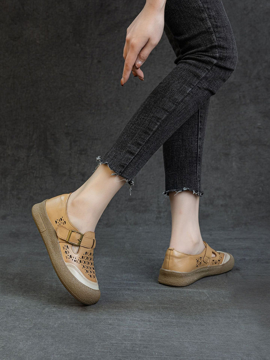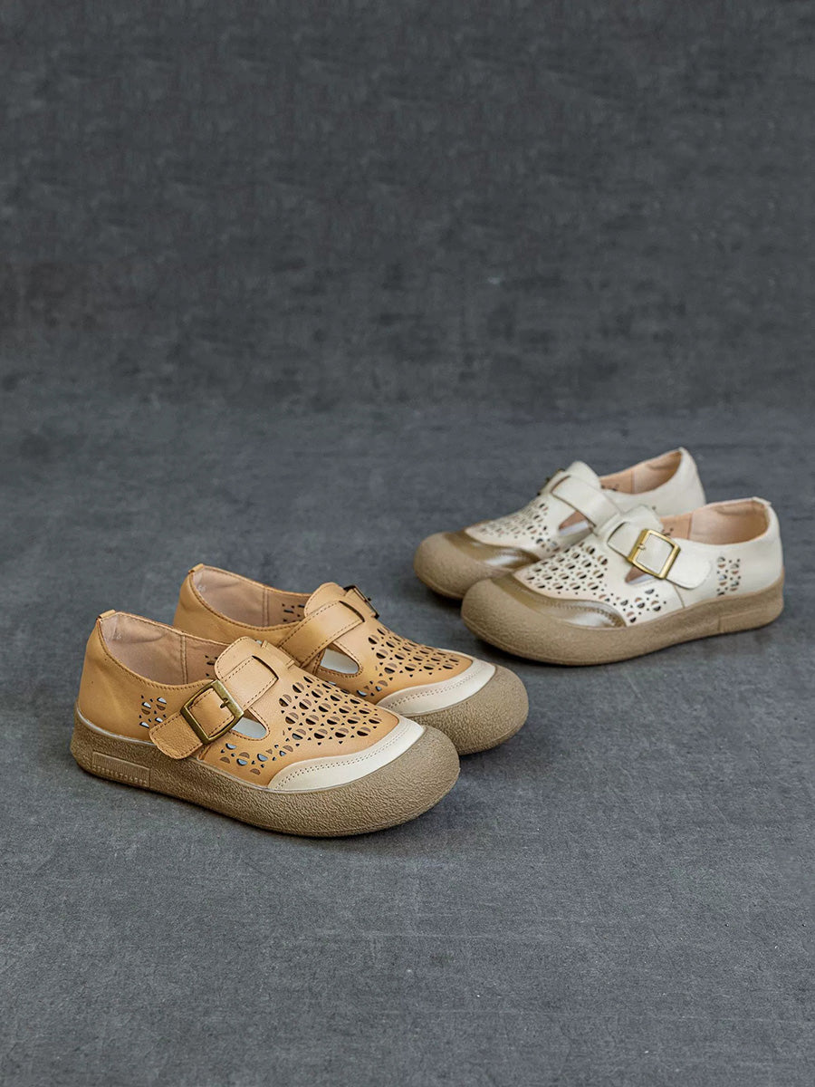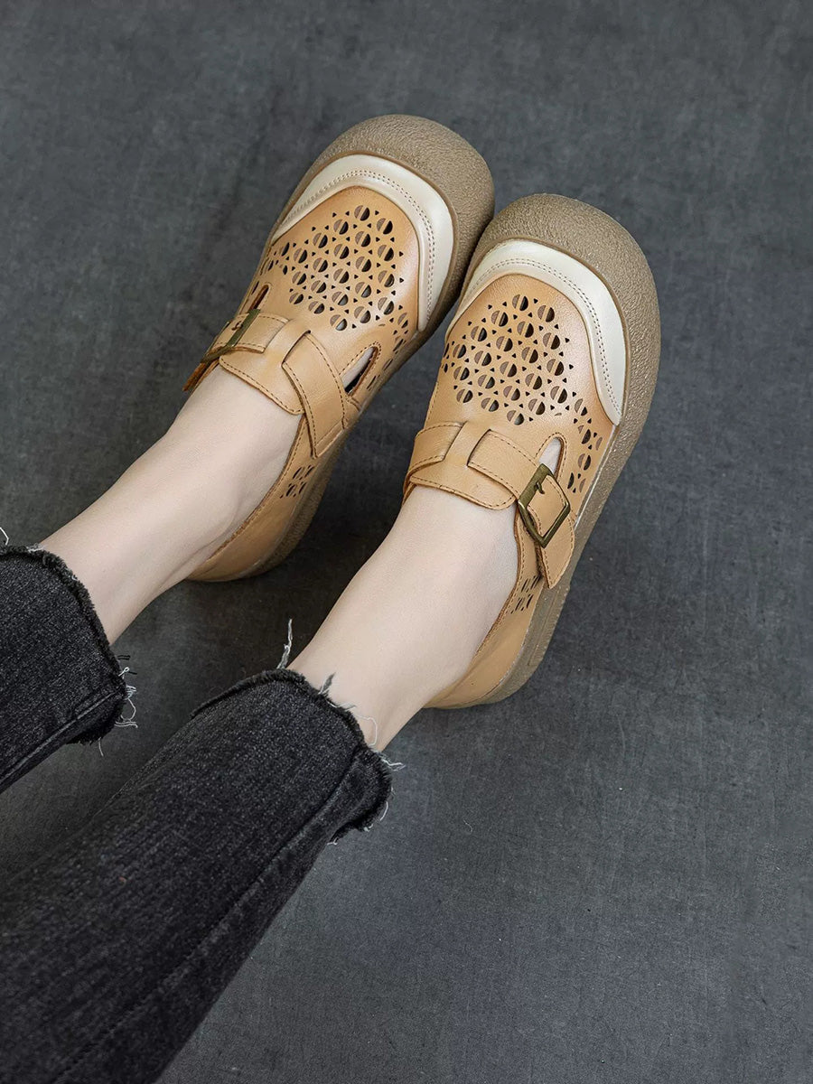Zapatos planos de piel auténtica para mujer, ideales para el verano.
