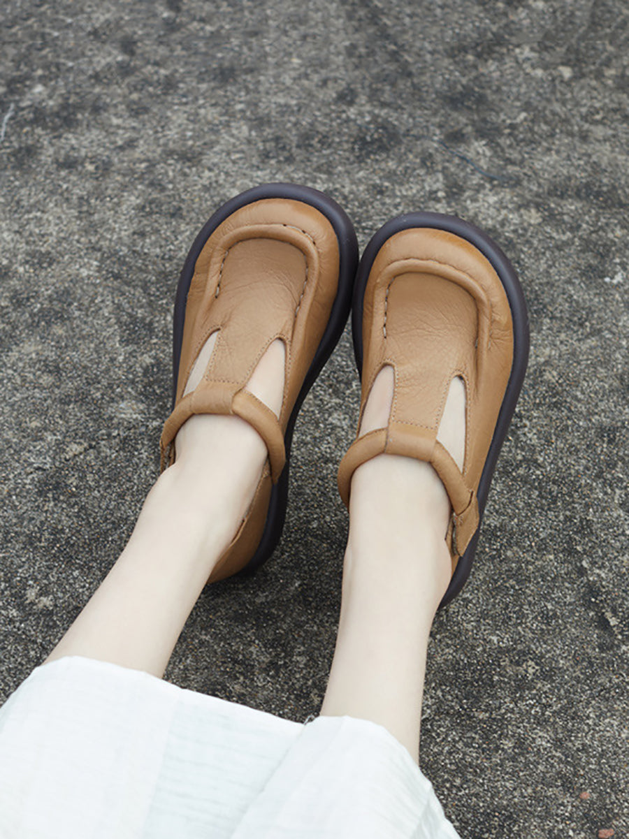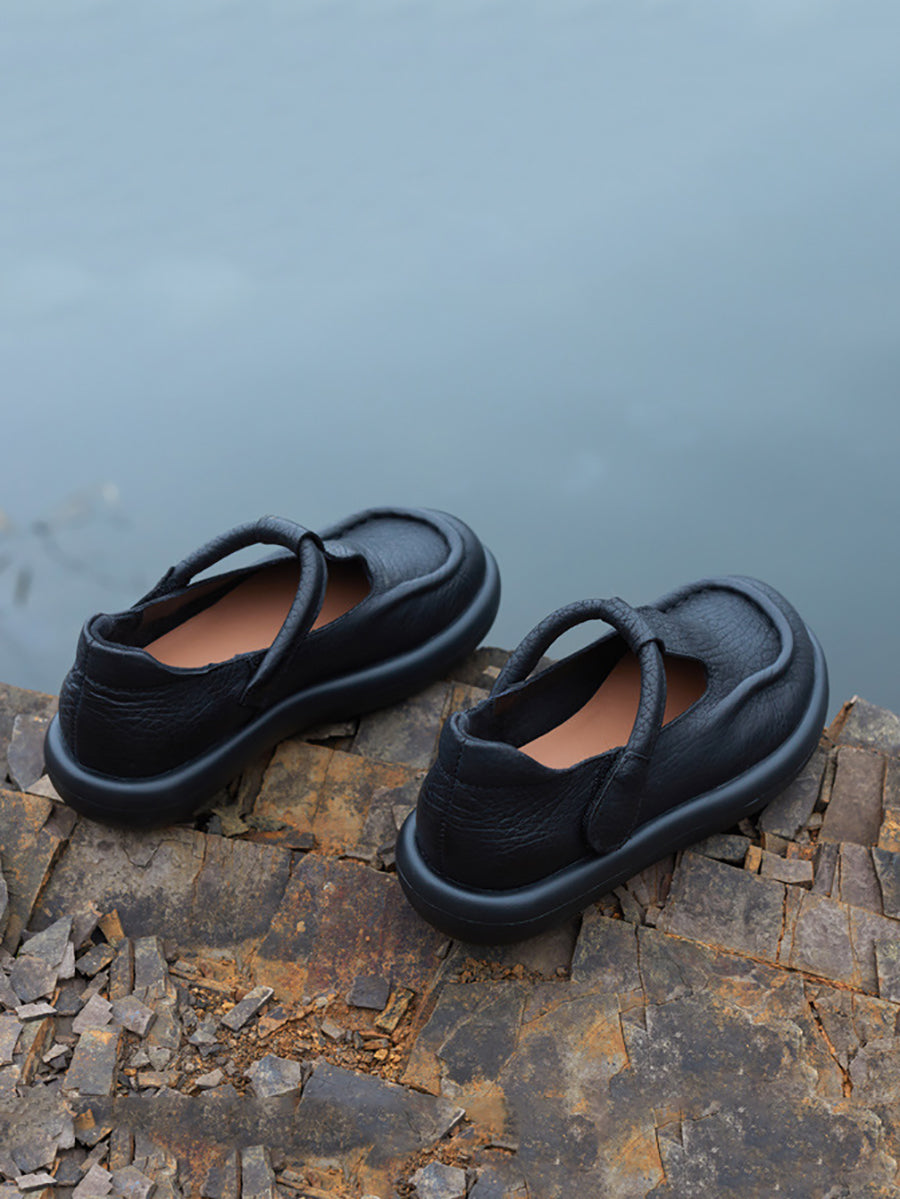 Zapatos planos de piel auténtica para mujer, ideales para el verano.