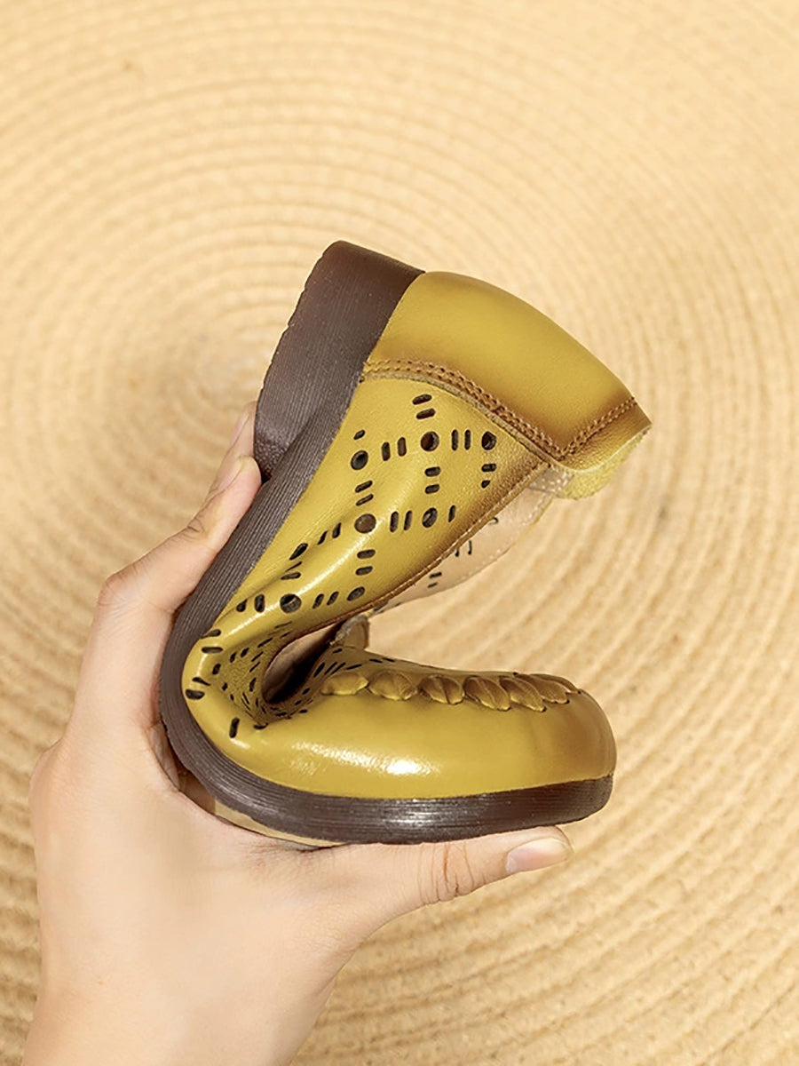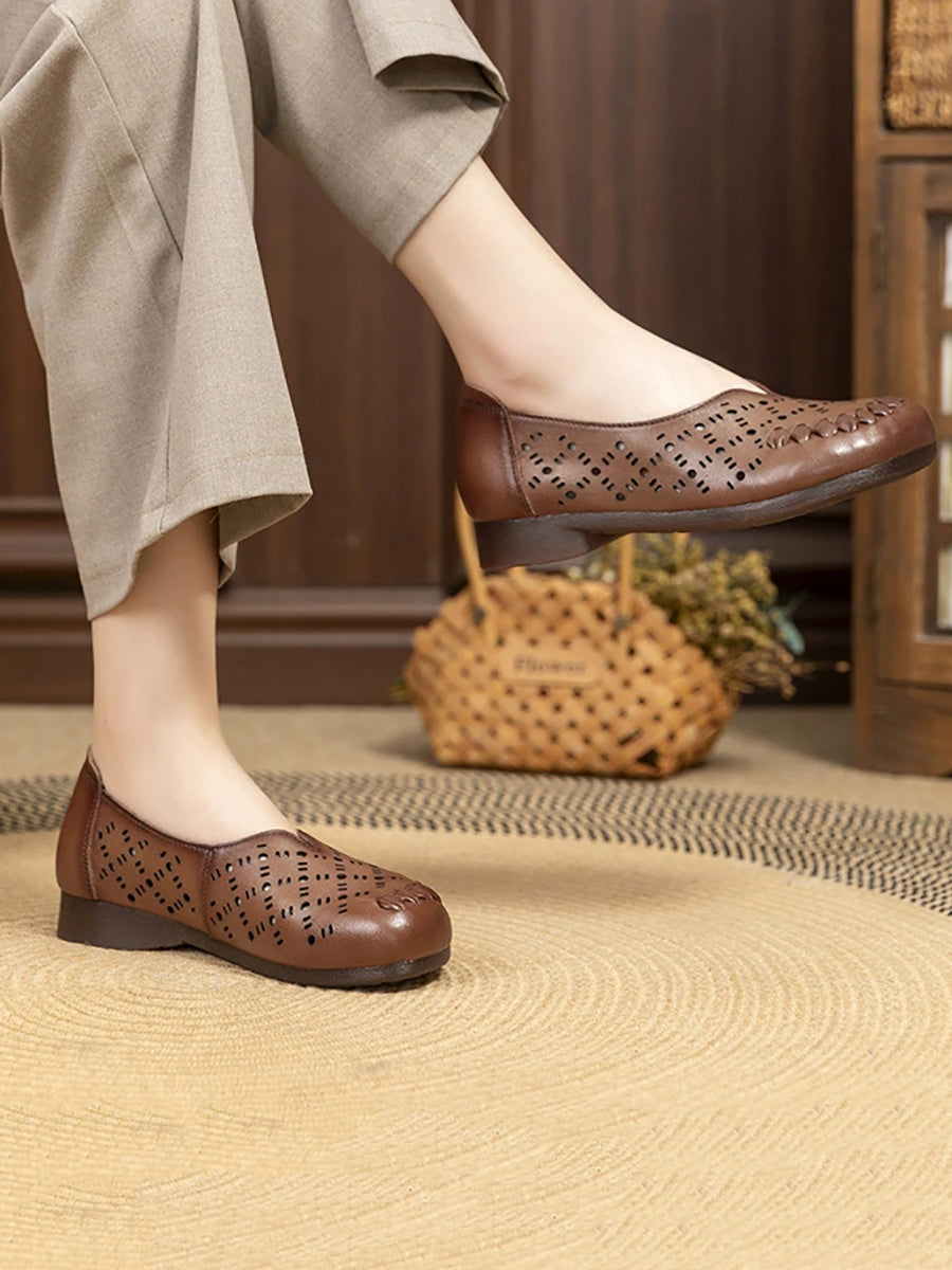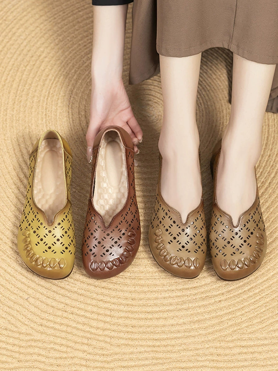 Zapatos de verano para mujer de piel auténtica con diseño calado