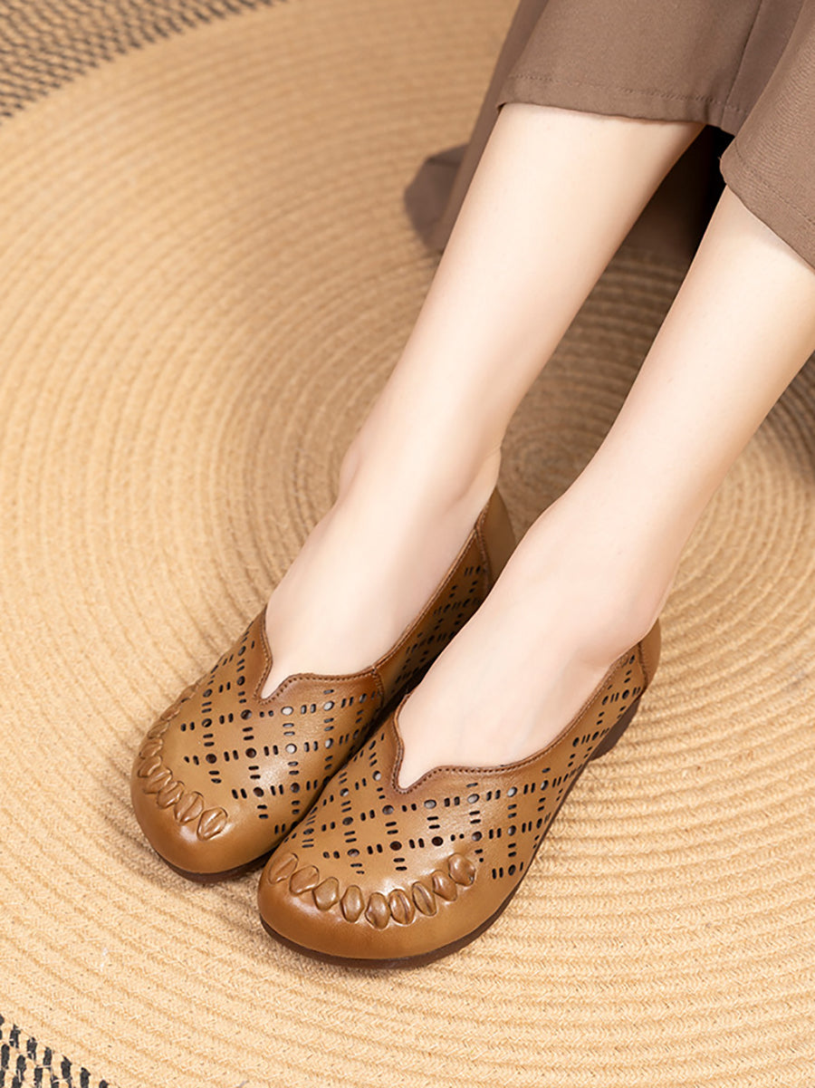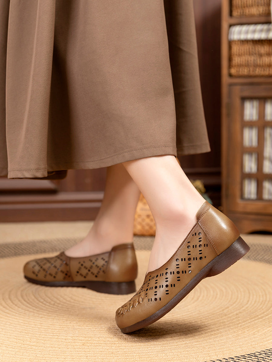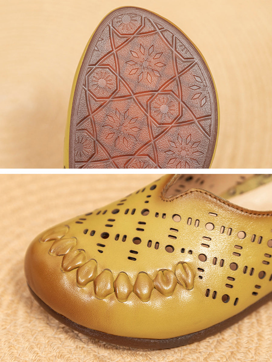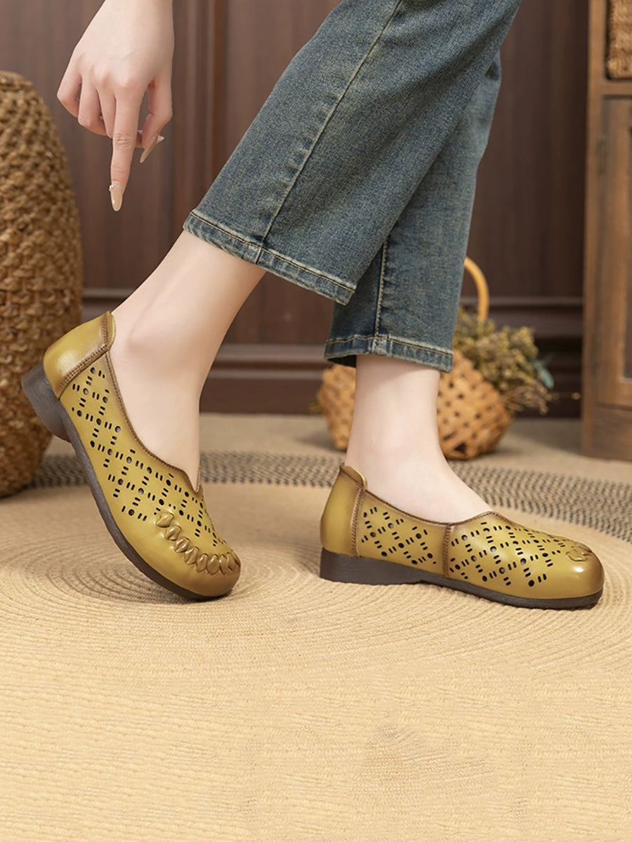 Zapatos de verano para mujer de piel auténtica con diseño calado