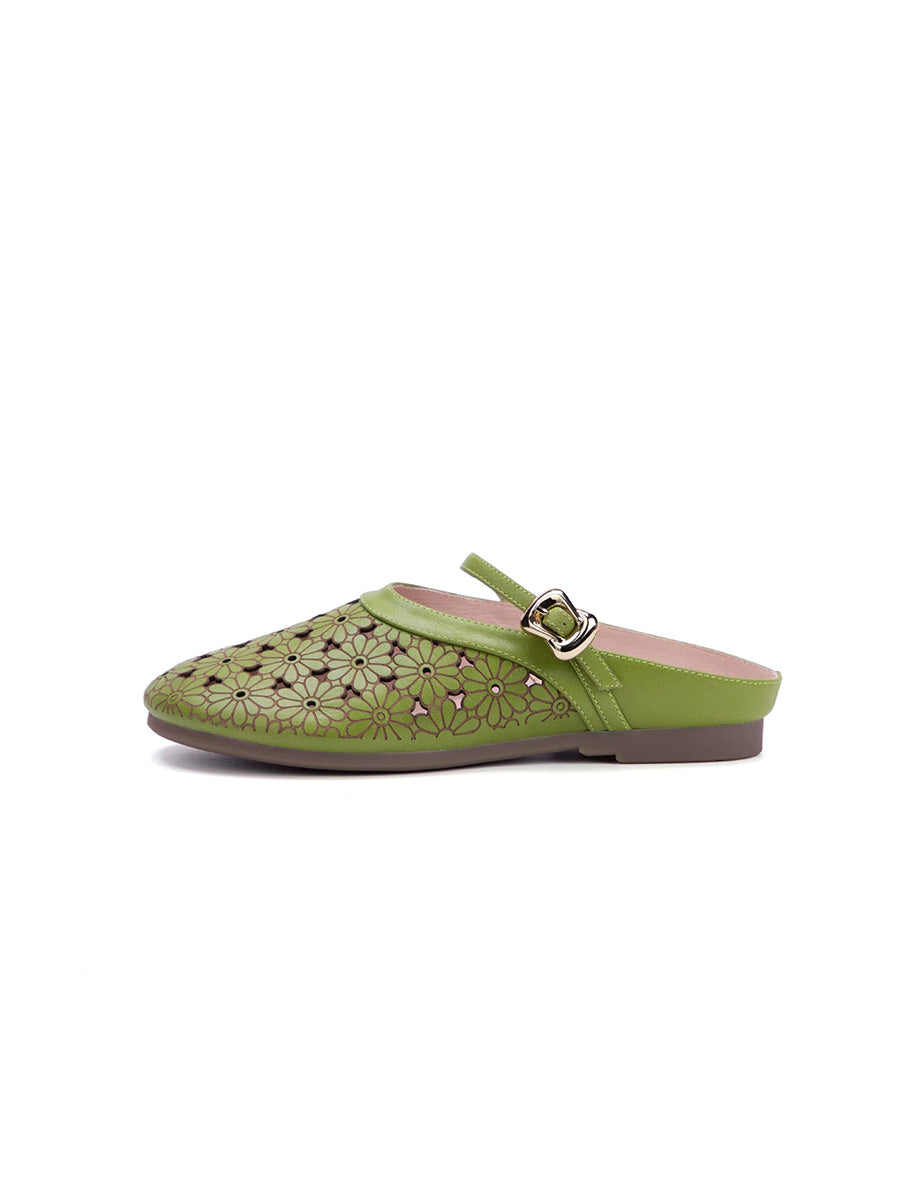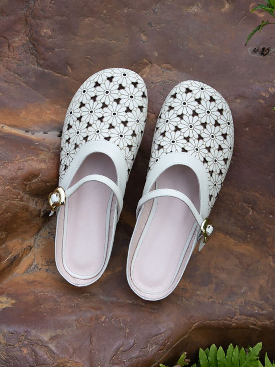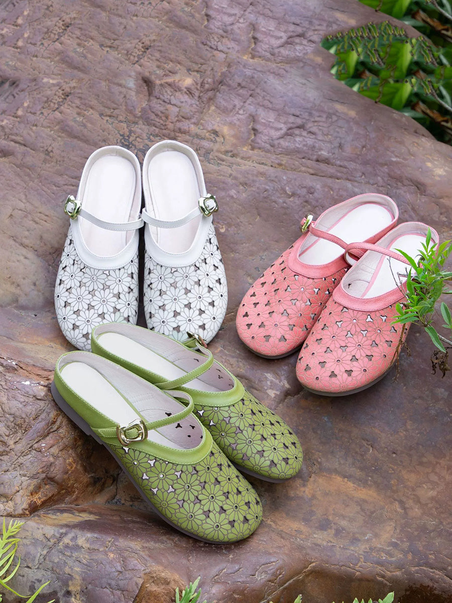 Pantuflas de verano para mujer de piel auténtica con diseño calado.