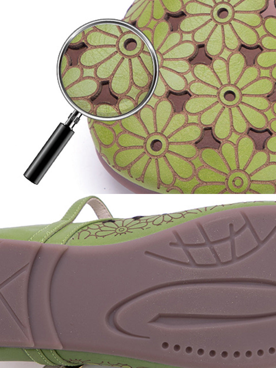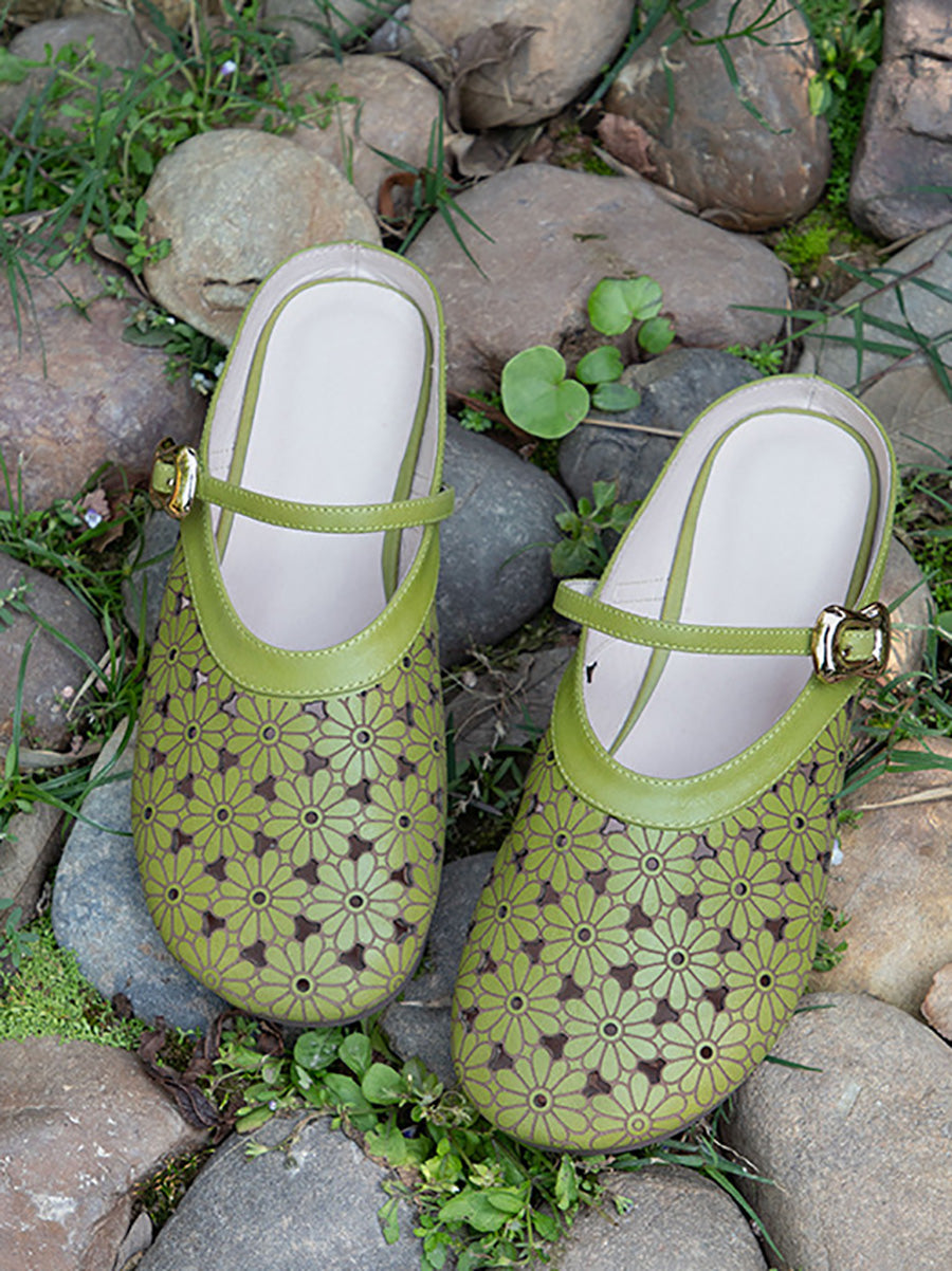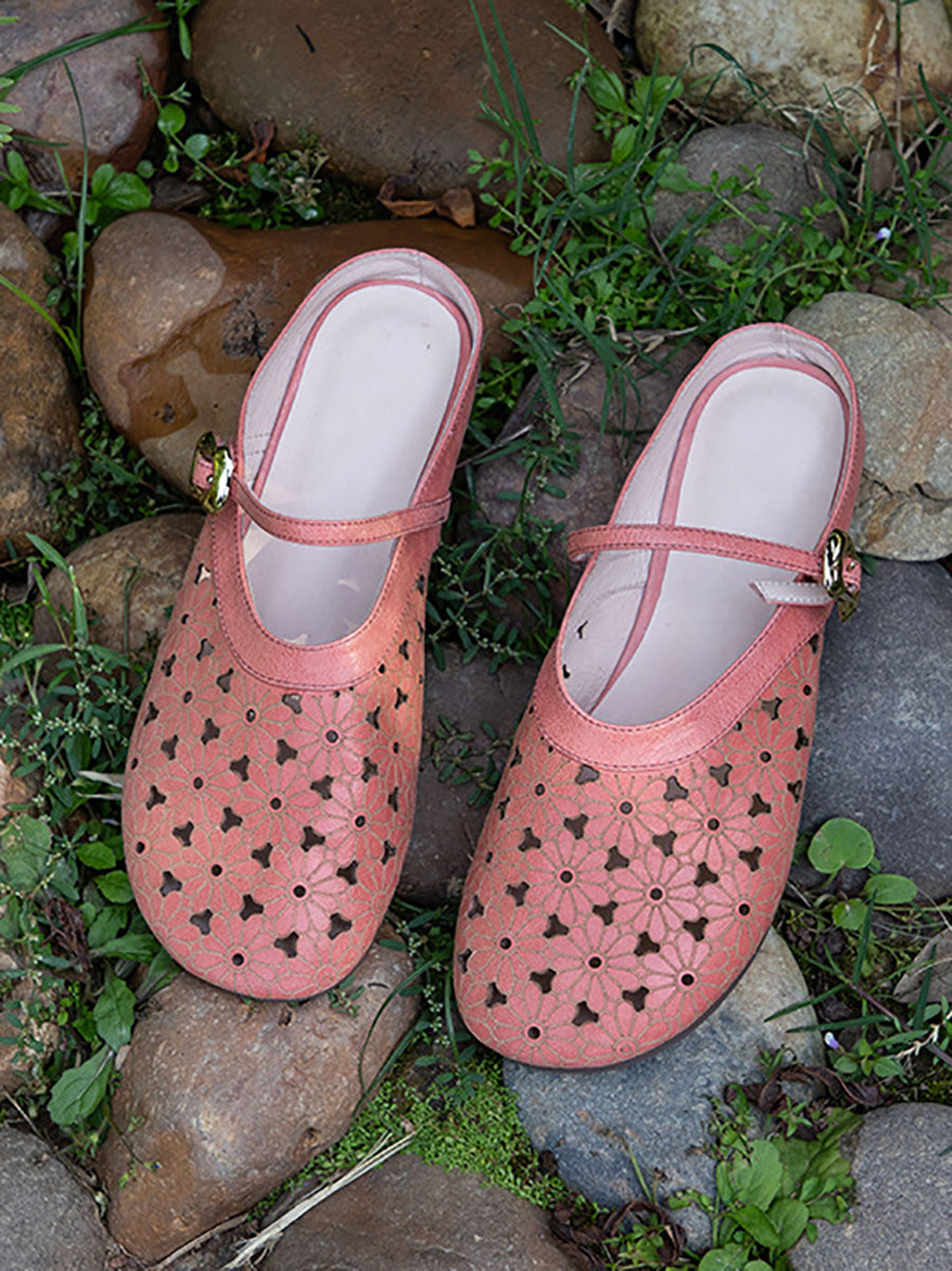 Pantuflas de verano para mujer de piel auténtica con diseño calado.